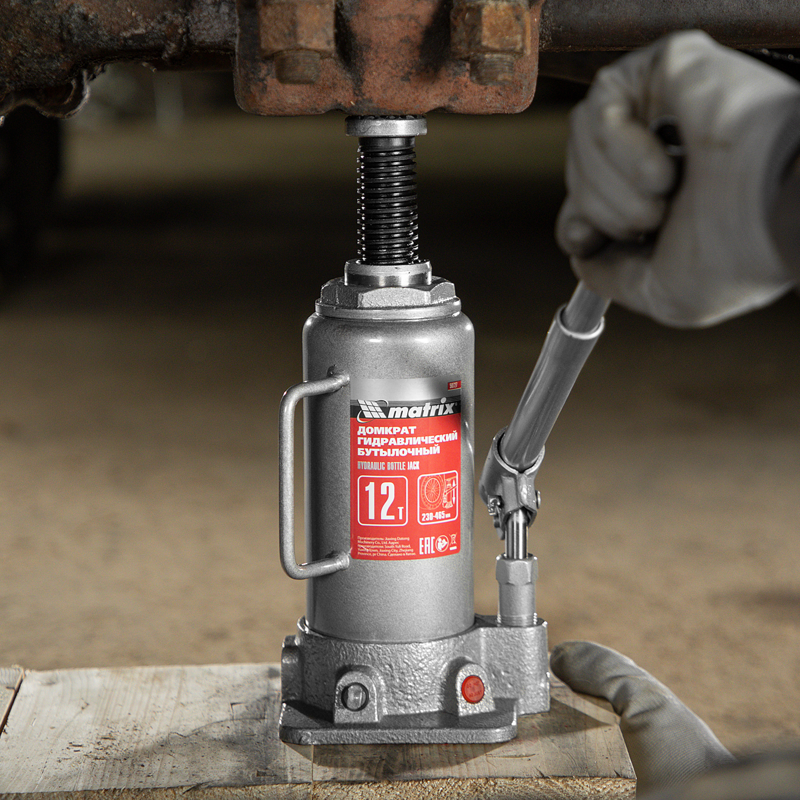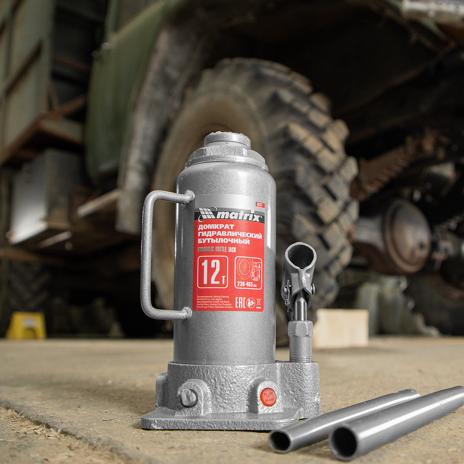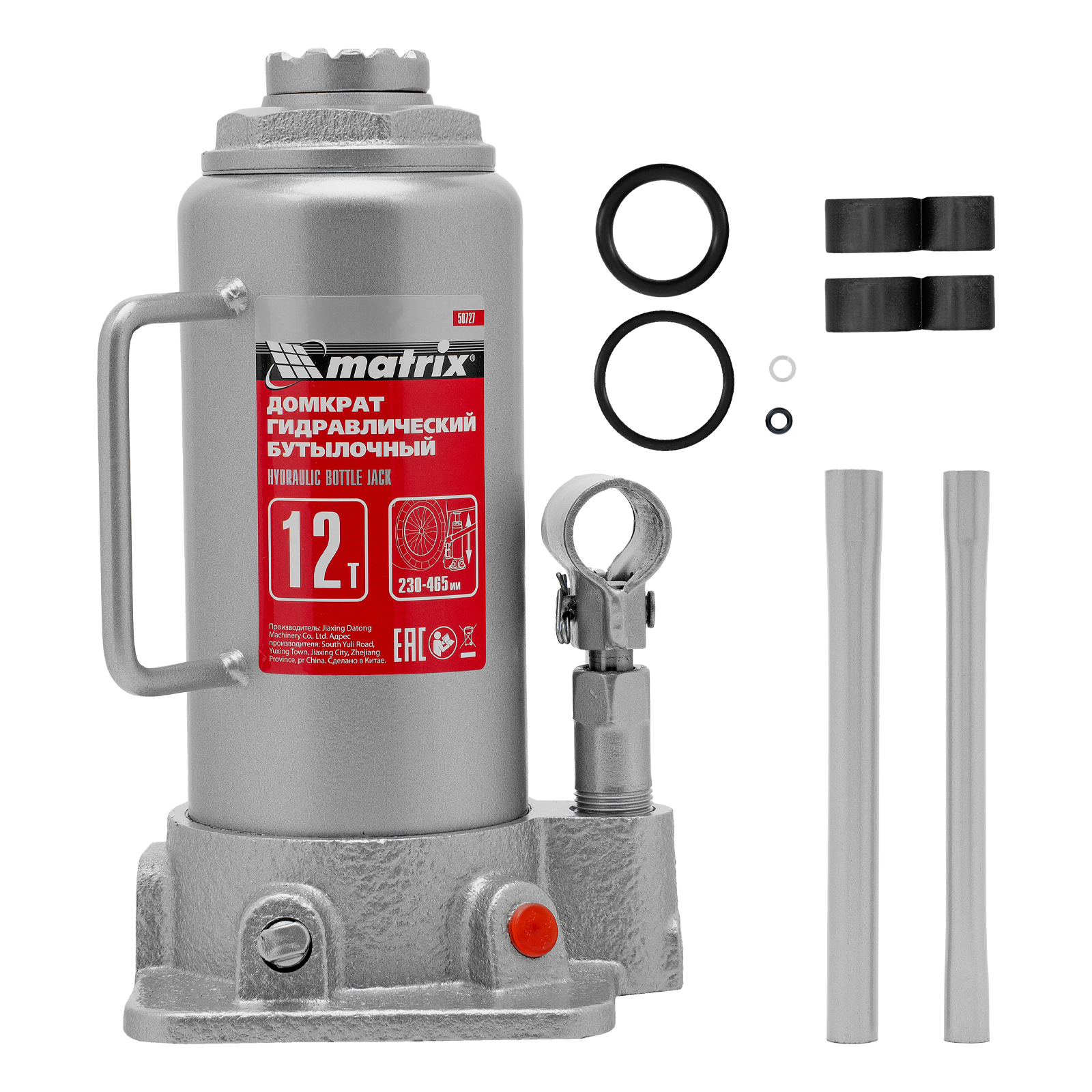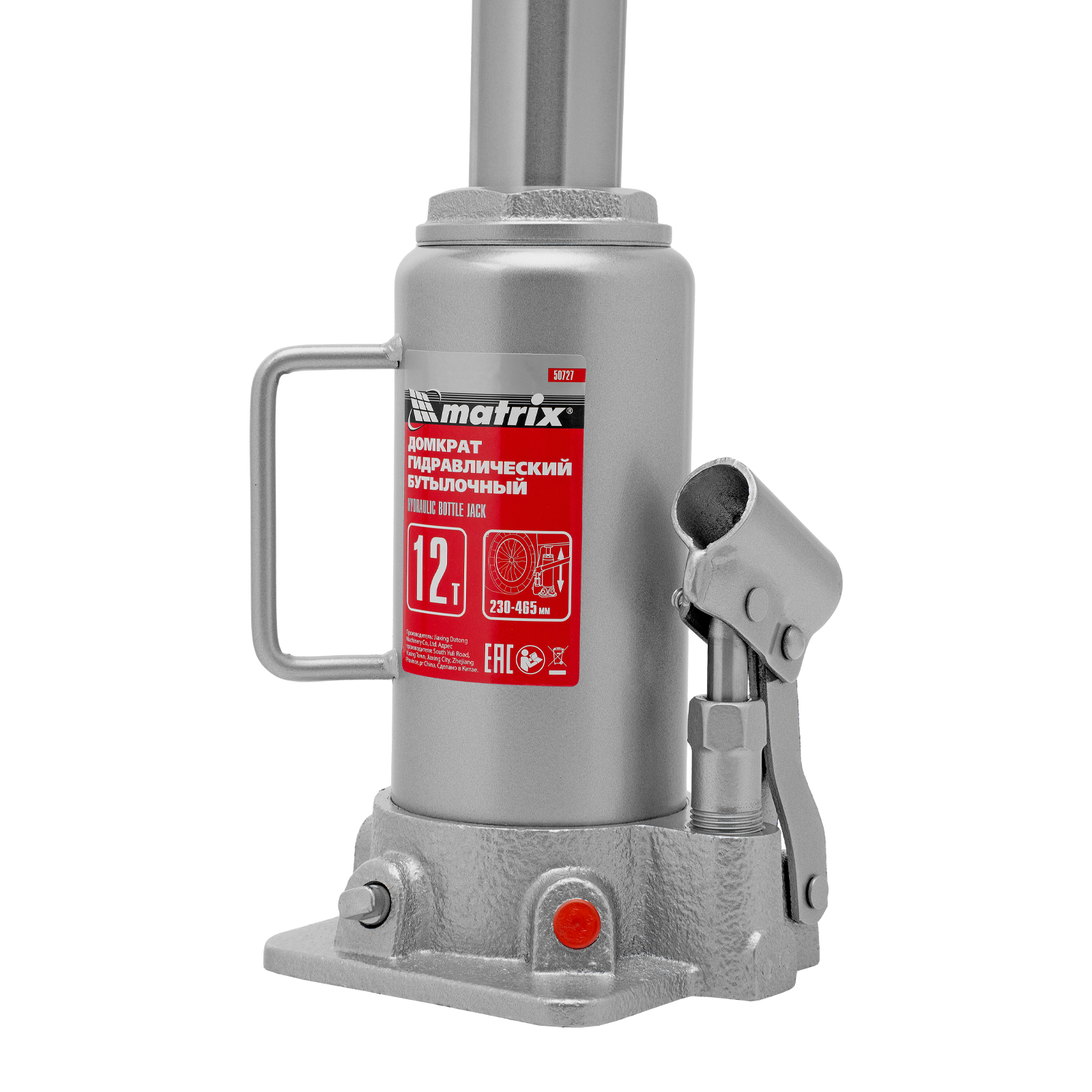 Домкрат гидравлический бутылочный, 12 т, высота подъема 230-465 мм Matrix