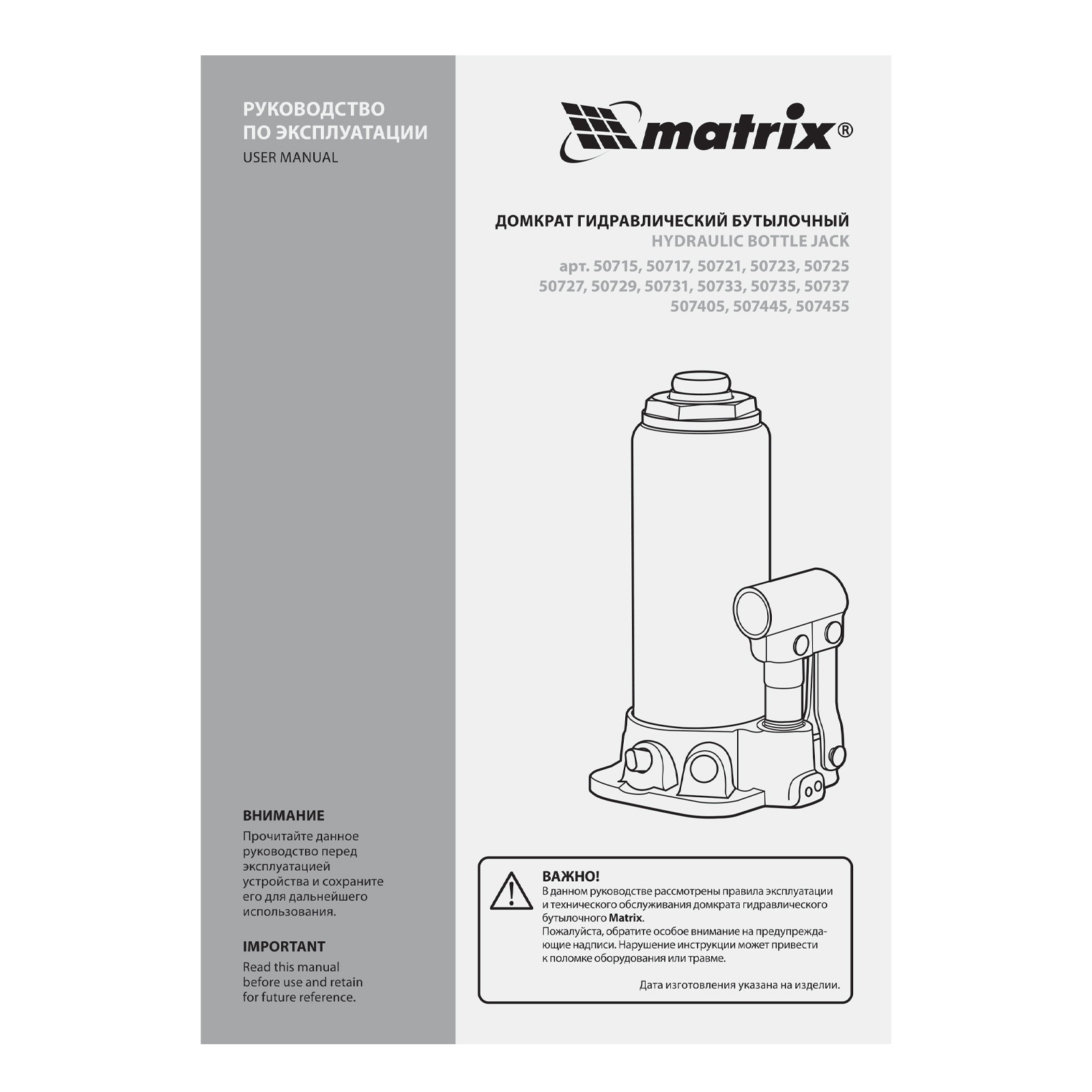 Домкрат гидравлический бутылочный Matrix 50727 используется для поднятия грузов массой до 12 т на высоту 230-465 мм. Подходит для автомобилей с высоким клиренсом. Домкрат будет полезен автолюбителям в гараже и дороге, а также сотрудникам СТО.