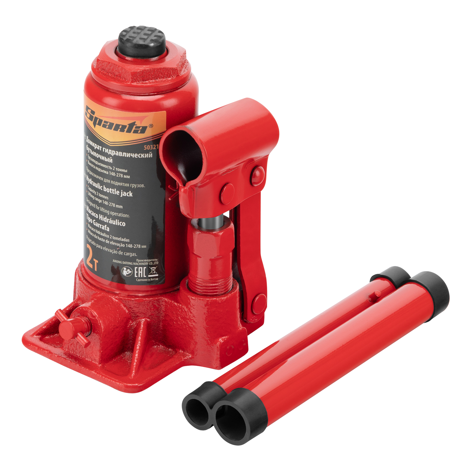 Домкрат гидравлический бутылочный, 2 т, h подъема 148-278 мм Sparta