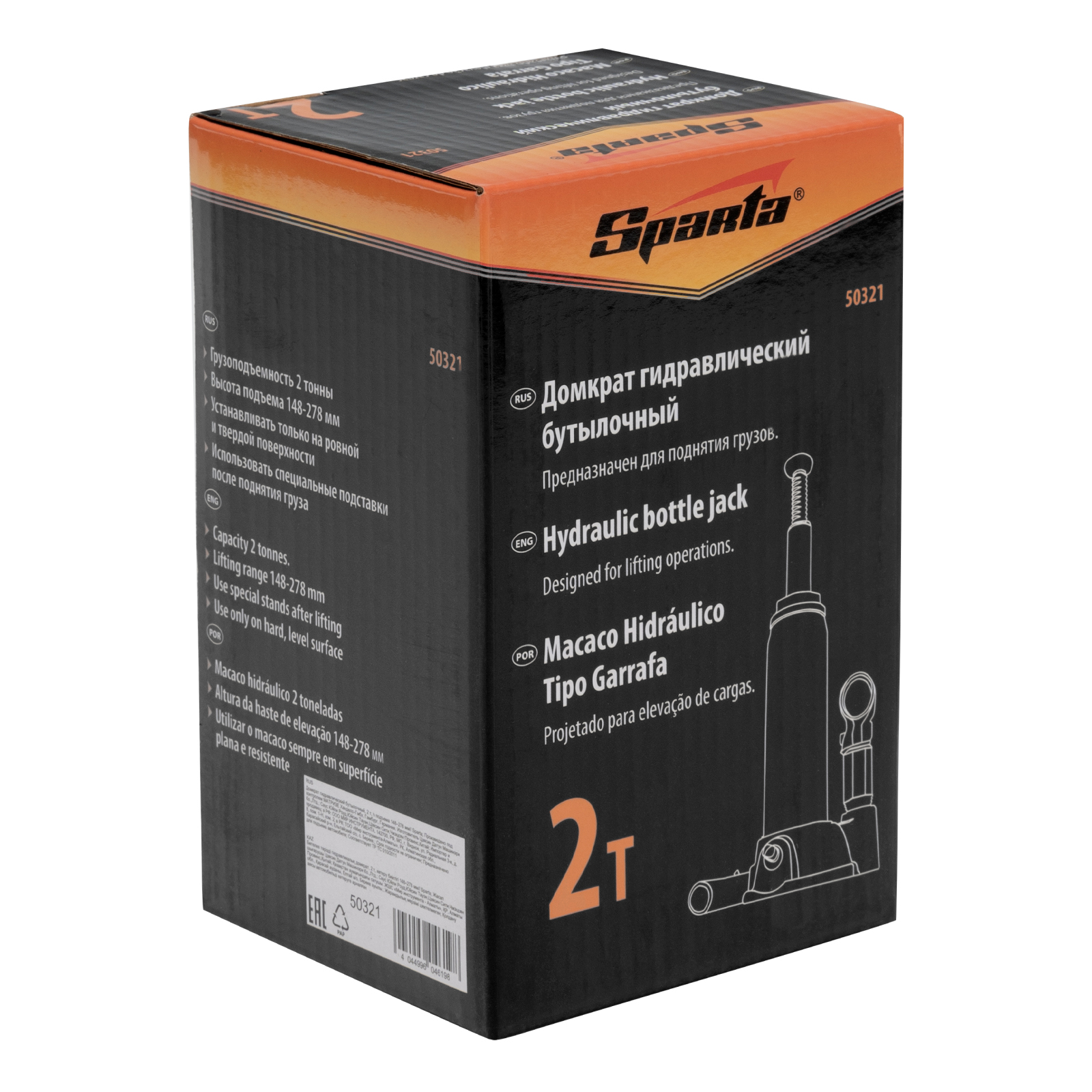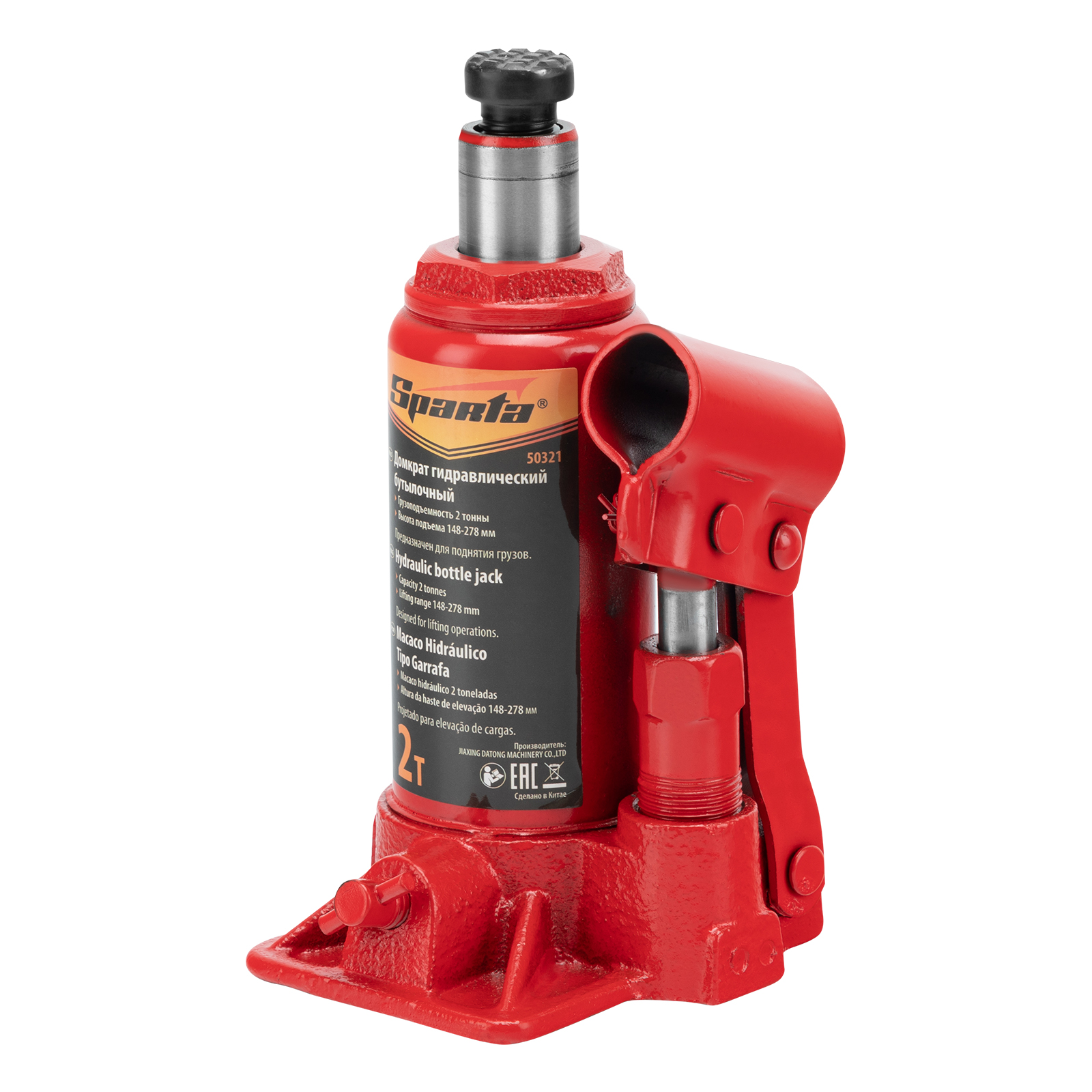 Гидравлический бутылочный домкрат Sparta 50321 рассчитан на подъем грузов весом до 2 т на высоту от 148 до 278 мм. Он пригодится как автолюбителям в гараже, так и профессиональным мастерам в автосервисах. Домкрат обеспечивает плавный подъем груза без особых усилий со стороны пользователя.