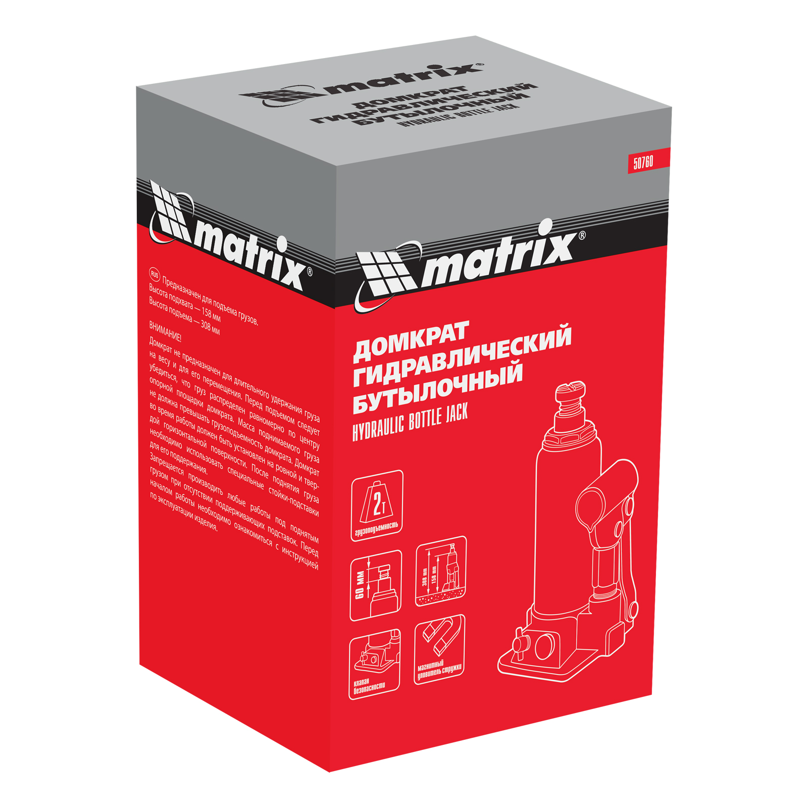 Домкрат гидравлический бутылочный, 2 т, h подъема 158-308 мм Matrix