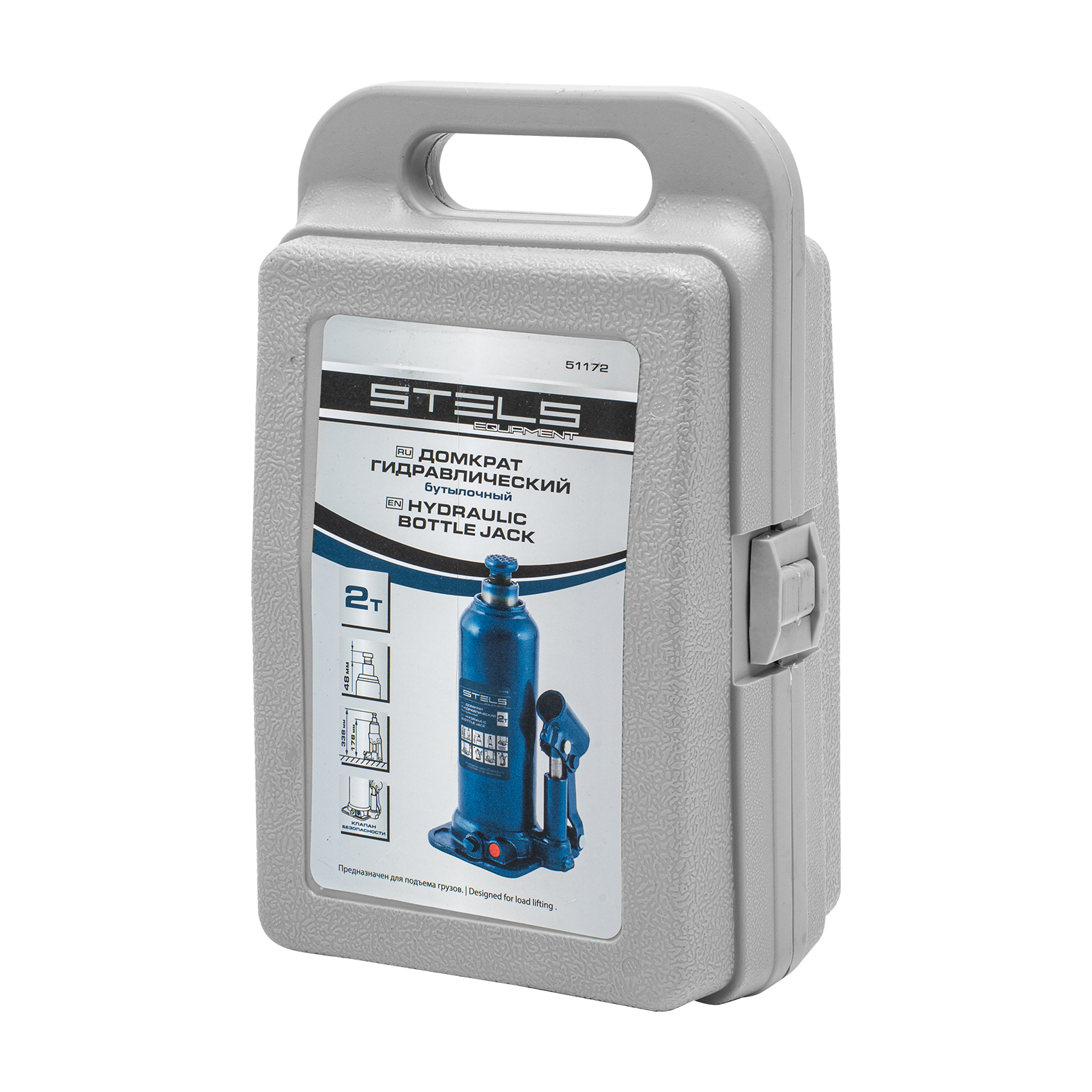 Гидравлический бутылочный домкрат Stels 51172 в пластиковом кейсе предназначен для поднятия грузов весом до 2 т на высоту 178-338 мм. Он не занимает много места и легко помещается в багажник, поэтому его можно брать с собой в дорогу или хранить в гараже. Используется для самостоятельного ремонта авто, также подходит для профессионального применения на станциях технического обслуживания.