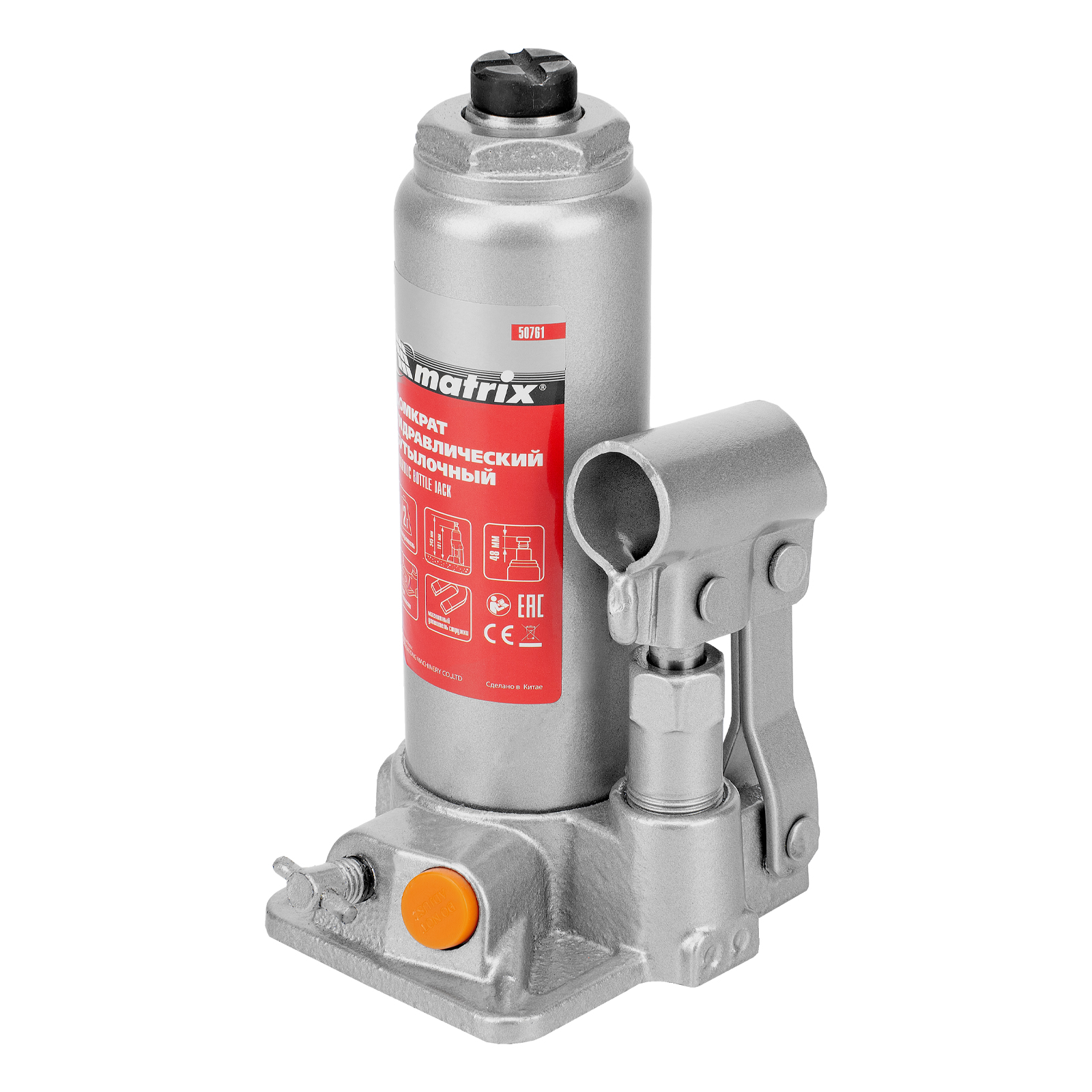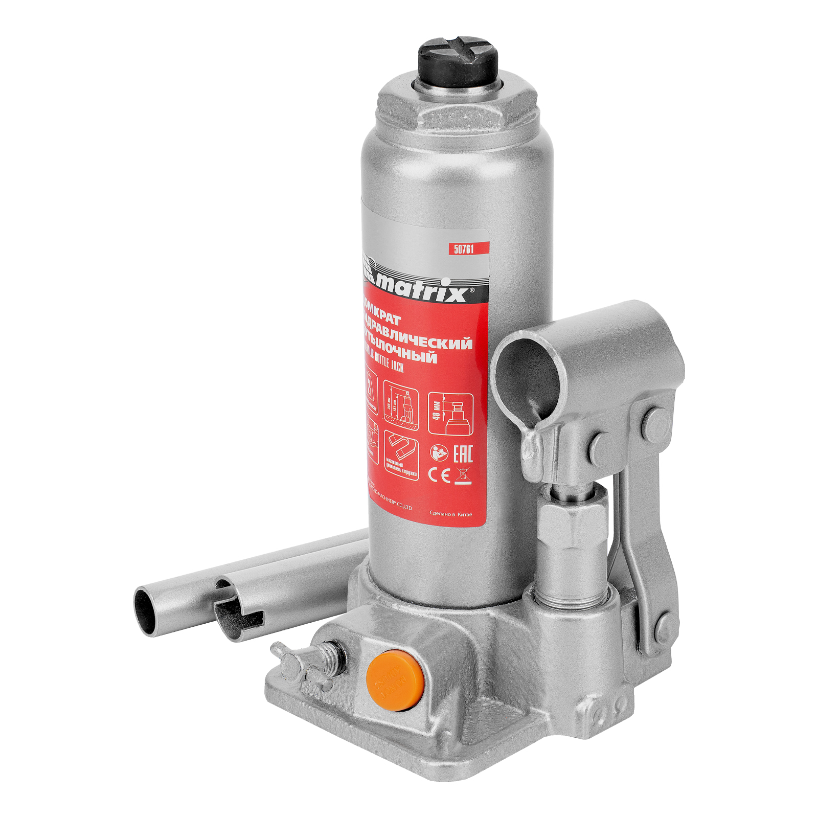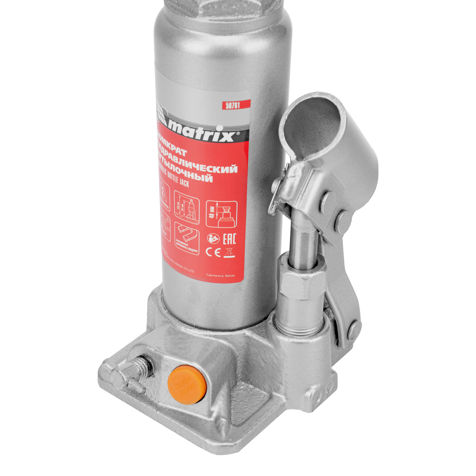 - Защита от перегрузки — домкрат оснащен клапаном безопасности, который не допускает поднятия груза массой более 2000 кг.