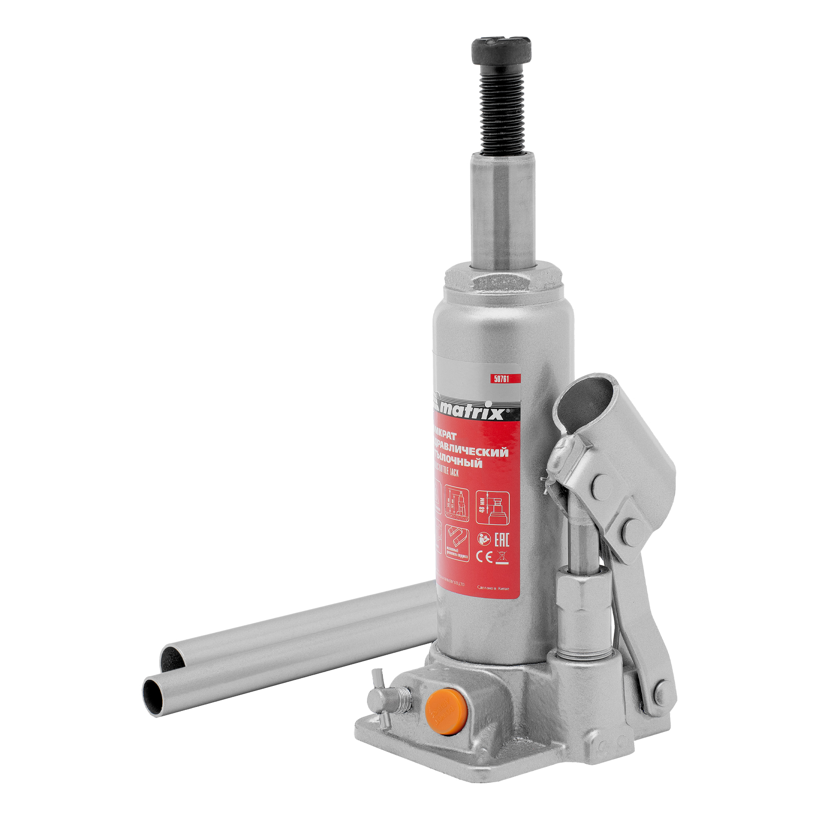 Домкрат гидравлический бутылочный, 2 т, h подъема 181-345 мм Matrix