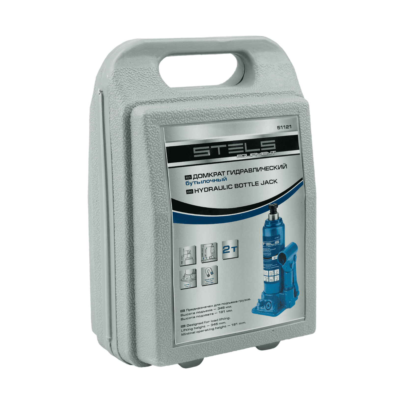 Домкрат гидравлический бутылочный, 2 т, H подъема 181-345 мм, в пластиковый кейсе, Stels