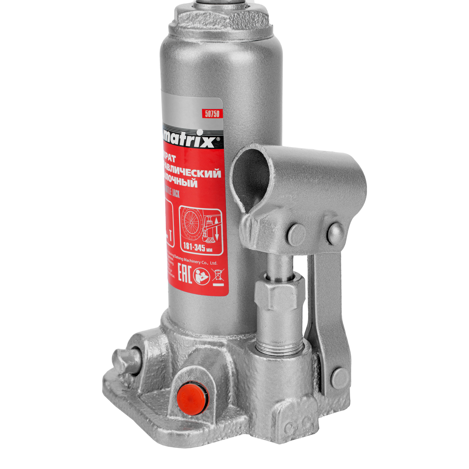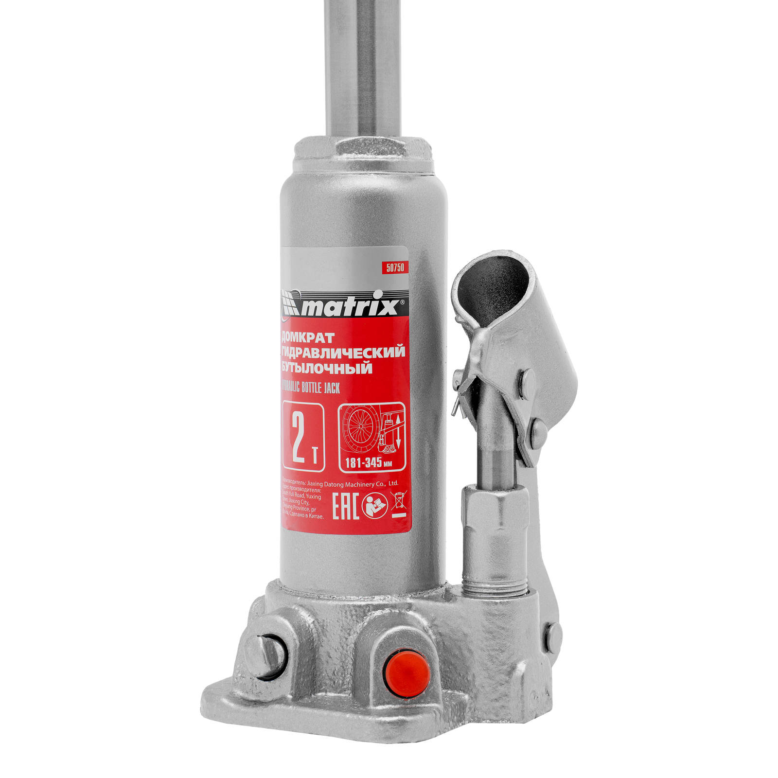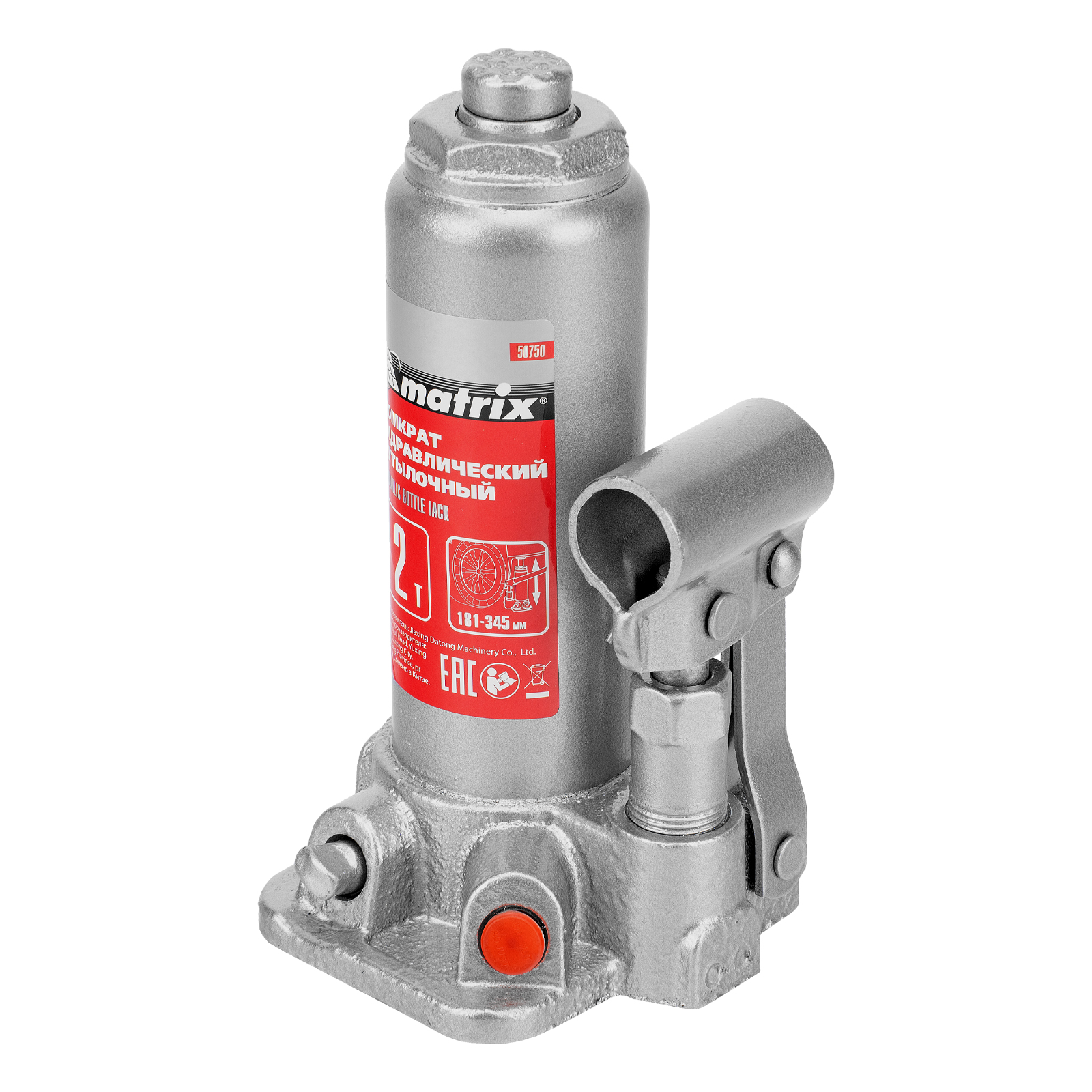 Домкрат гидравлический бутылочный Matrix 50750 предназначен для подъема грузов массой до 2 т на высоту от 181 до 345 мм. Оптимален для машин с большим клиренсом. Будет полезен автолюбителям при проведении технического обслуживания и ремонте авто в дороге или в гараже. Также домкрат подходит для полупрофессионального применения на станциях ТО.