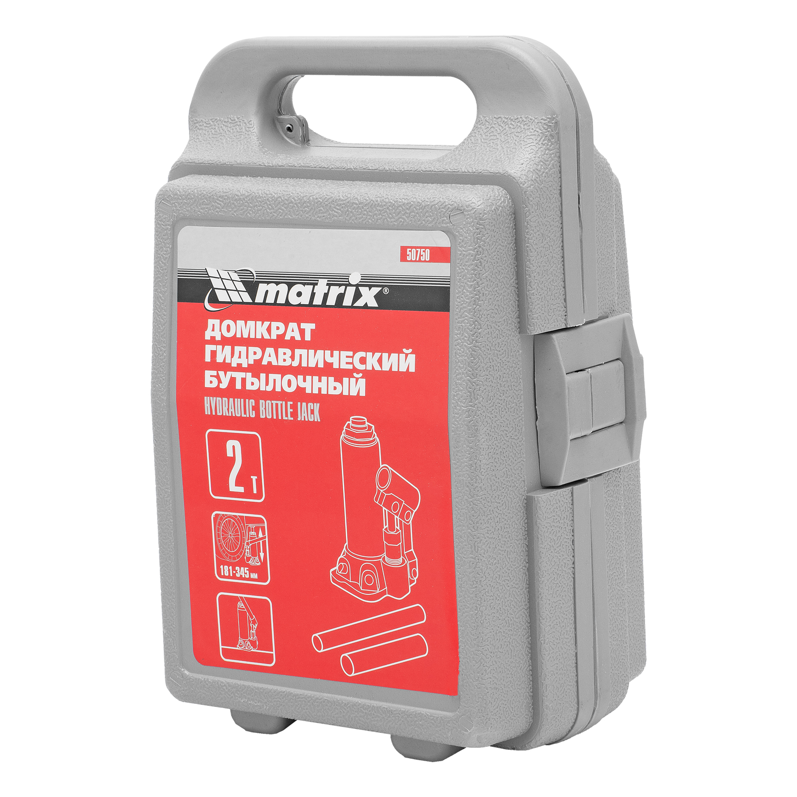 Домкрат гидравлический бутылочный, 2 т, высота подъема 181-345 мм, в пластиковый кейсе Matrix
