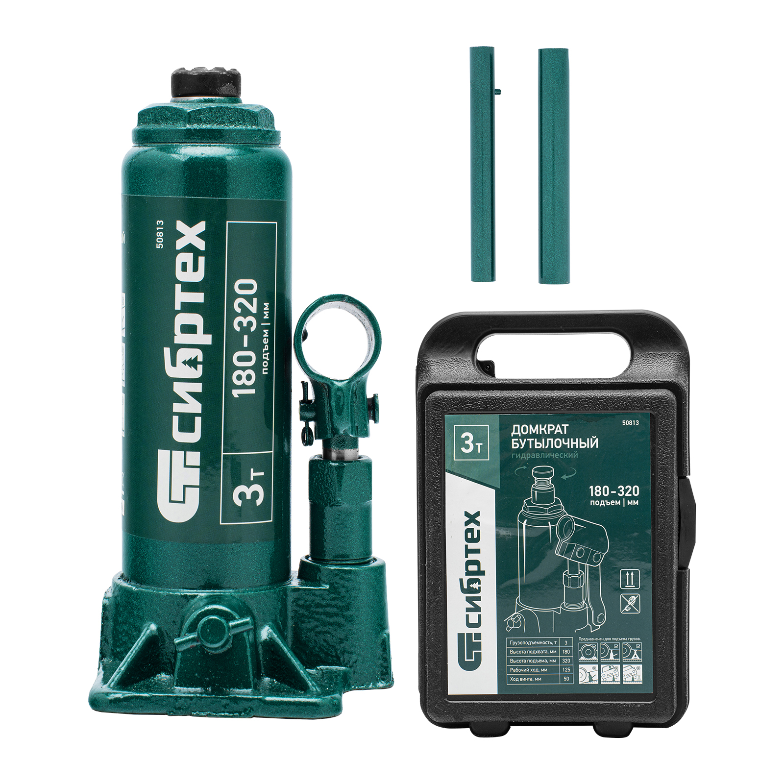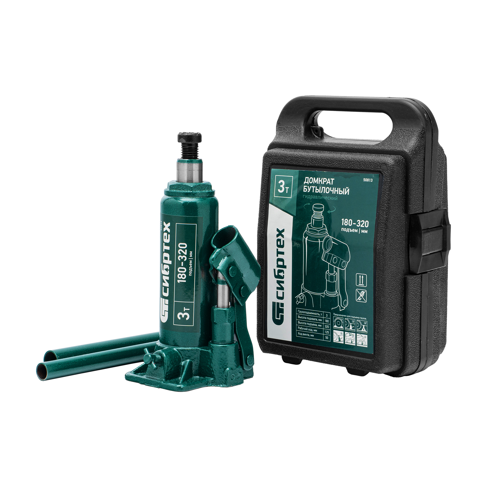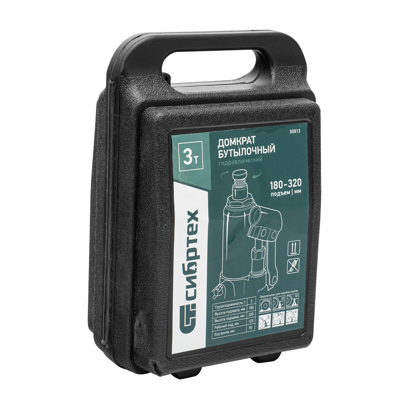 Домкрат гидравлический бутылочный, 3 т, 180-320 мм, в пласт. кейсе Сибртех
