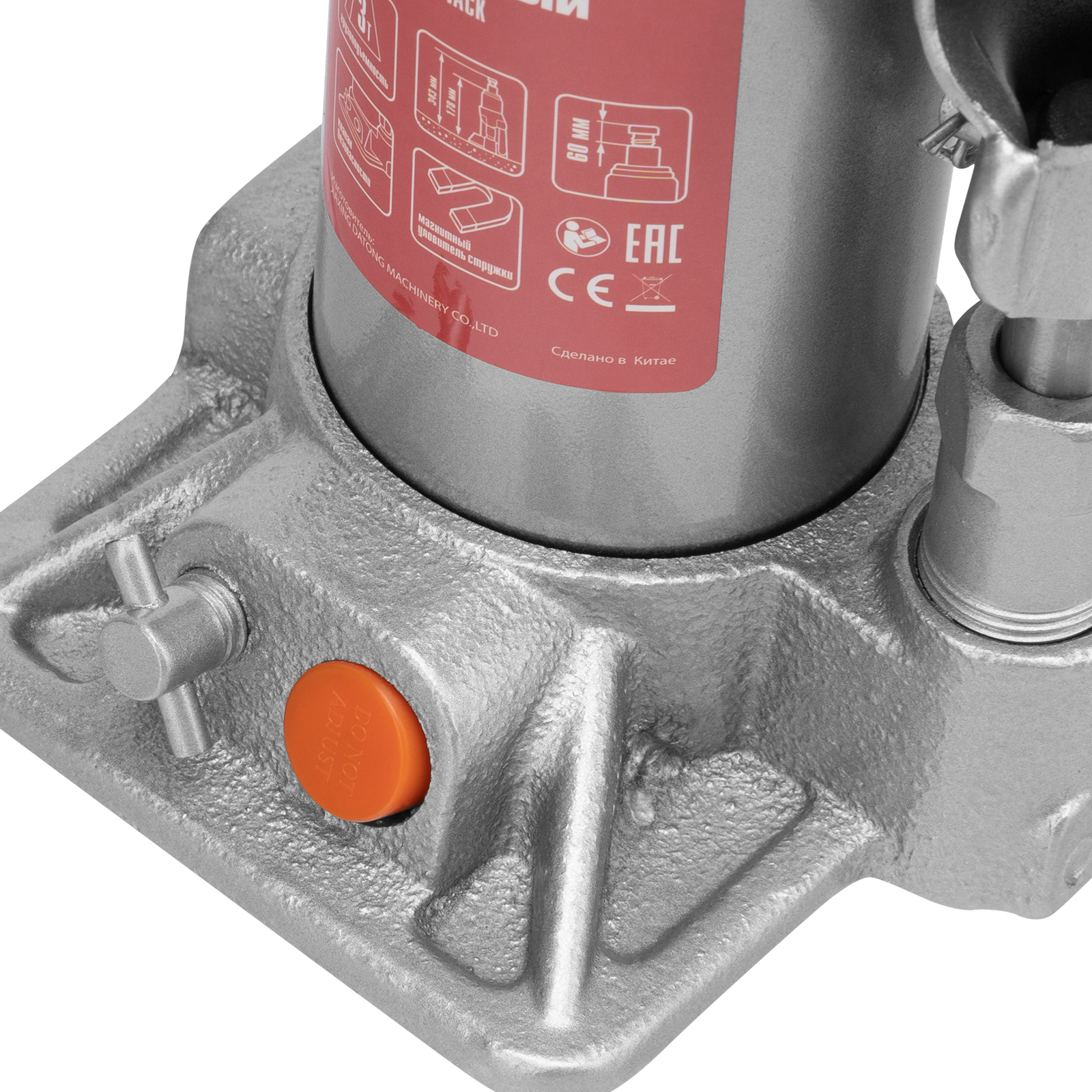 - Безопасность — предохранительный клапан защищает домкрат от перегрузок, не позволяя поднимать автомобиль массой более 3000 кг.