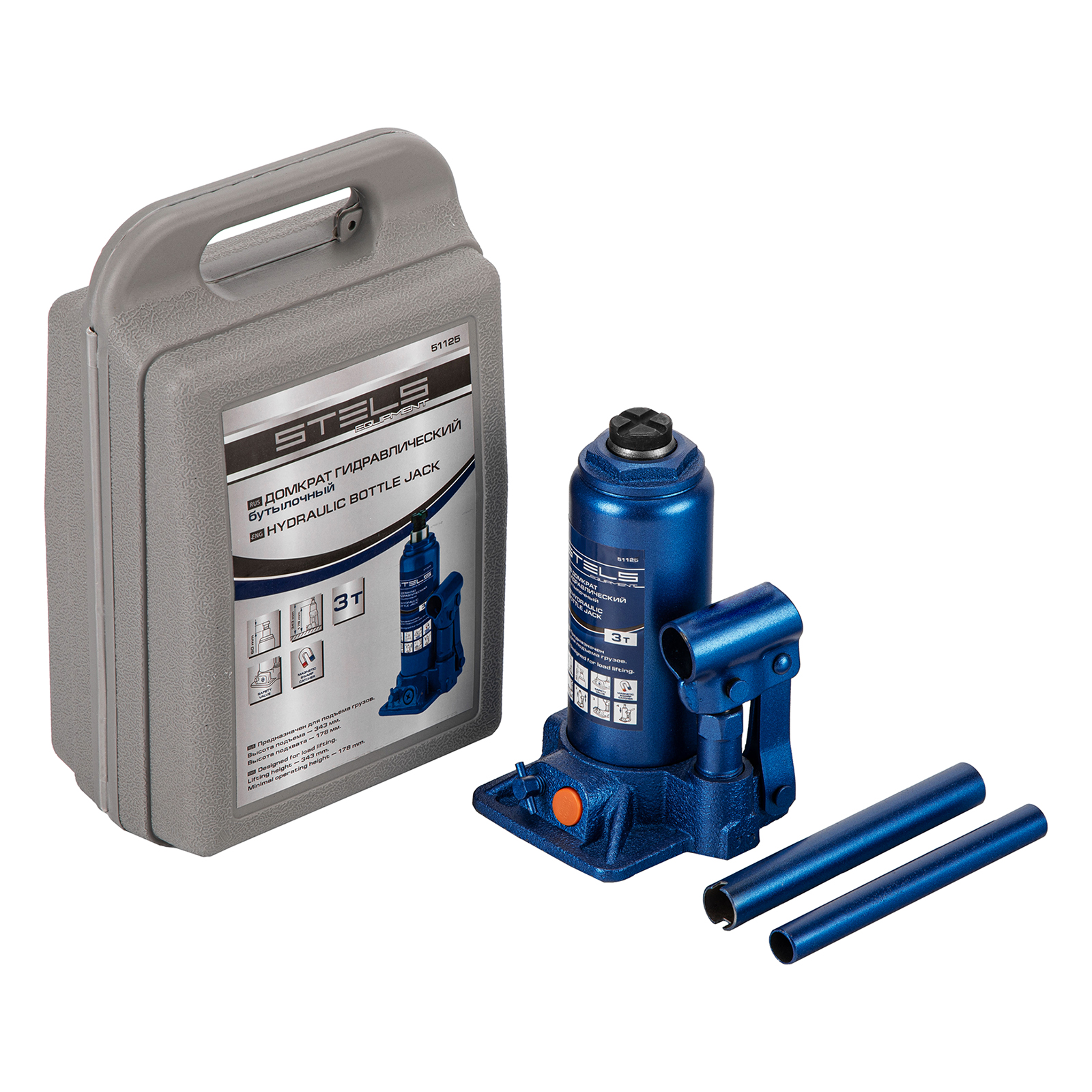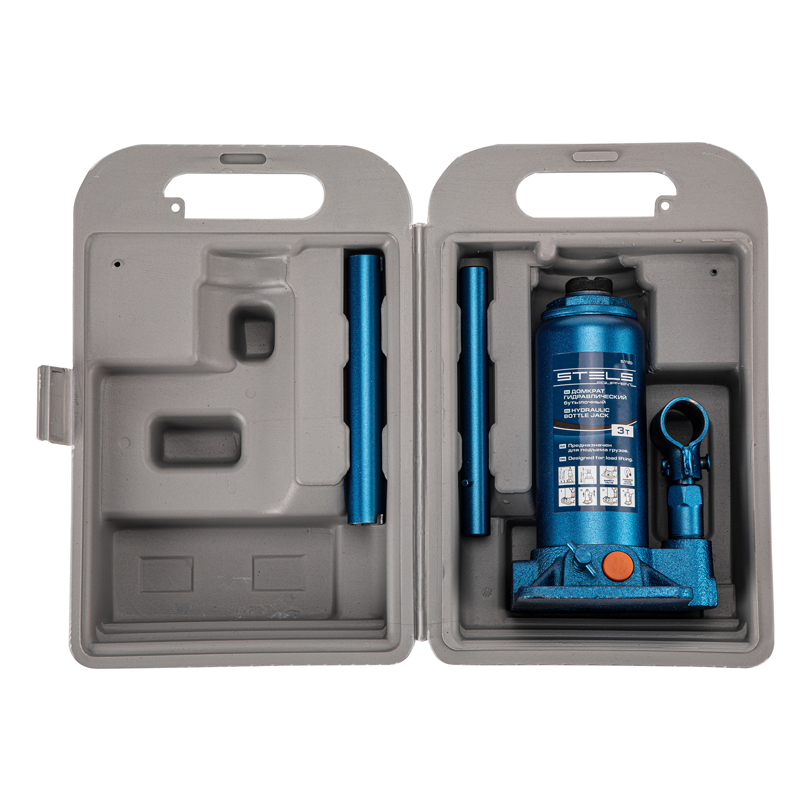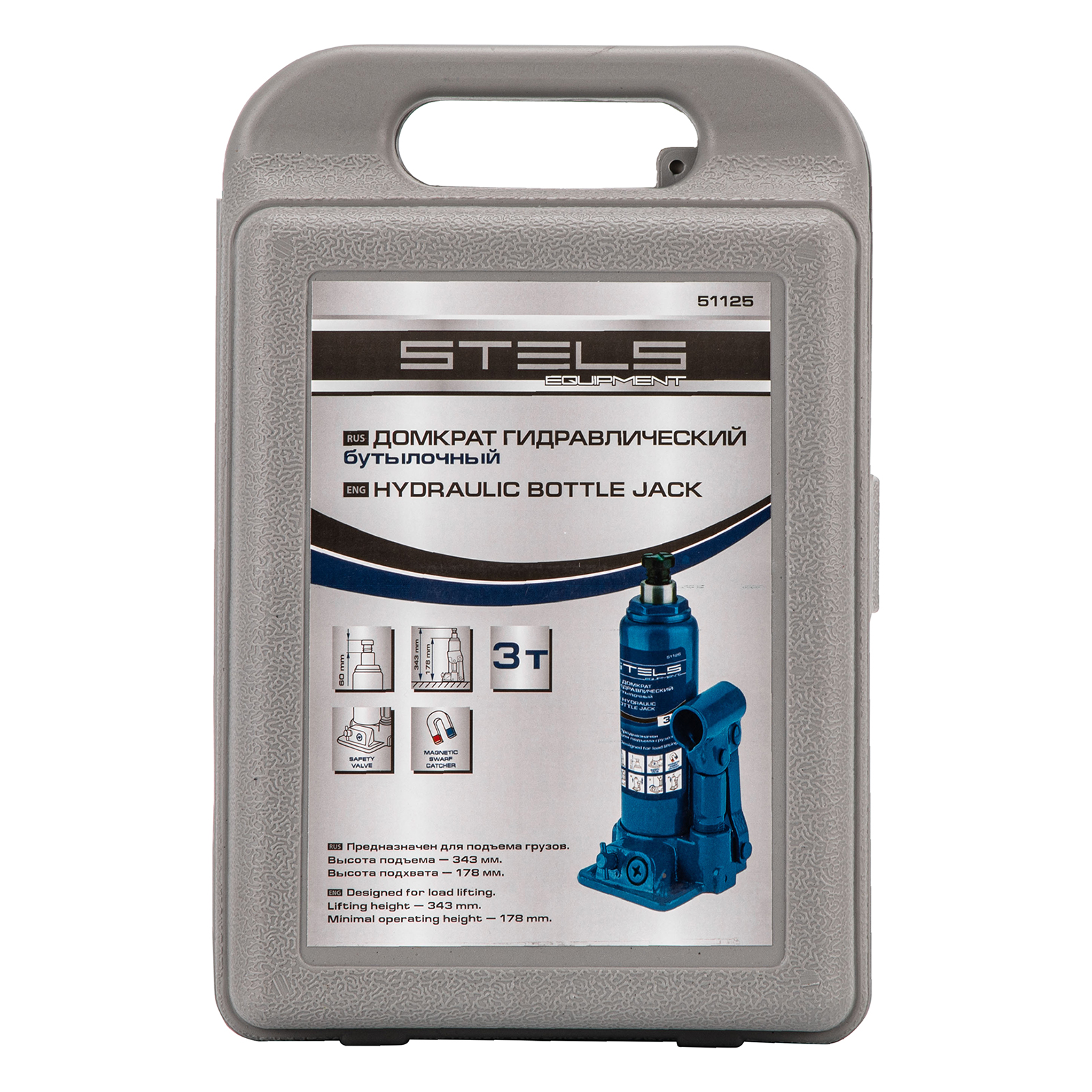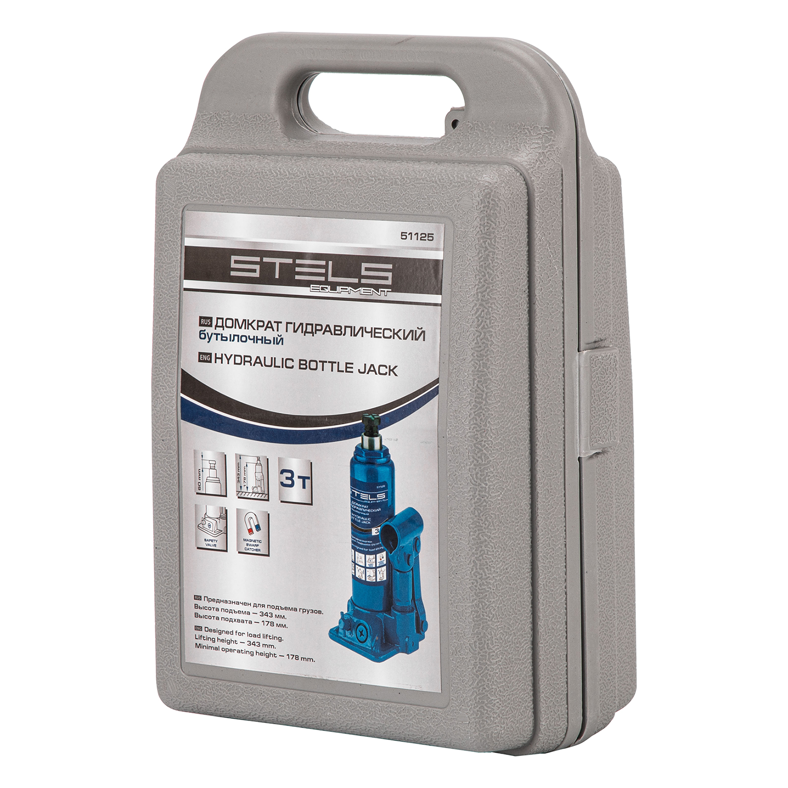 Домкрат гидравлический бутылочный, 3 т, H подъема 178-343 мм, в пластиковом кейсе Stels