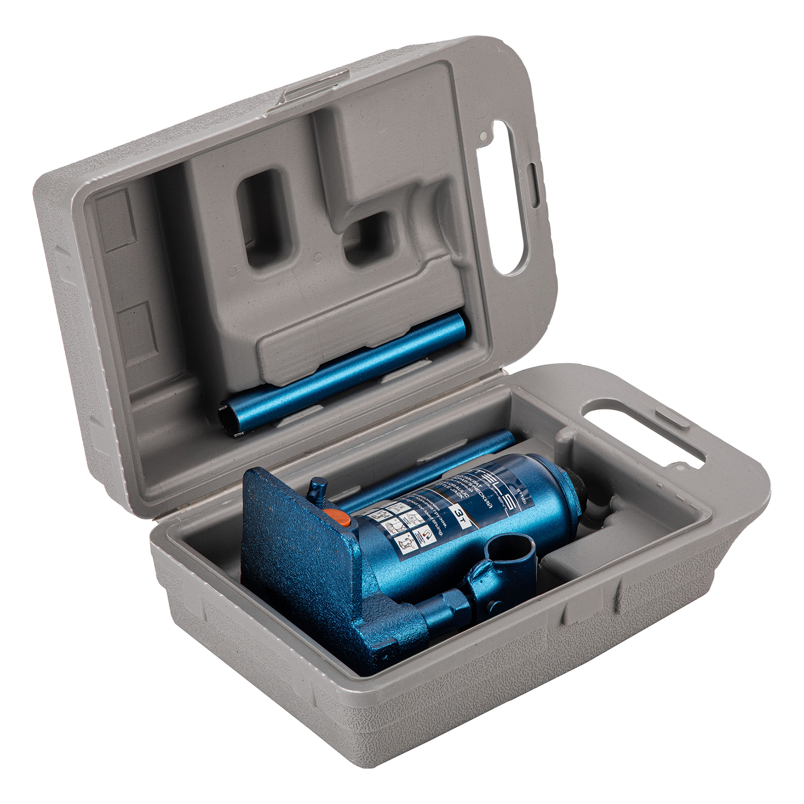- Удобное хранение и транспортировка — домкрат поставляется в прочном пластиковом кейсе.