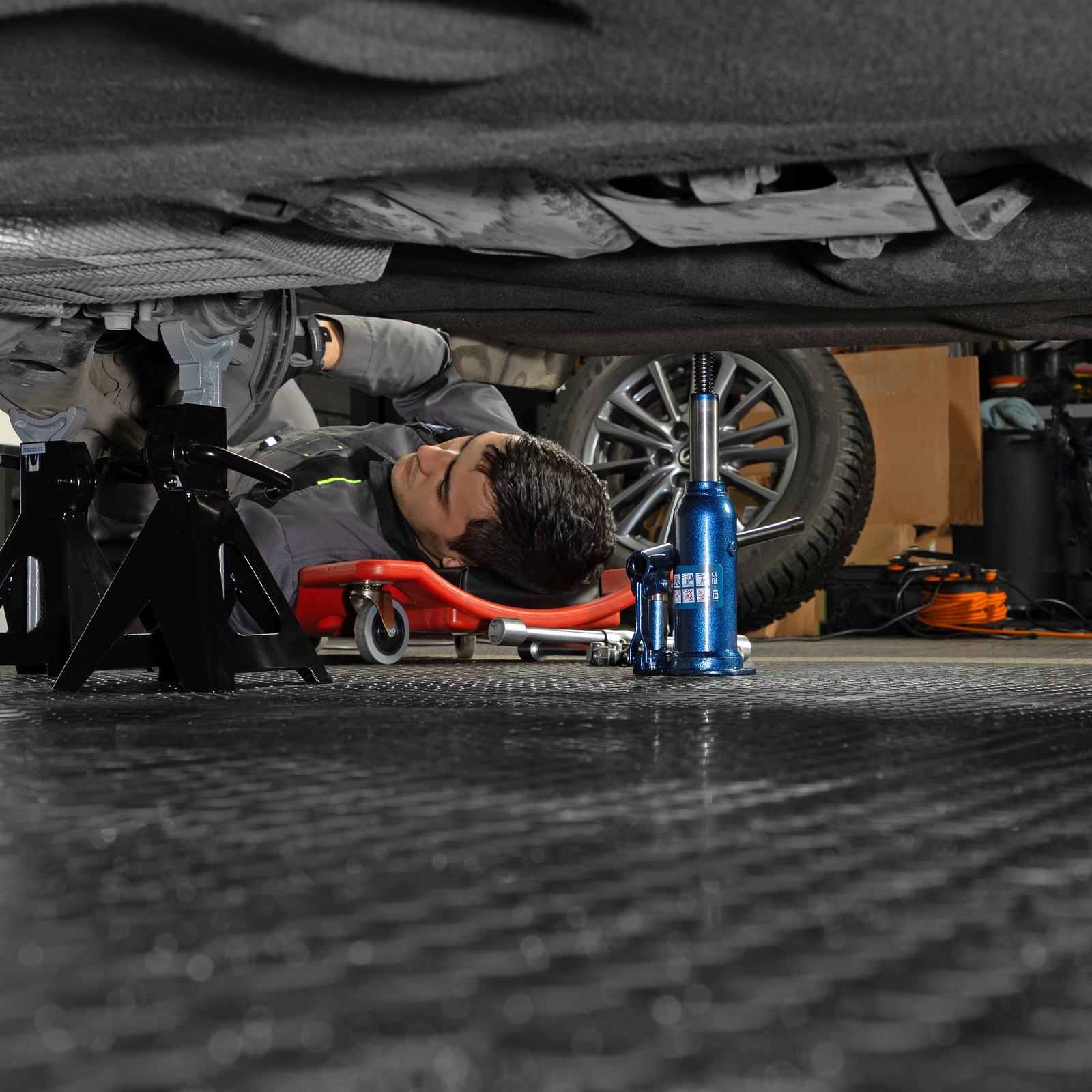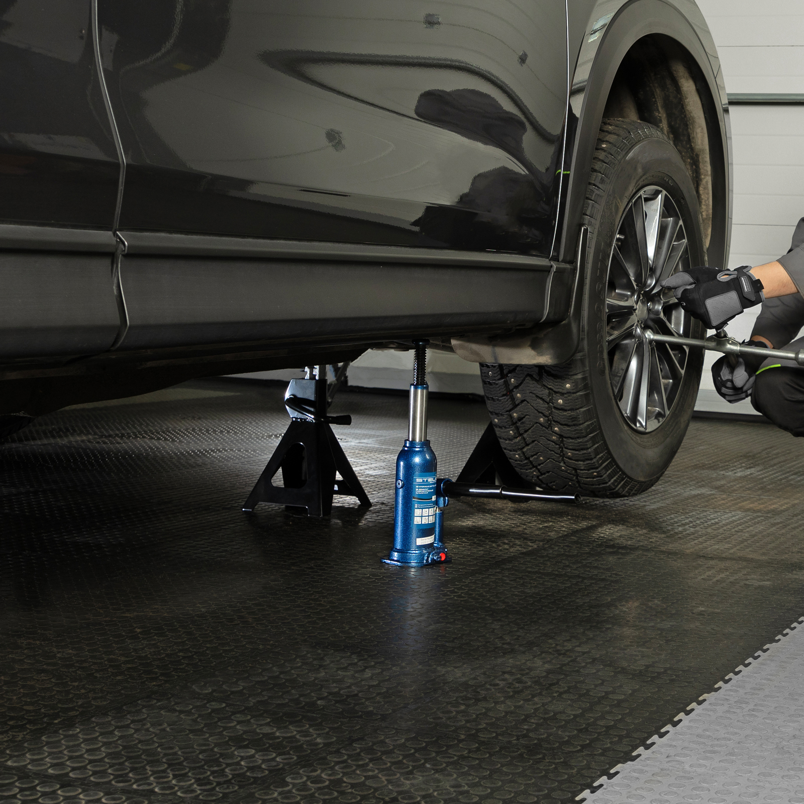 - Удобное хранение и транспортировка — домкрат поставляется в пластиковом кейсе.