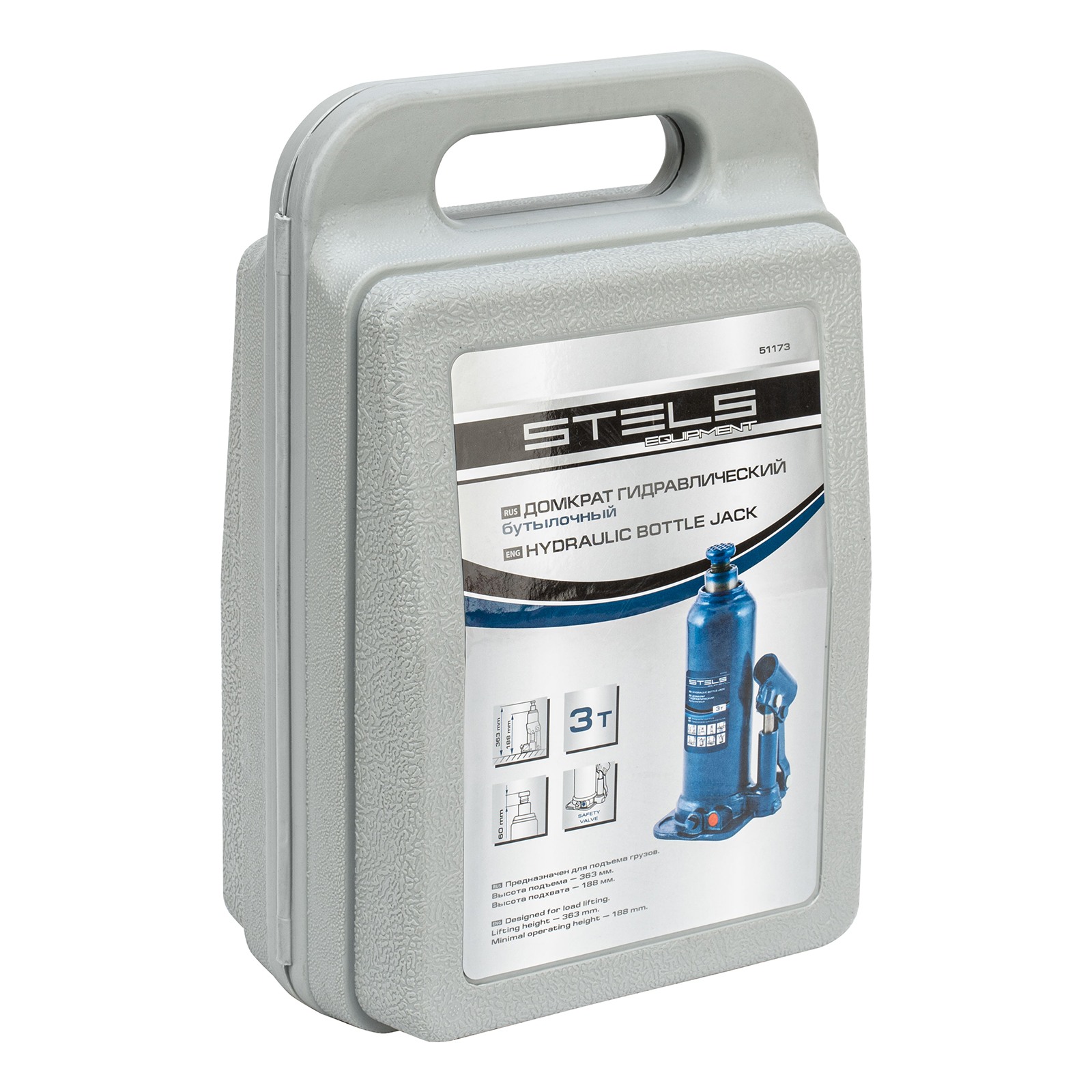 Домкрат гидравлический бутылочный, 3 т, h подъема 188-363 мм, в пластиковом кейсе Stels