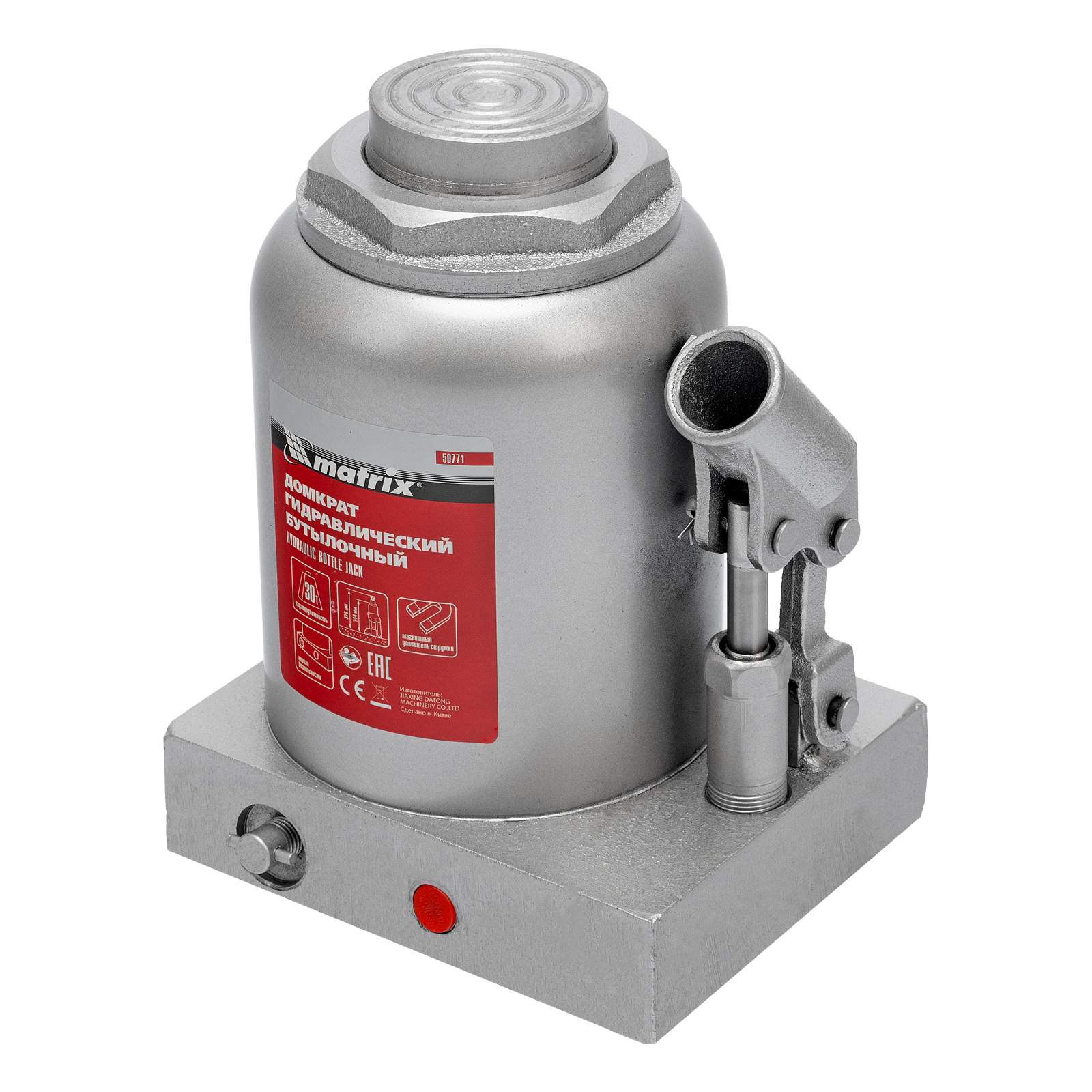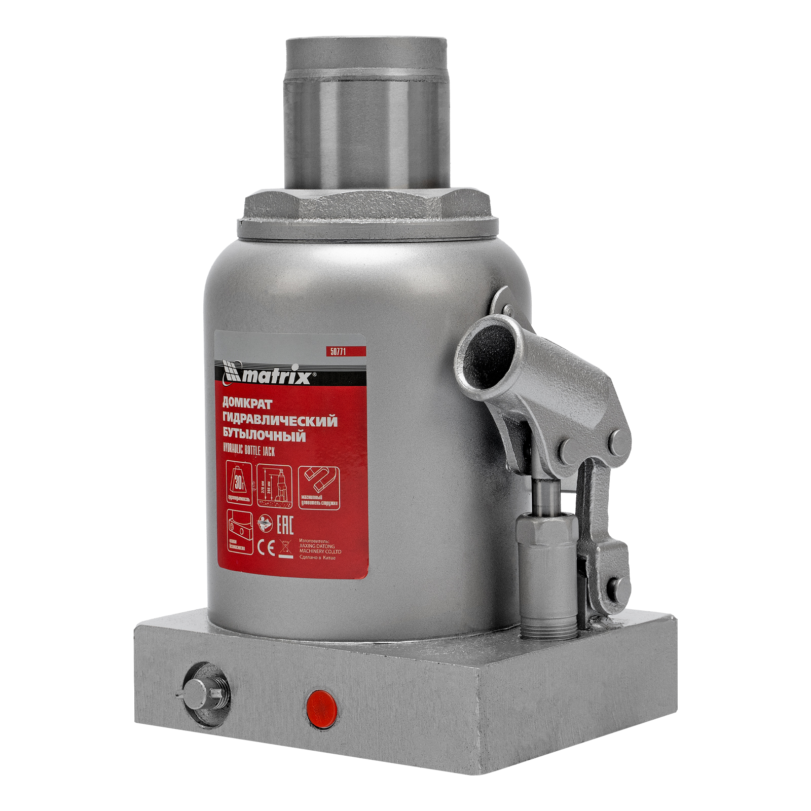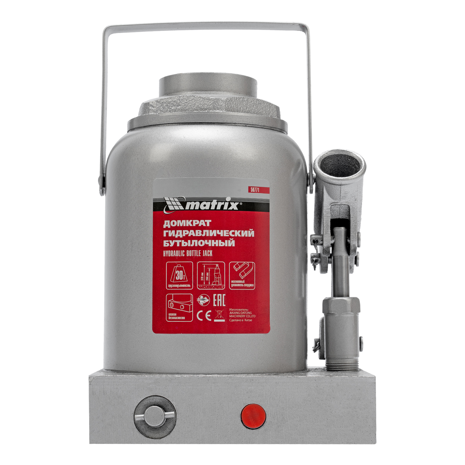 Гидравлический бутылочный домкрат Matrix 50771 предназначен для быстрого поднятия грузов массой до 30 т на высоту 244-370 мм. Будет полезен автолюбителям и мастерам СТО в качестве полупрофессионального инструмента. Встроенный магнитный уловитель металлической стружки защищает резиновые уплотнители от повреждений.