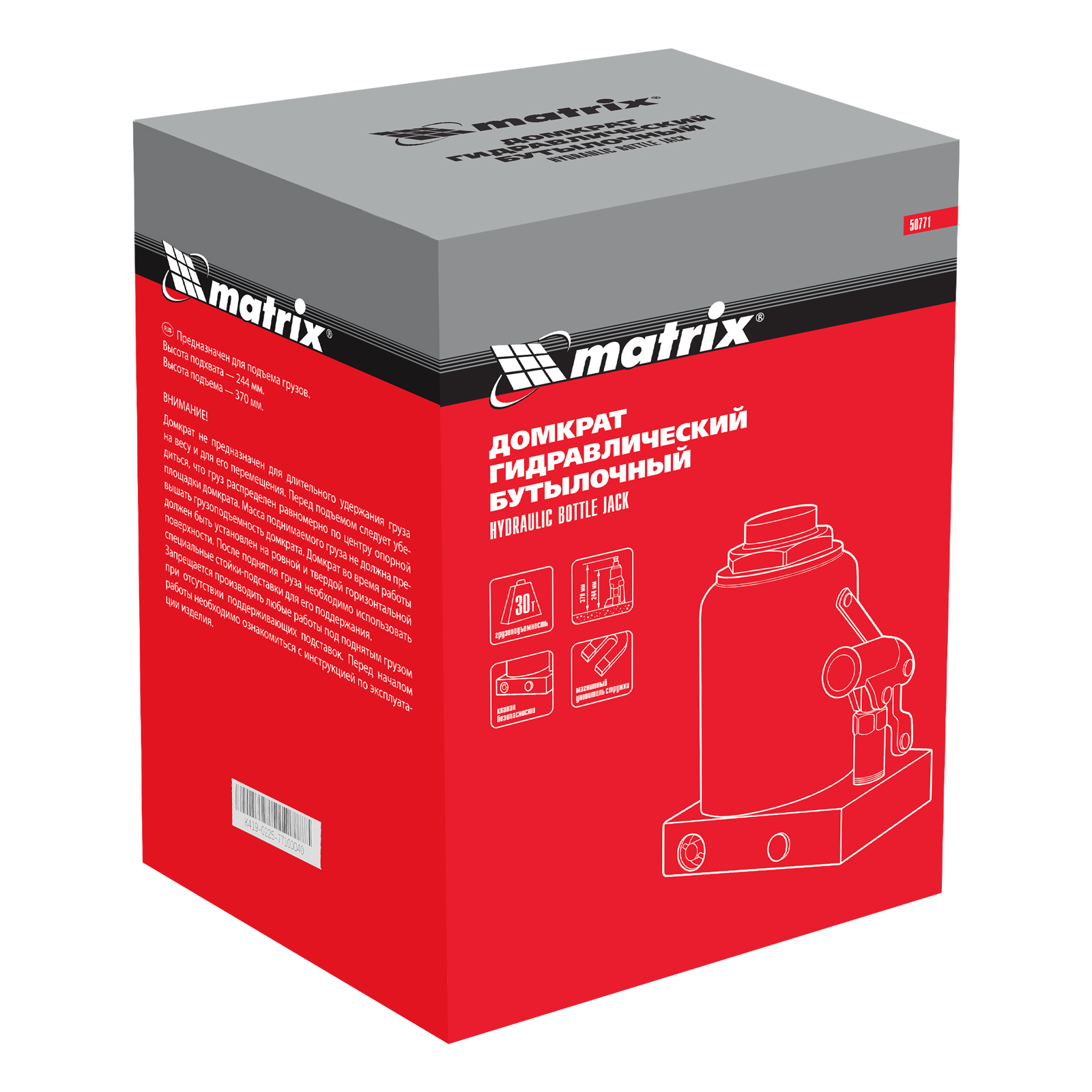 Домкрат гидравлический бутылочный, 30 т, h подъема 244-370 мм Matrix в Казани
