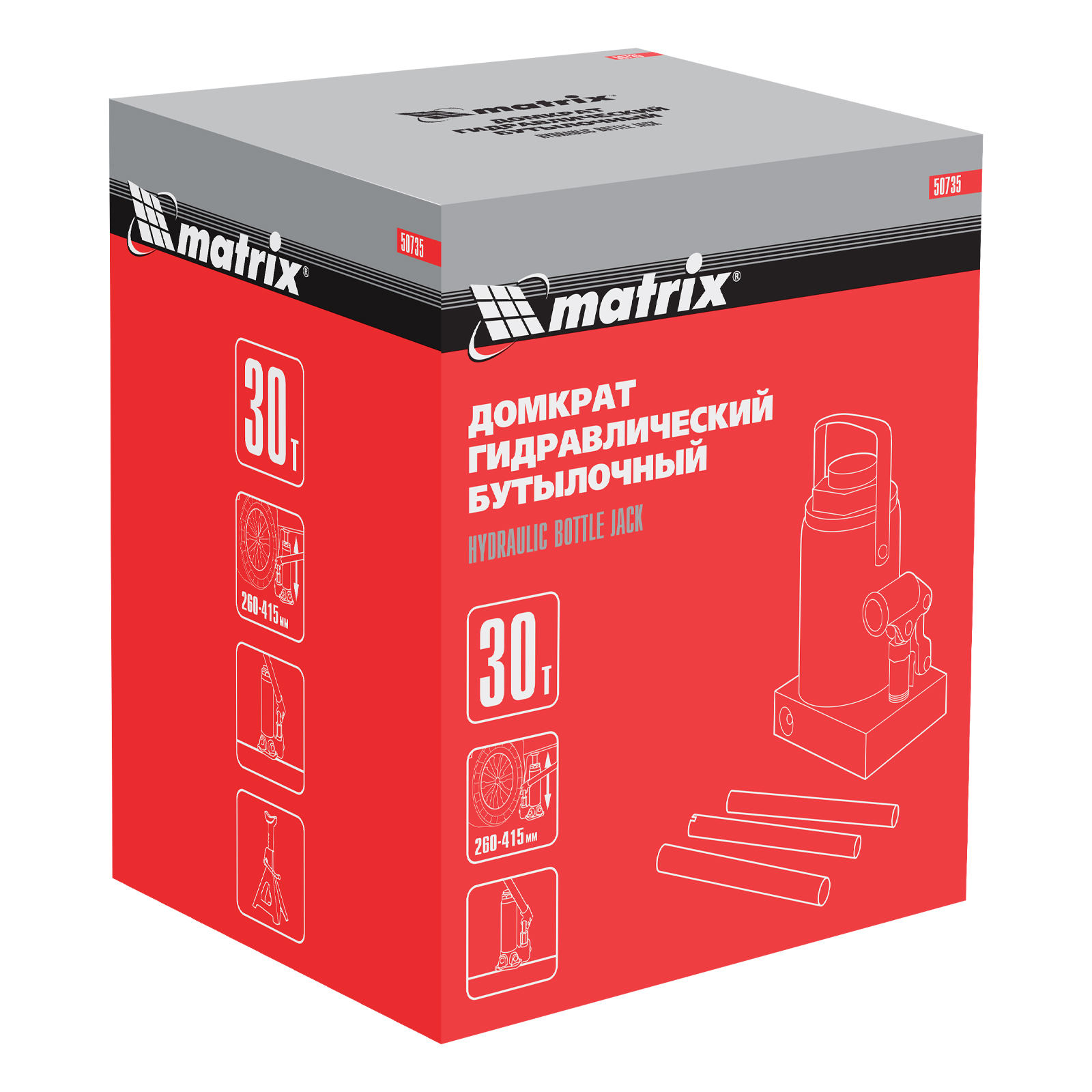 Домкрат гидравлический бутылочный, 30 т, высота подъема 260-415 мм Matrix