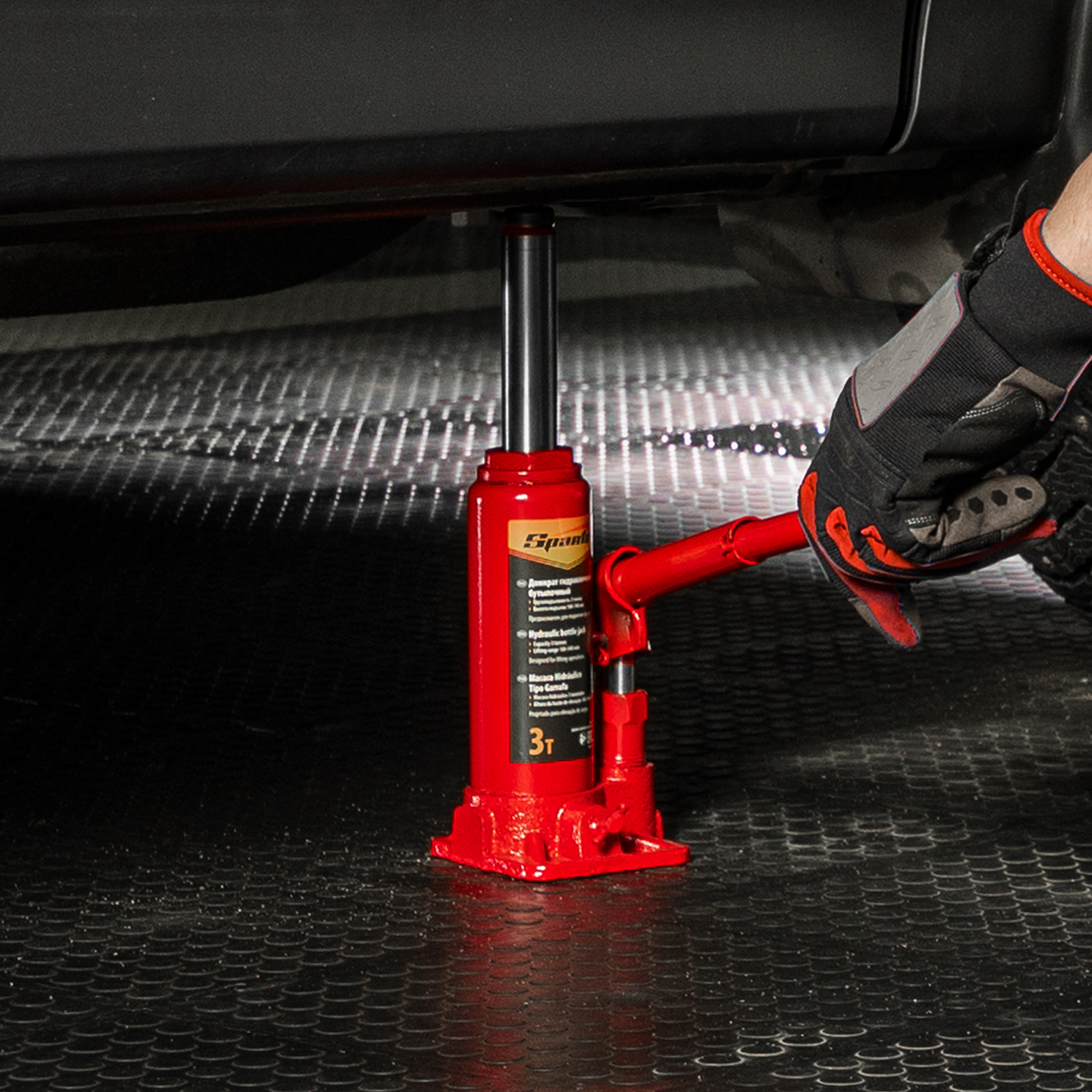 Гидравлический бутылочный домкрат Sparta 50322 рассчитан на подъем грузов весом до 3 т на высоту от 180 до 340 мм. Он пригодится как автолюбителям в гараже, так и профессиональным мастерам в автосервисах. Домкрат обеспечивает плавный подъем груза без особых усилий со стороны пользователя.