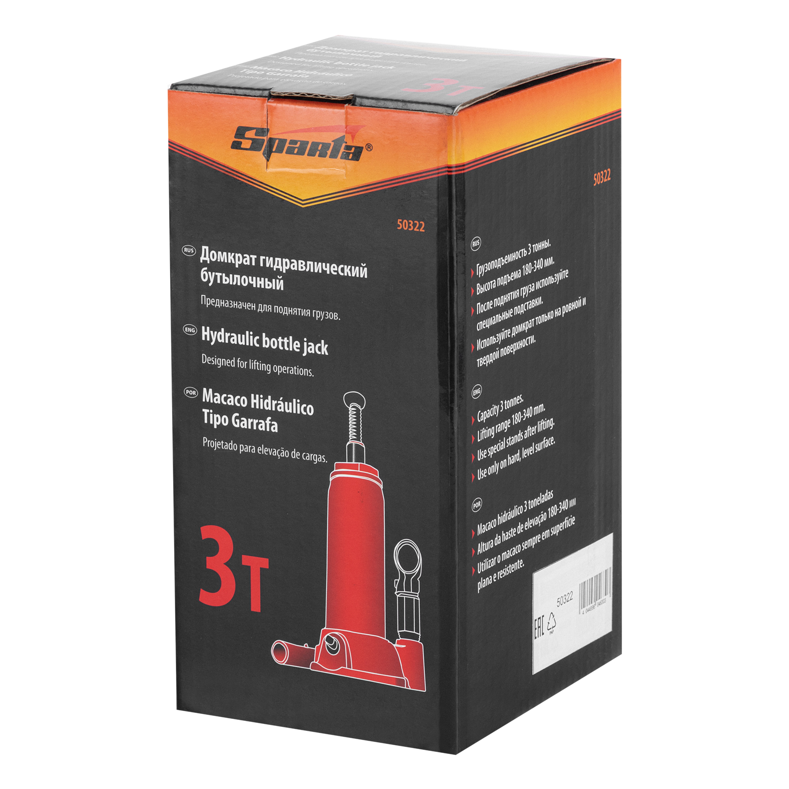 Домкрат гидравлический бутылочный, 3т, h подъема 180-340 мм Sparta