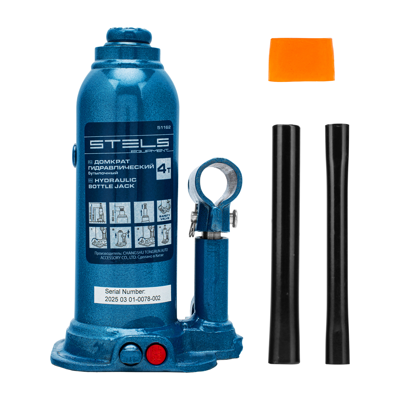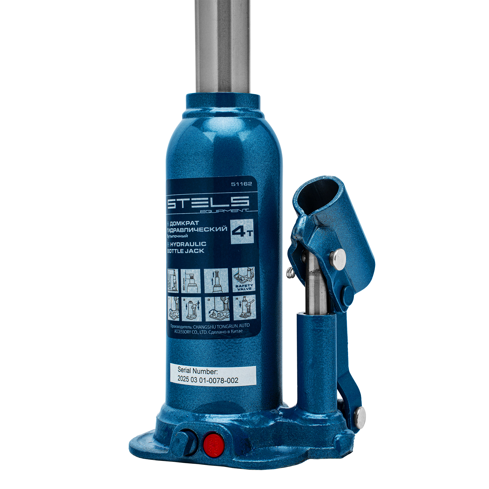 Гидравлический бутылочный домкрат Stels 51162 применяется для быстрого поднятия грузов весом до 4 т на высоту 188-363 мм. Оптимален для автомобилей с большим клиренсом. Домкрат будет полезен автолюбителям и профессионалам для ремонта транспортного средства.