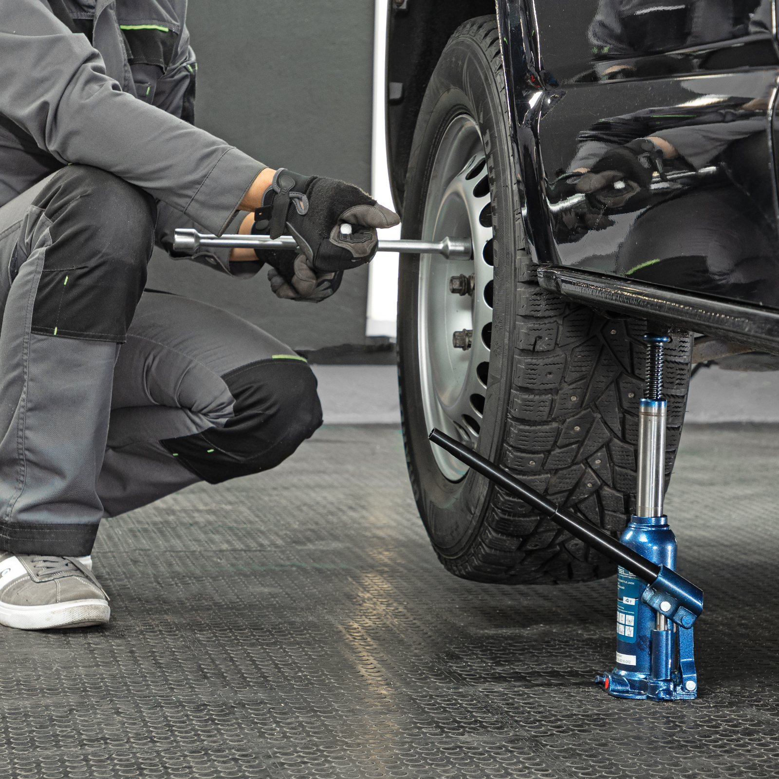 - Безопасная эксплуатация — благодаря предохранительному клапану домкрат не поднимает грузы тяжелее 4000 кг.