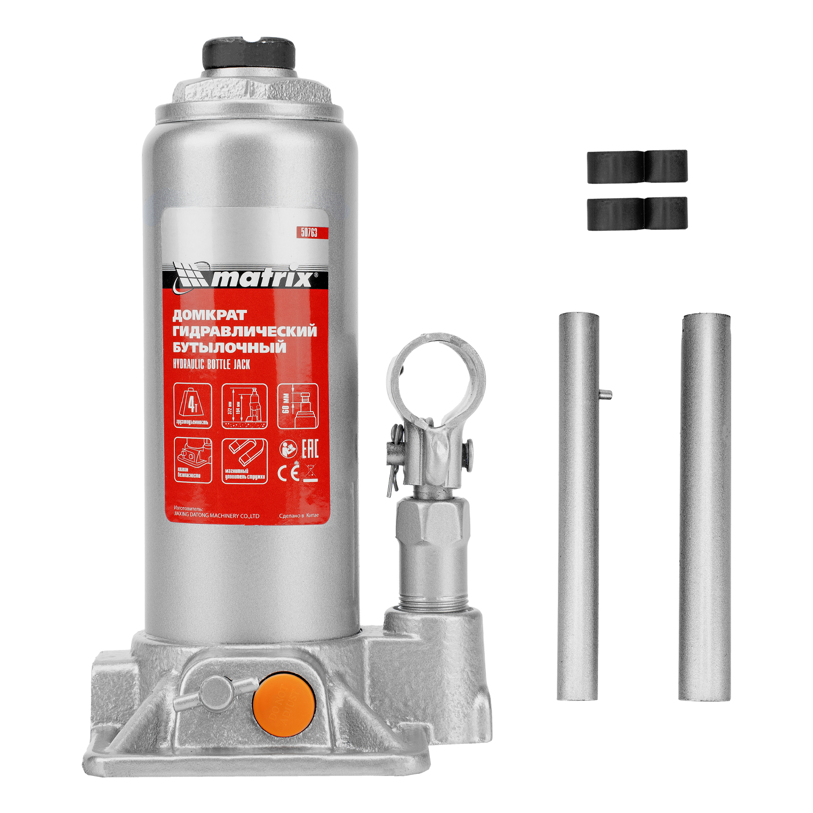 Домкрат гидравлический бутылочный, 4 т, h подъема 194-372 мм Matrix