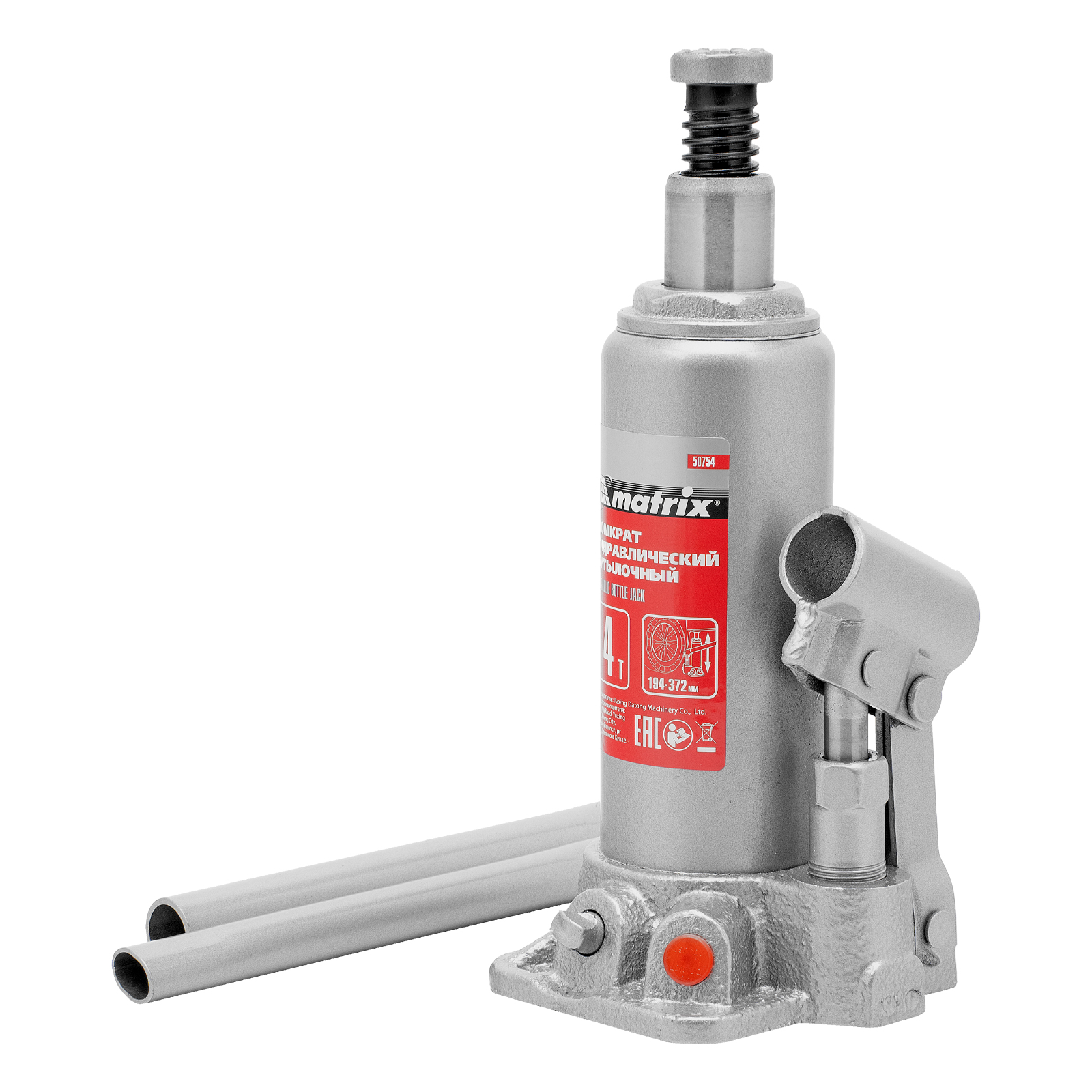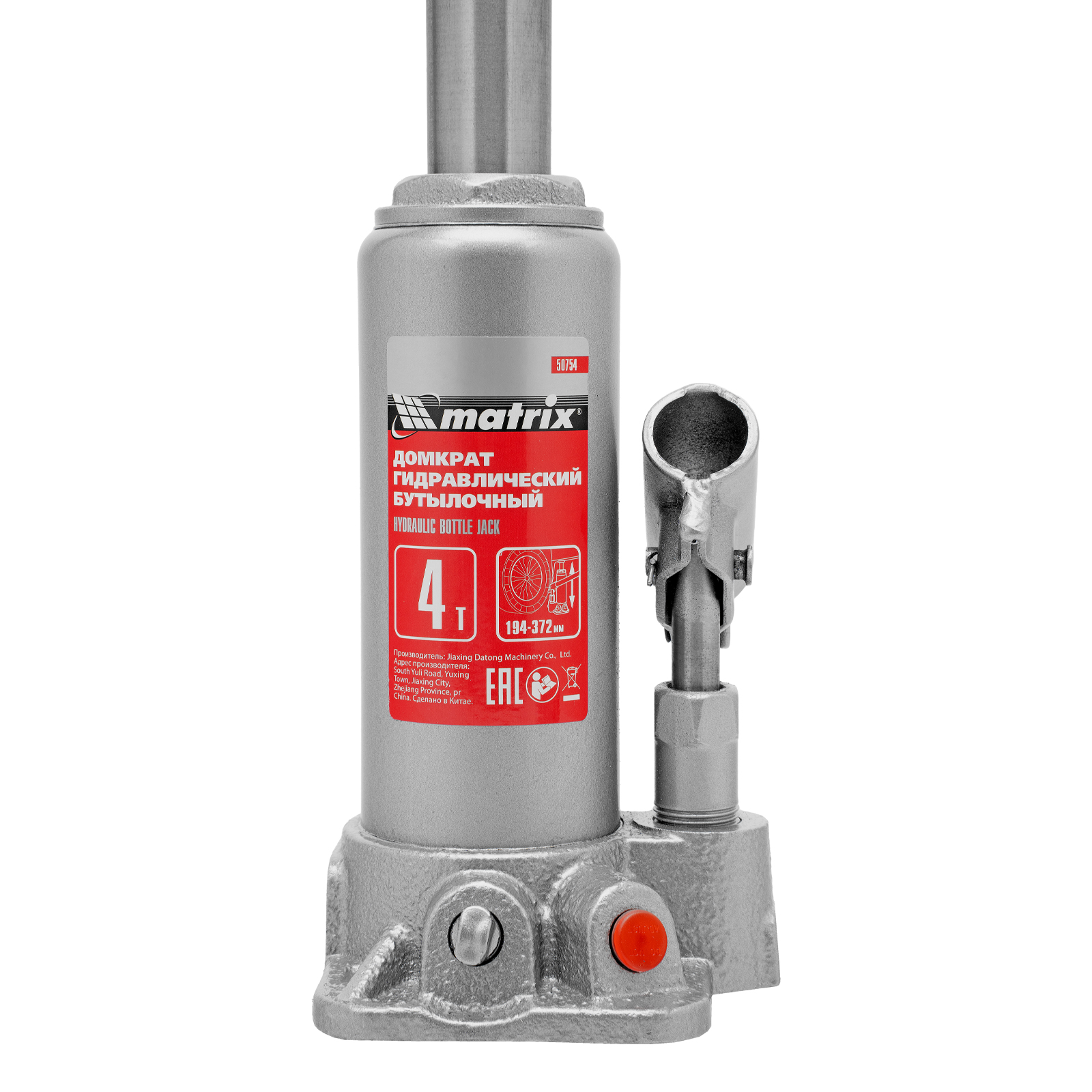 Домкрат гидравлический бутылочный Matrix 50754 предназначен для подъема грузов массой до 4 т на высоту от 194 до 372 мм. Оптимален для машин с большим клиренсом. Будет полезен автолюбителям при проведении технического обслуживания и ремонте авто в дороге или в гараже. Также домкрат подходит для полупрофессионального применения на станциях ТО.