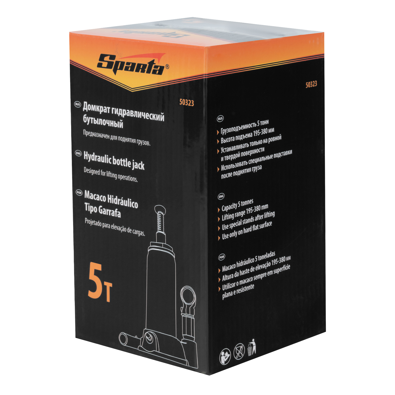 Домкрат гидравлический бутылочный, 5 т, h подъема 195-380 мм Sparta