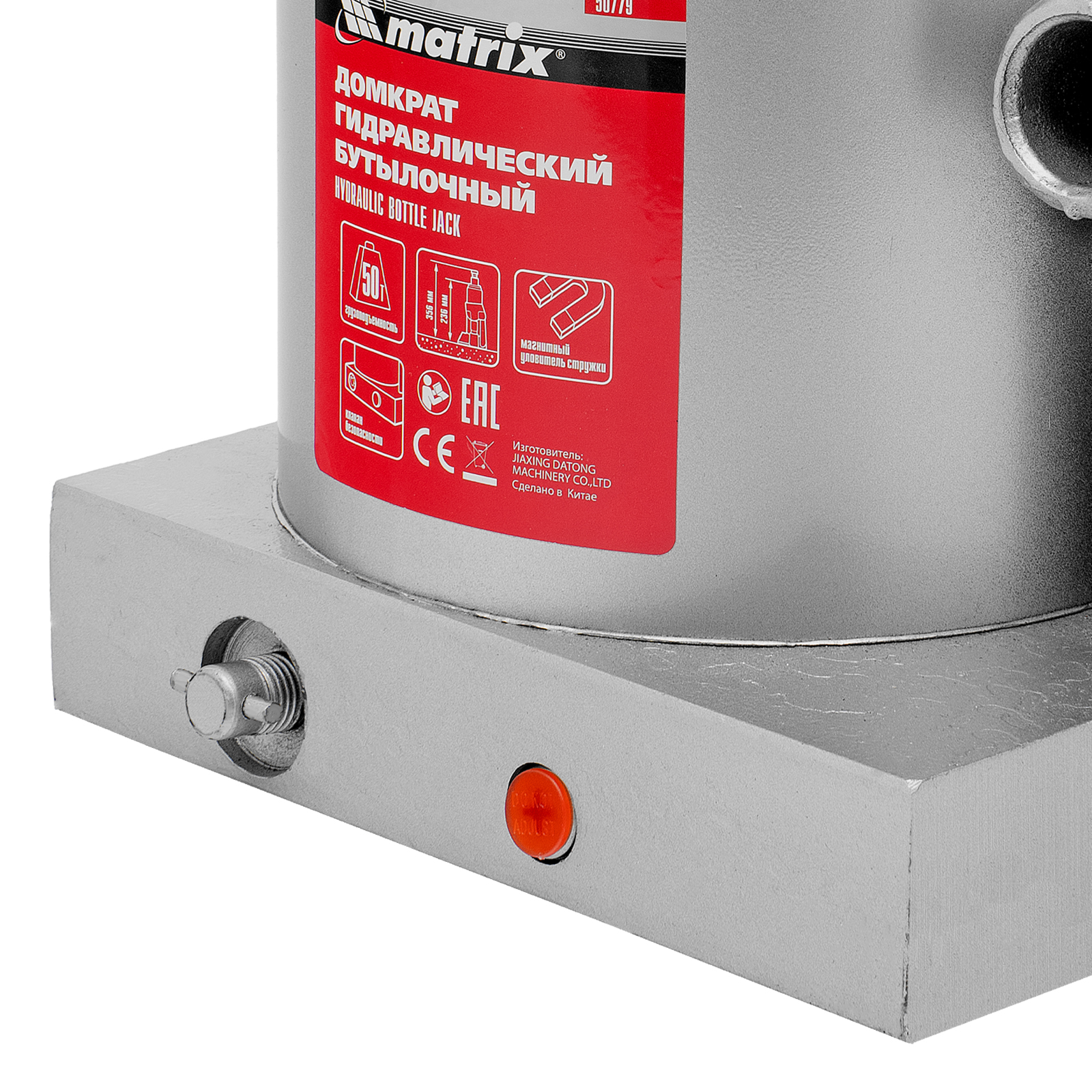 Гидравлический бутылочный домкрат Matrix 50779 поднимает грузы весом до 50 т на высоту 236-356 мм и может использоваться в гараже, на станции ТО или строительной площадке. Встроенный магнитный уловитель собирает металлическую стружку, образующуюся в процессе работы, что защищает домкрат от преждевременного износа.