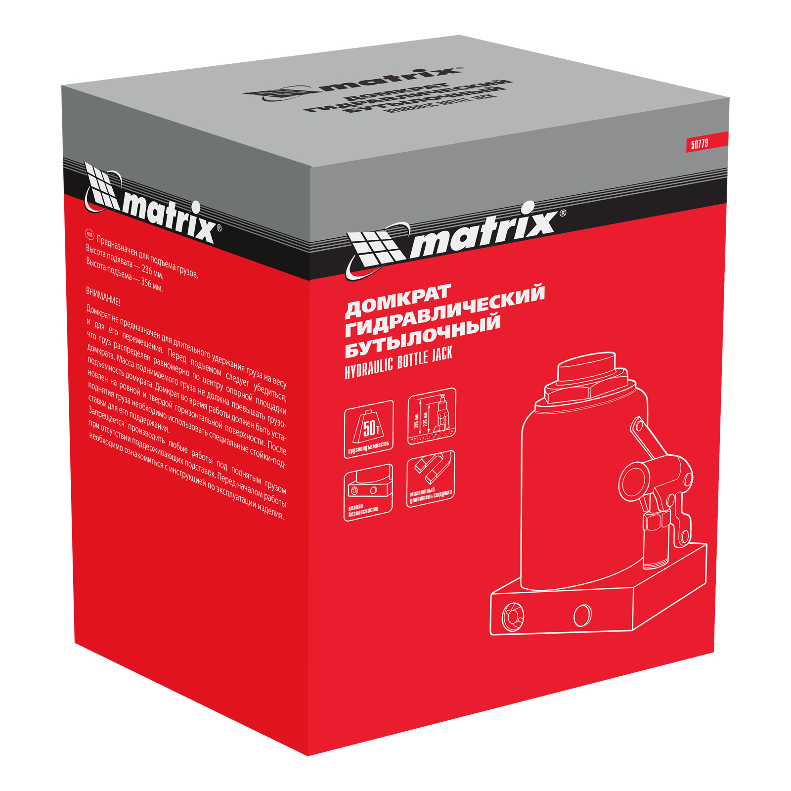 Домкрат гидравлический бутылочный, 50 т, h подъема 236-356 мм Matrix