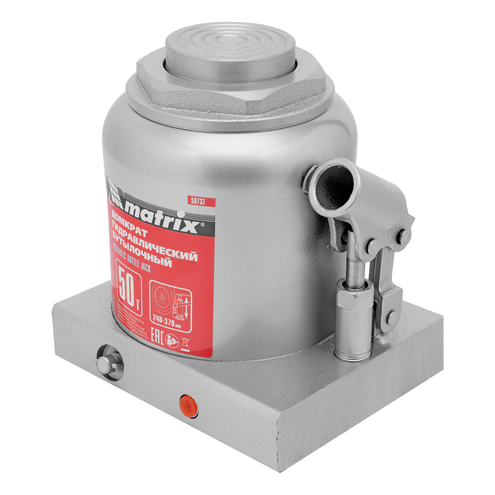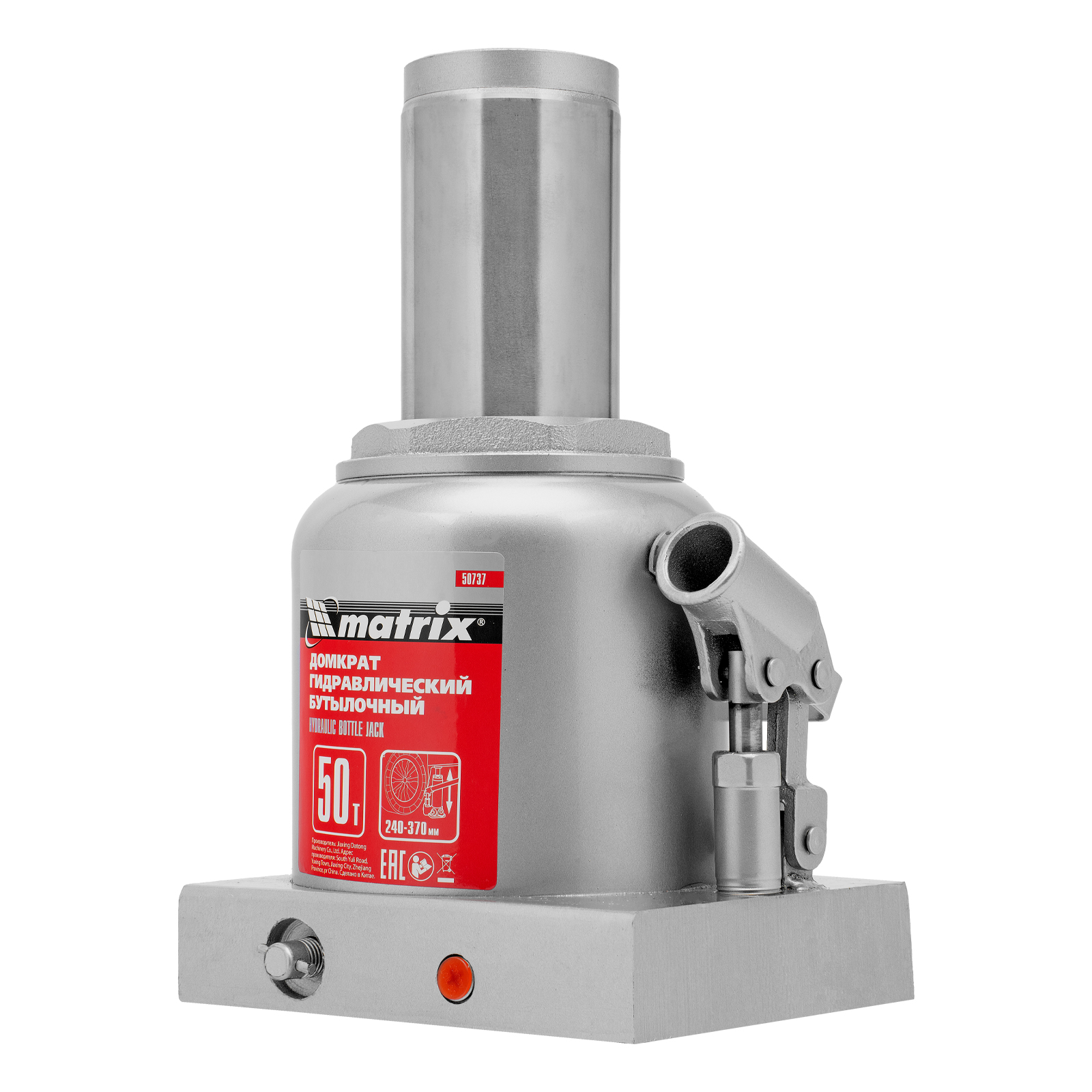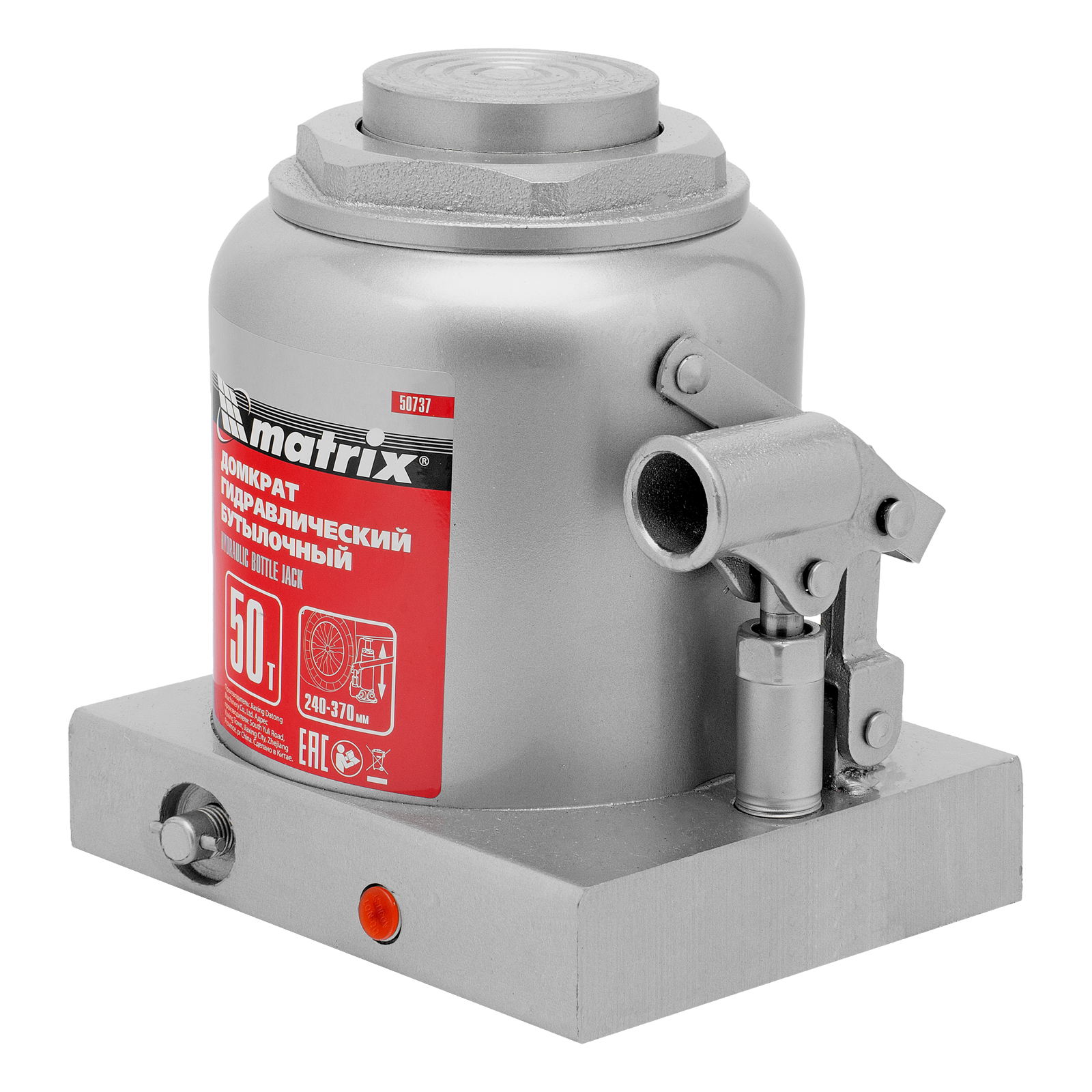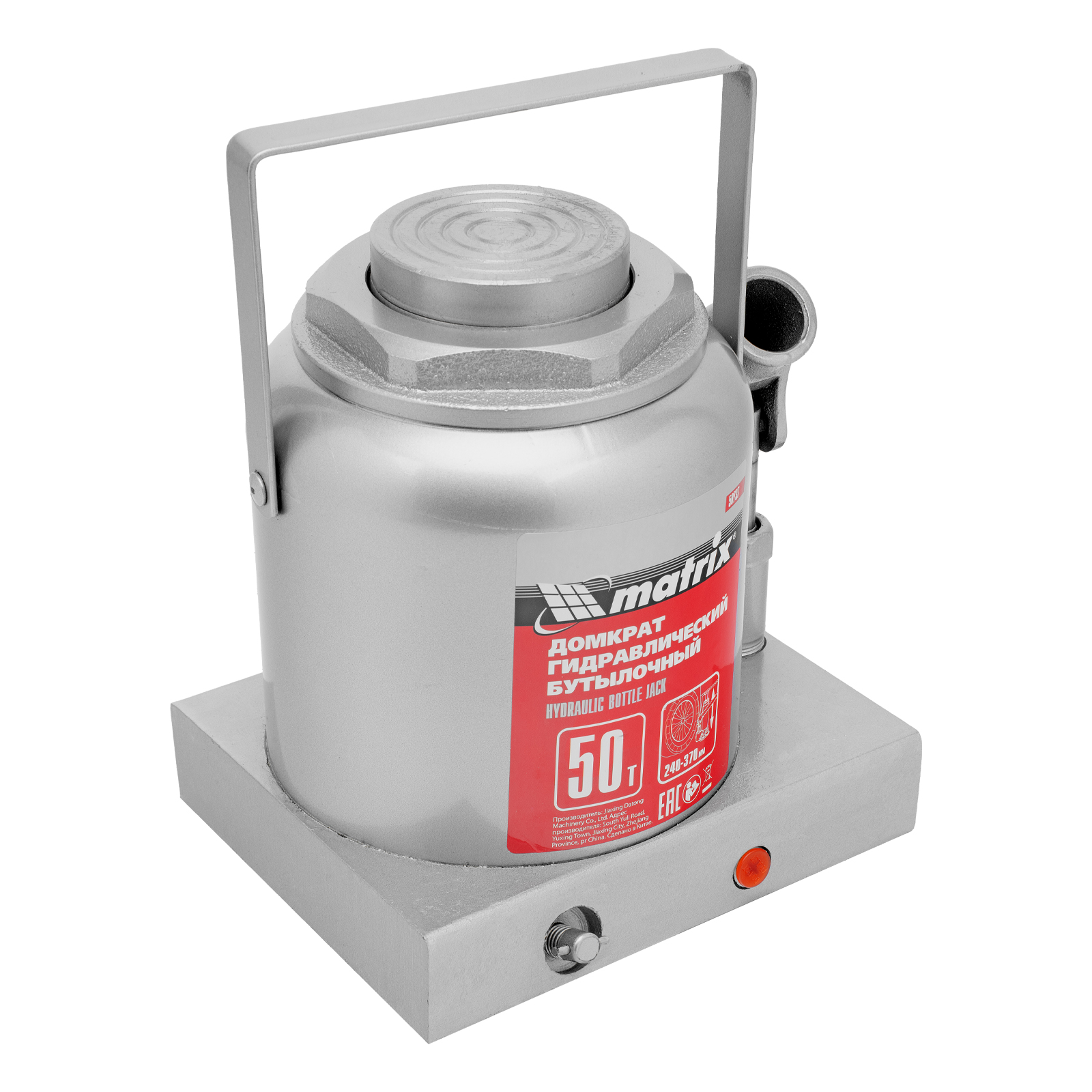 Домкрат гидравлический бутылочный, 50 т, высота подъема 240-370 мм Matrix