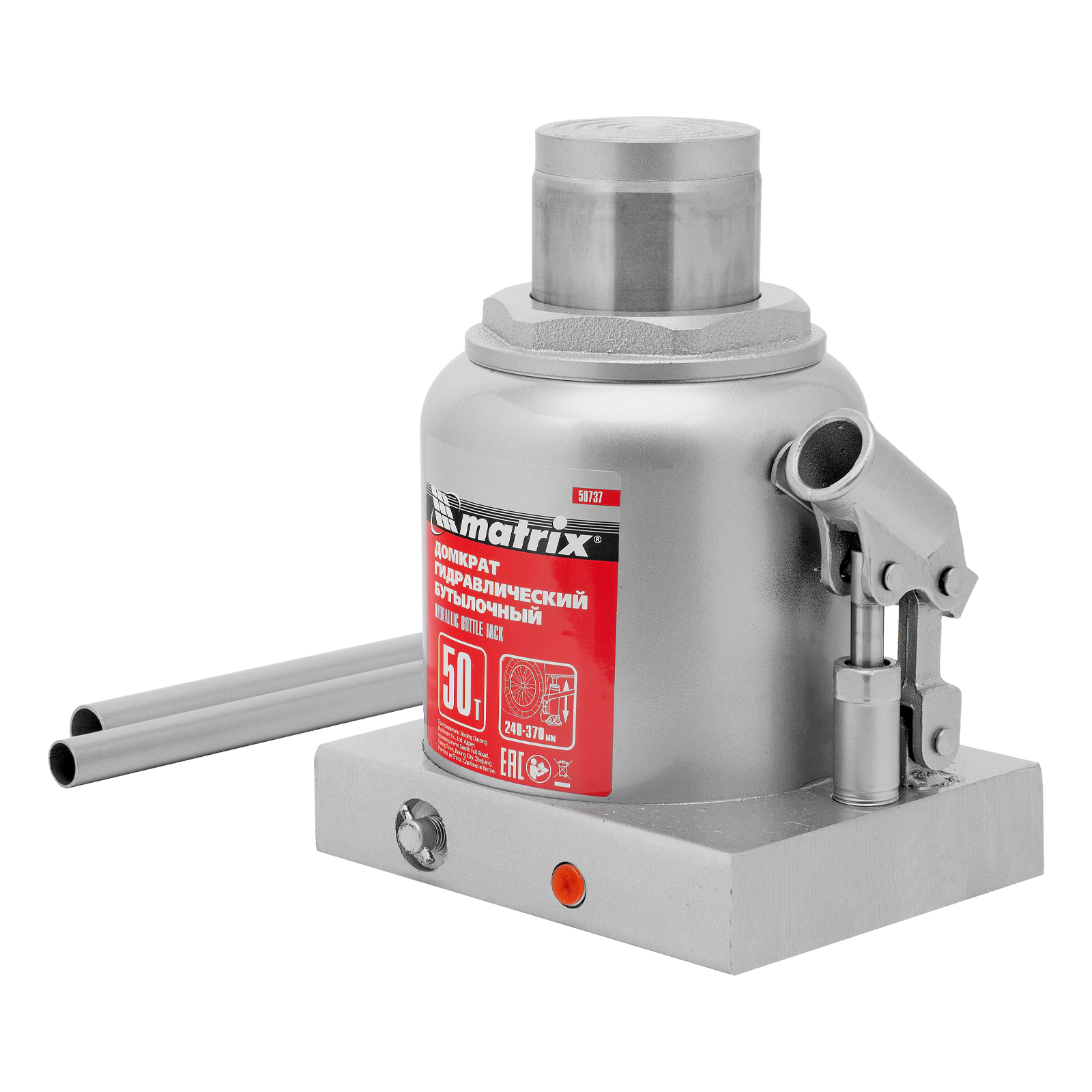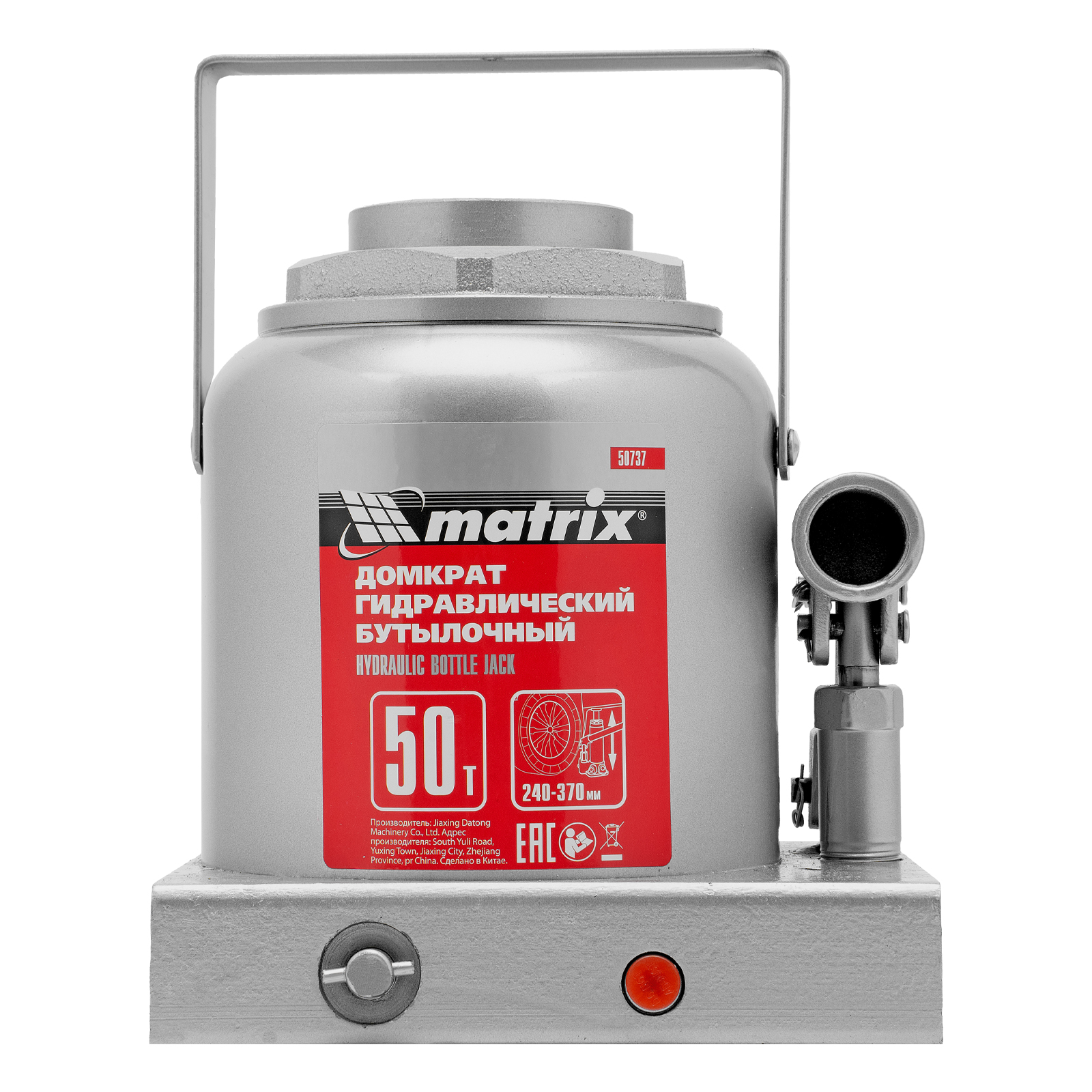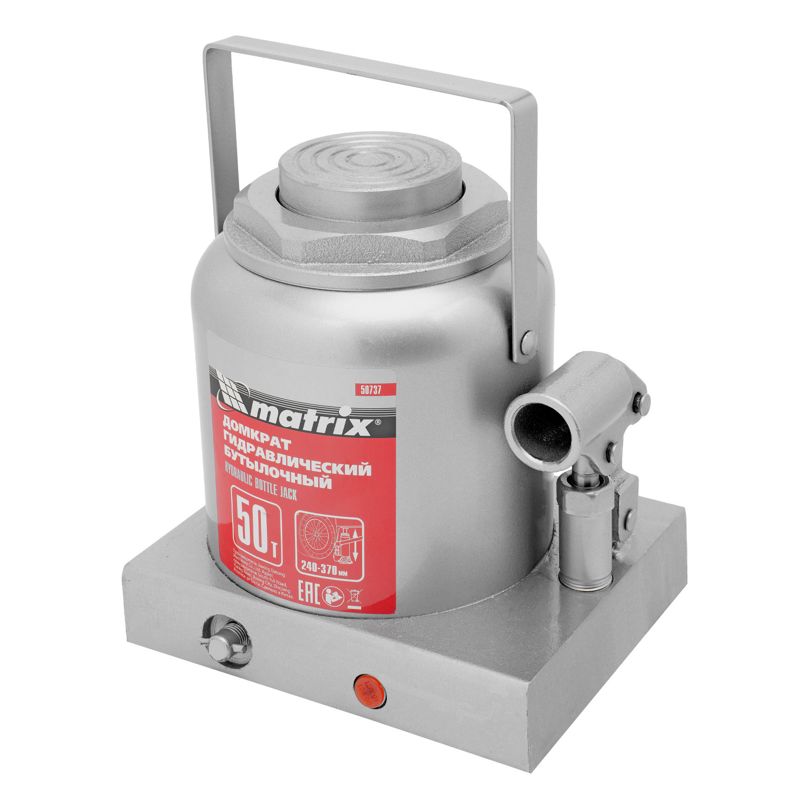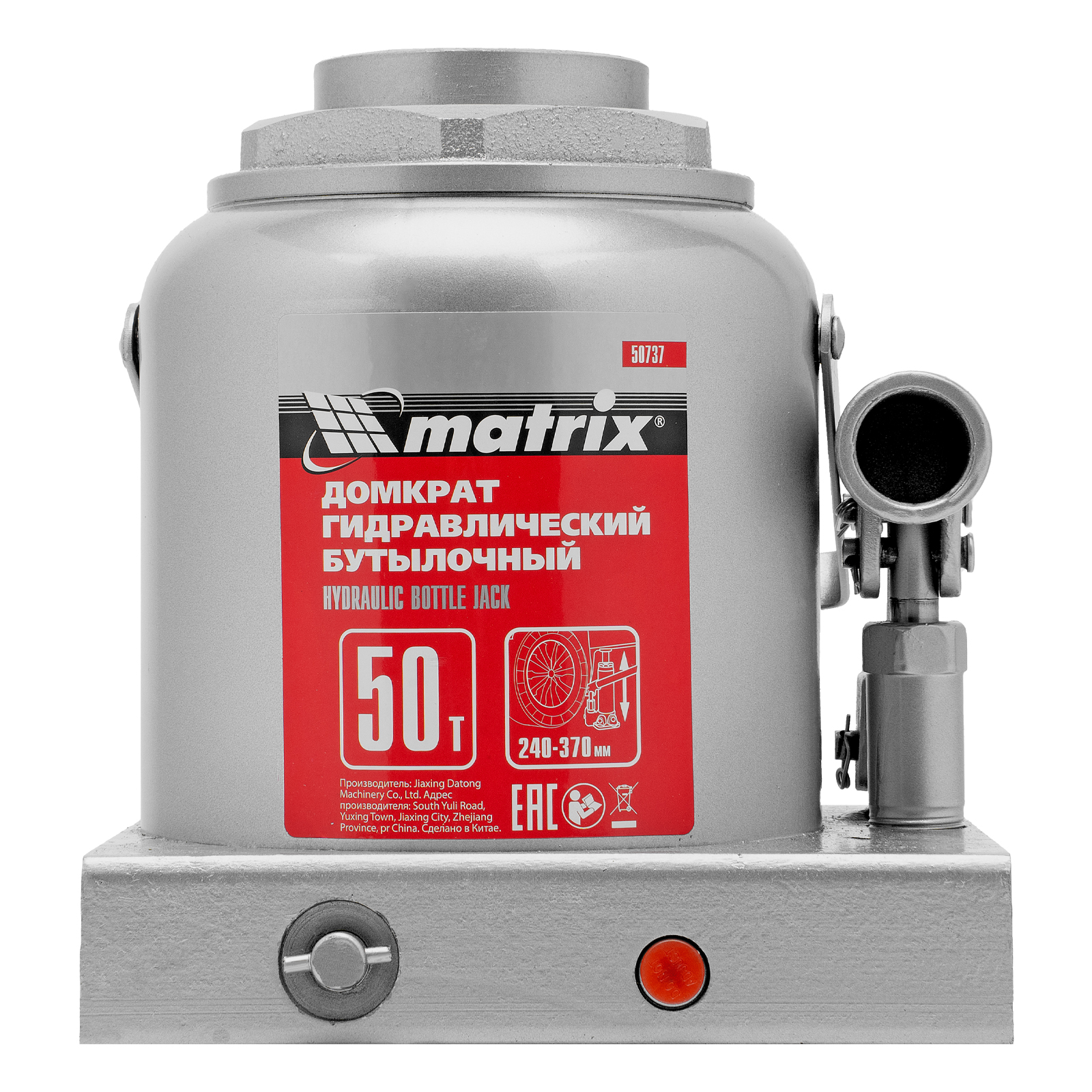 Домкрат гидравлический бутылочный, 50 т, высота подъема 240-370 мм Matrix
