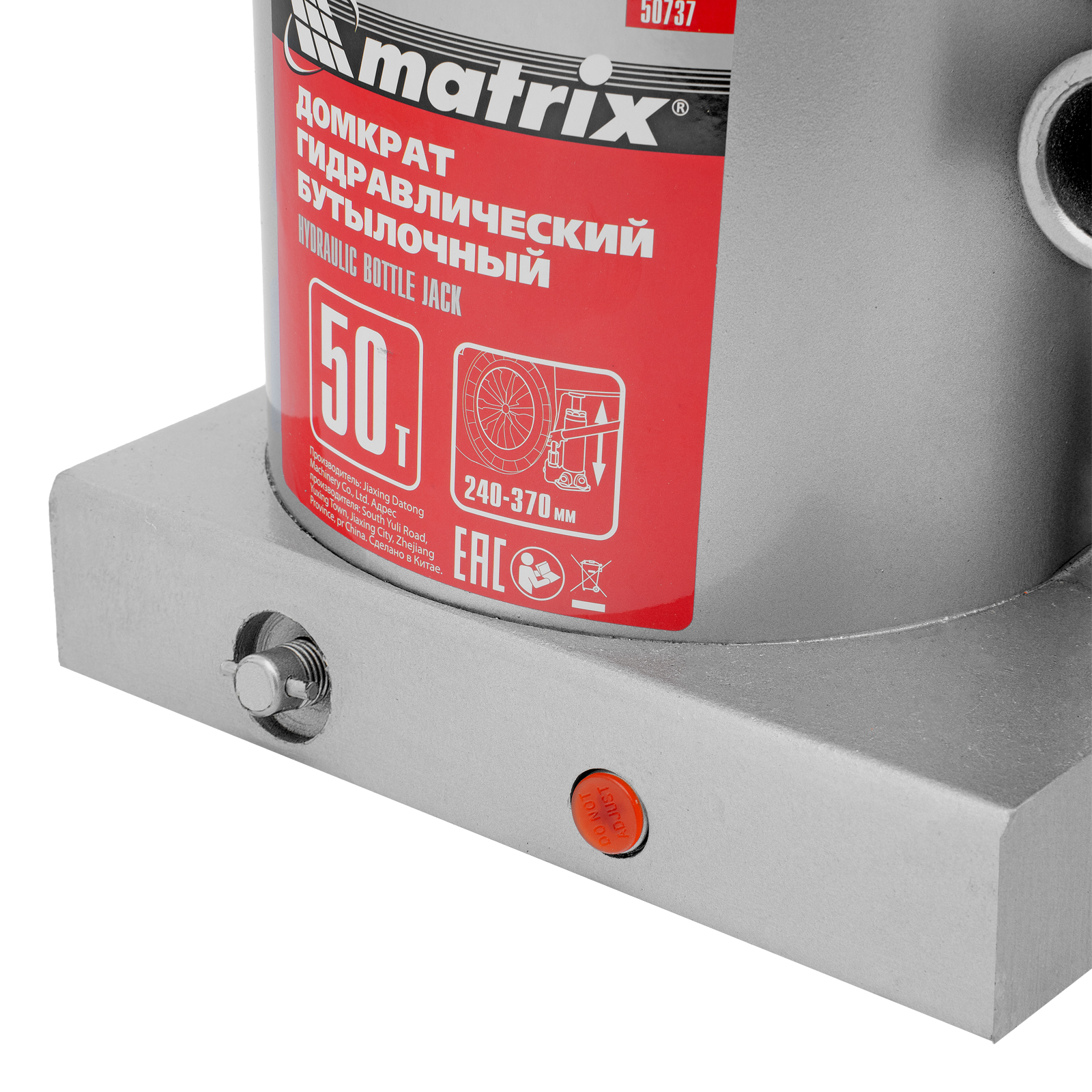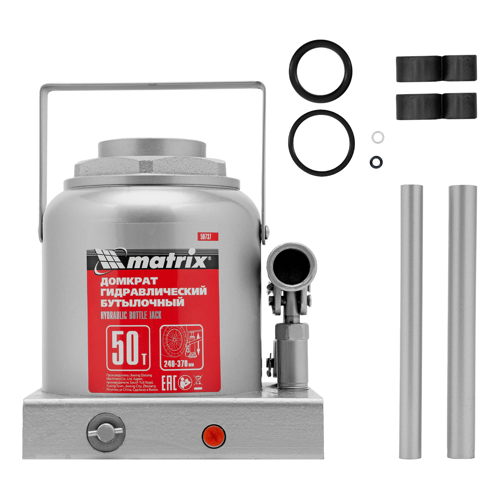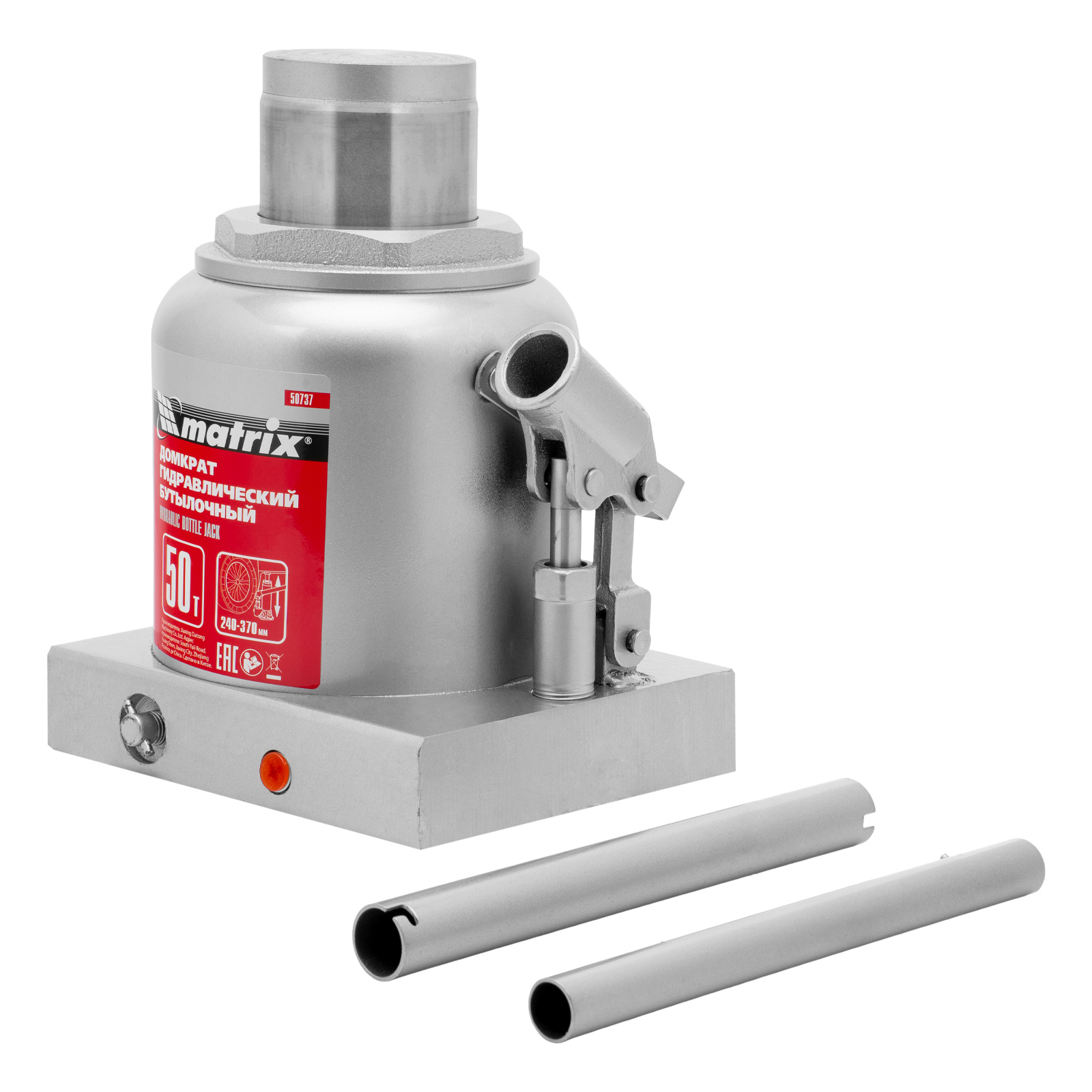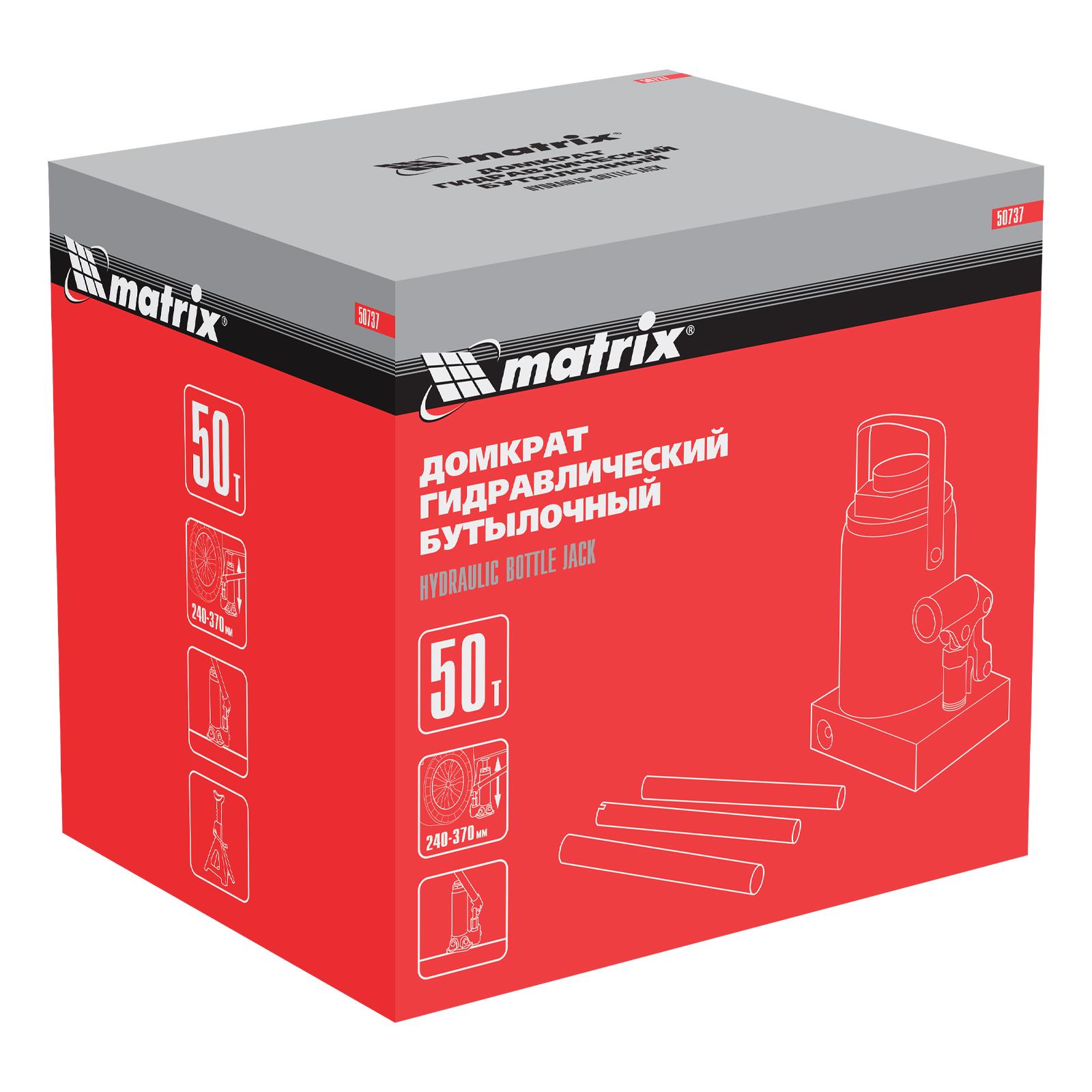 Домкрат гидравлический бутылочный, 50 т, высота подъема 240-370 мм Matrix