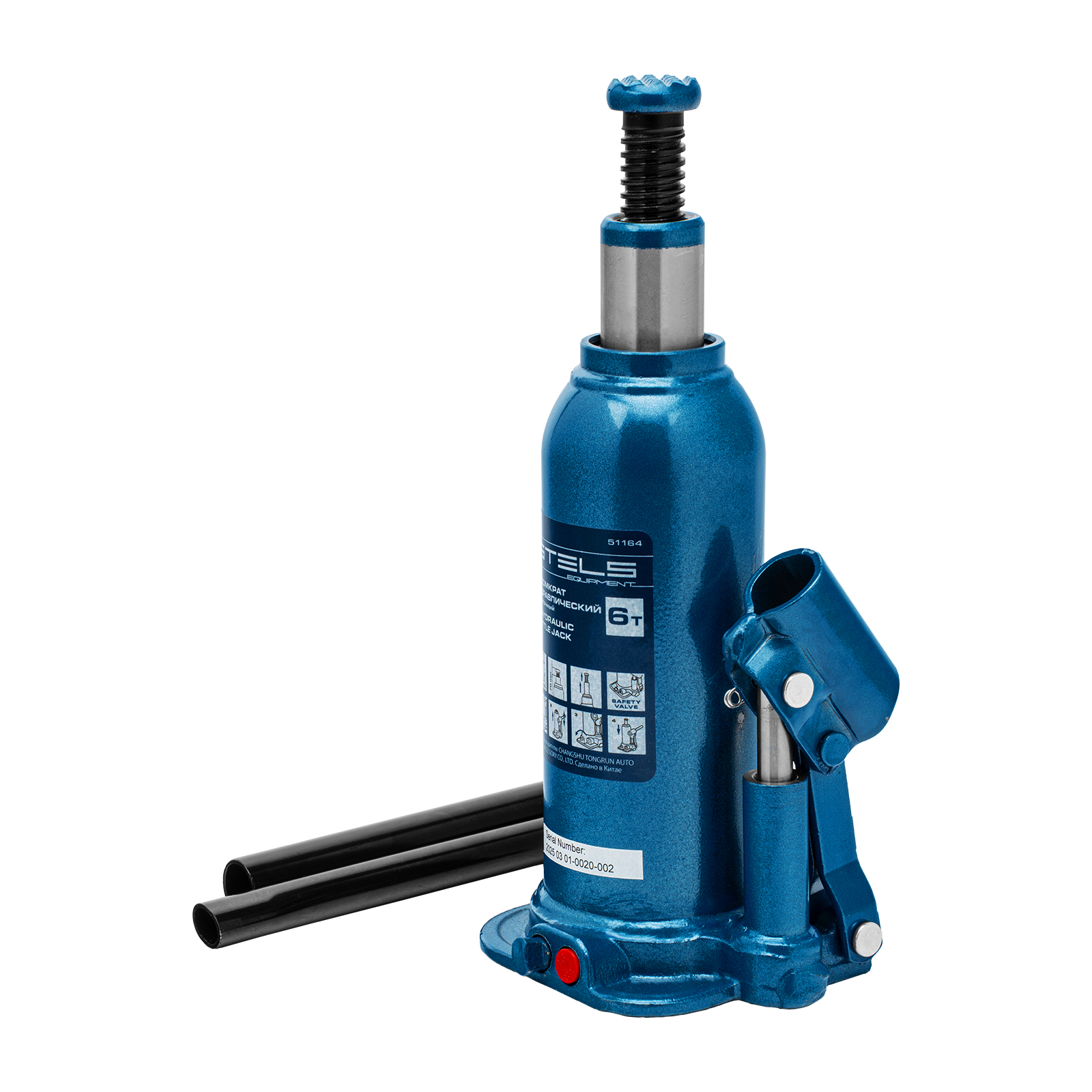- Безопасная эксплуатация — благодаря предохранительному клапану домкрат не поднимает грузы тяжелее 6000 кг.