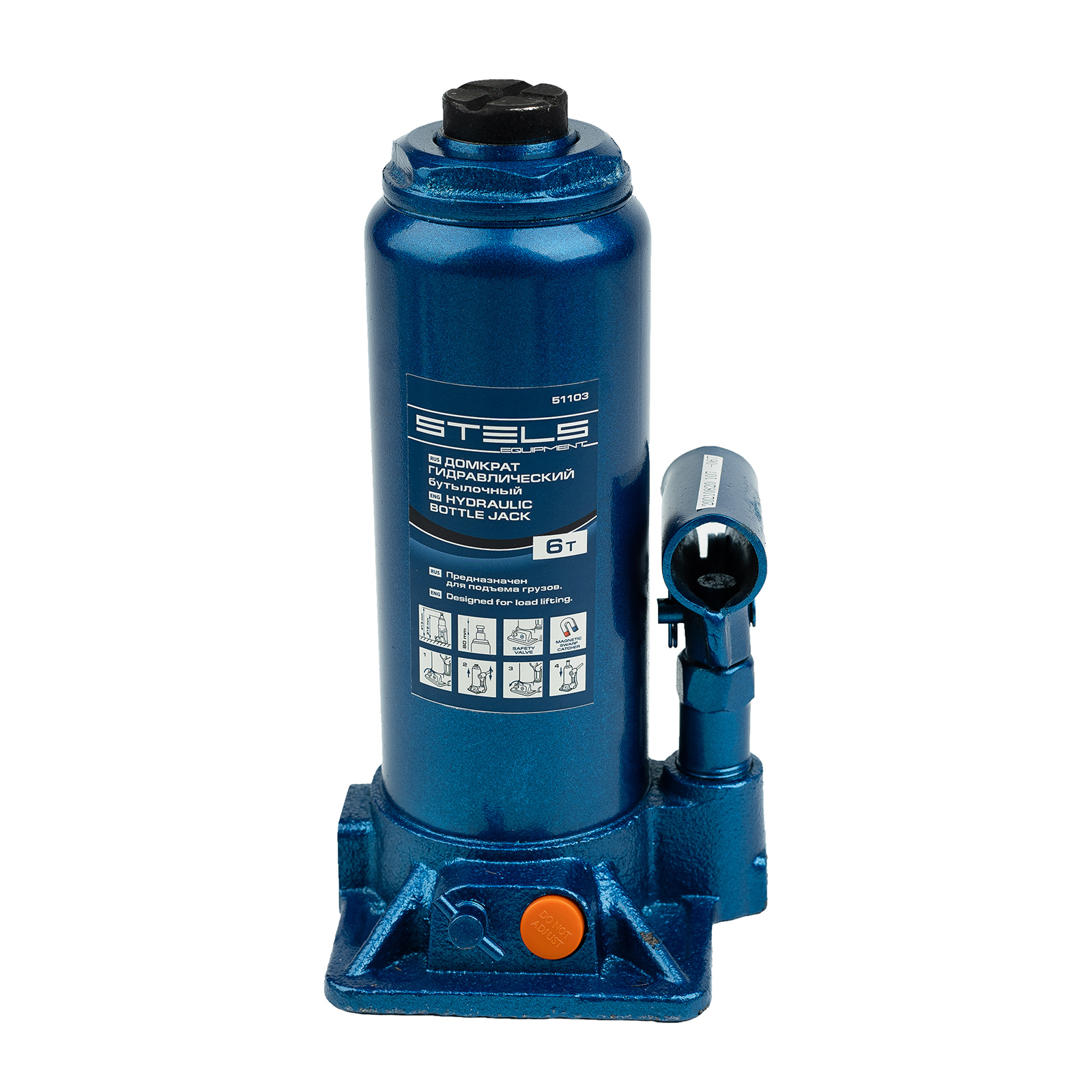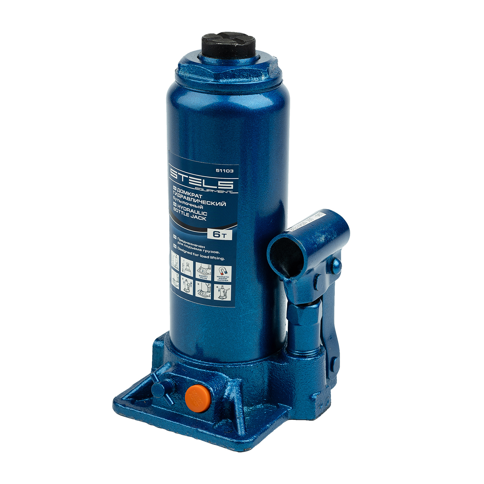 Гидравлический бутылочный домкрат Stels 51103 предназначен для поднятия грузов массой до 6 т на высоту с 216 до 413 мм. Позволяет установить жесткую опору под груз для последующего проведения ремонта. Будет полезен на станции техобслуживания, подойдет также для самостоятельного обслуживания автомобиля. Пригодится во время проведения ремонтно-строительных работ.