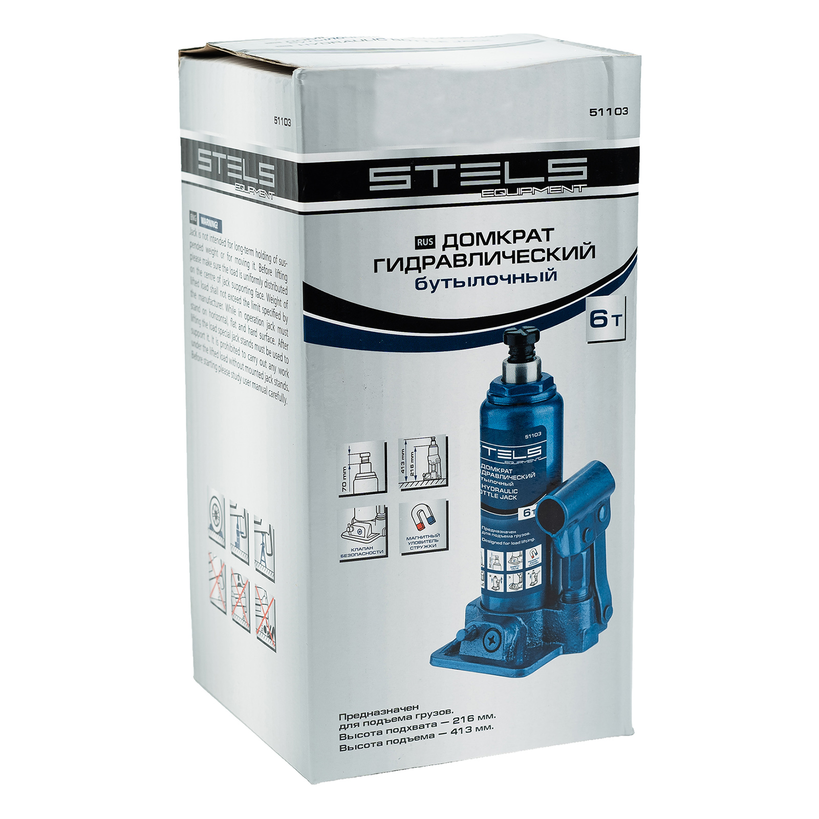 Домкрат гидравлический бутылочный, 6 т, H подъема 216-413 мм Stels