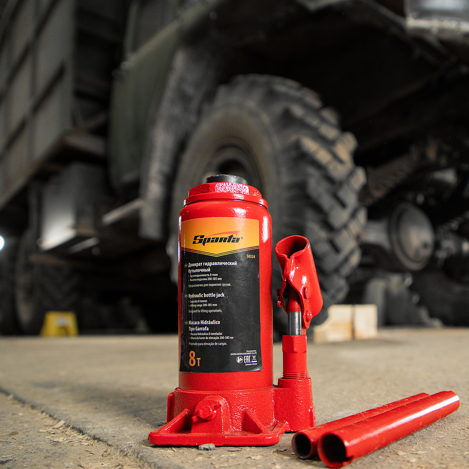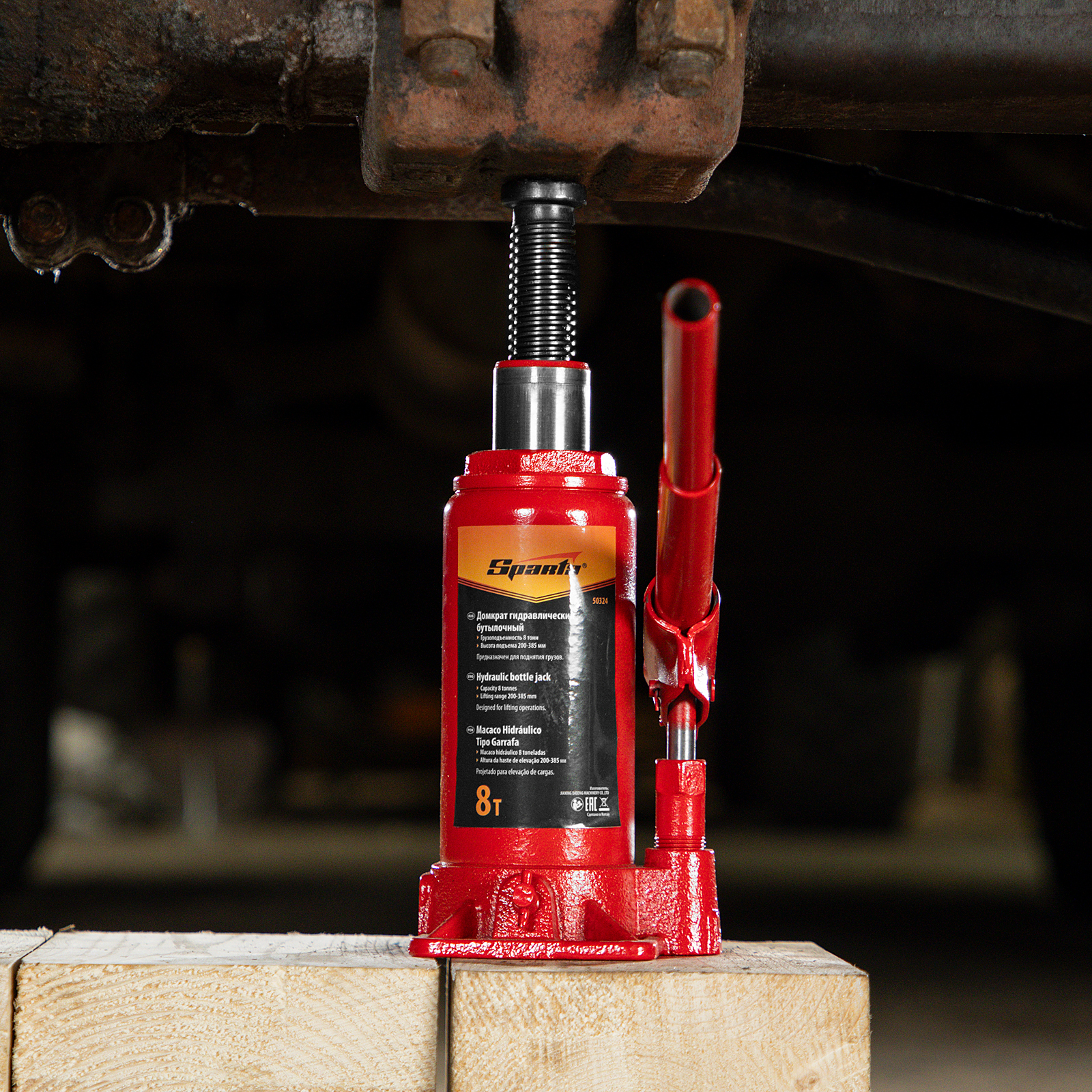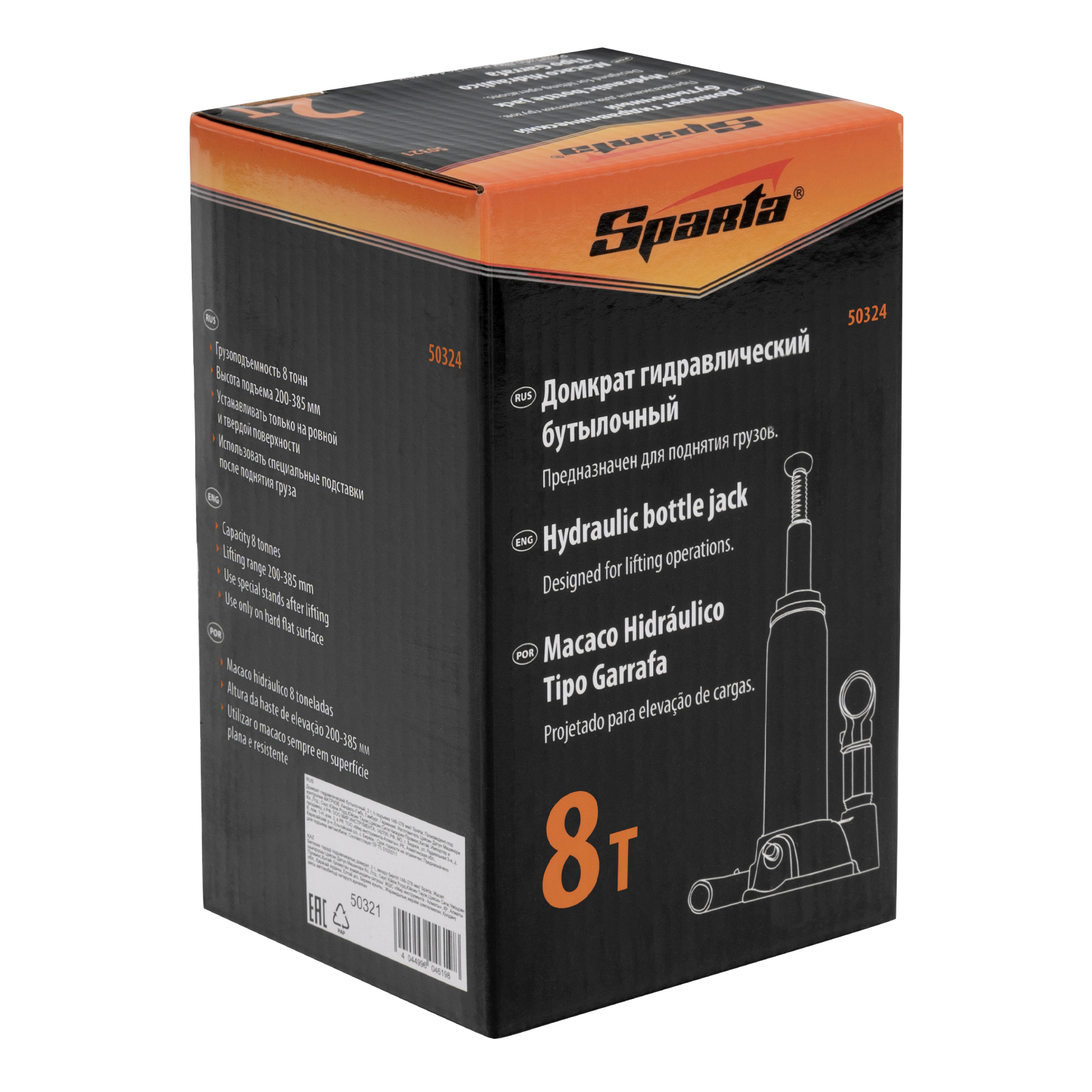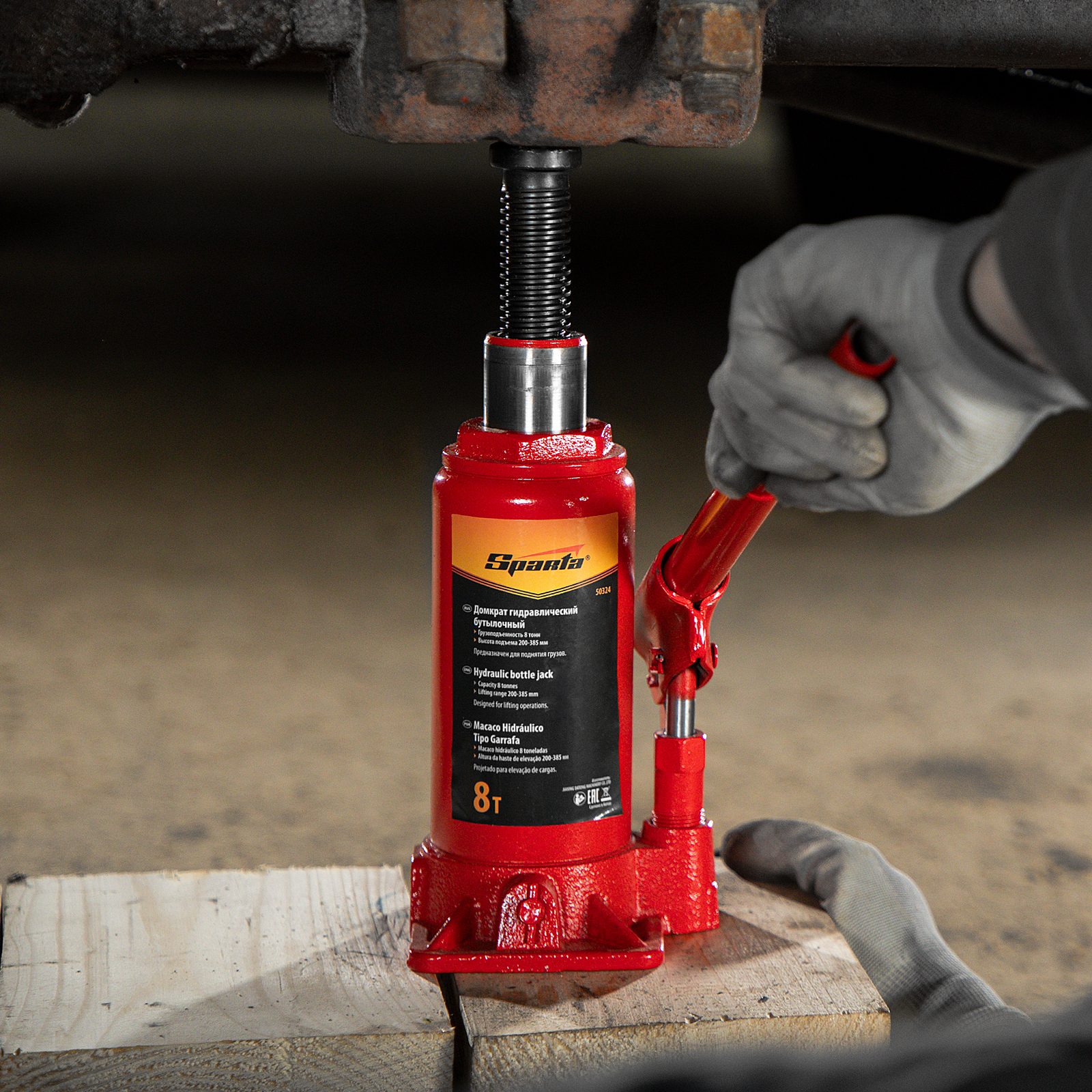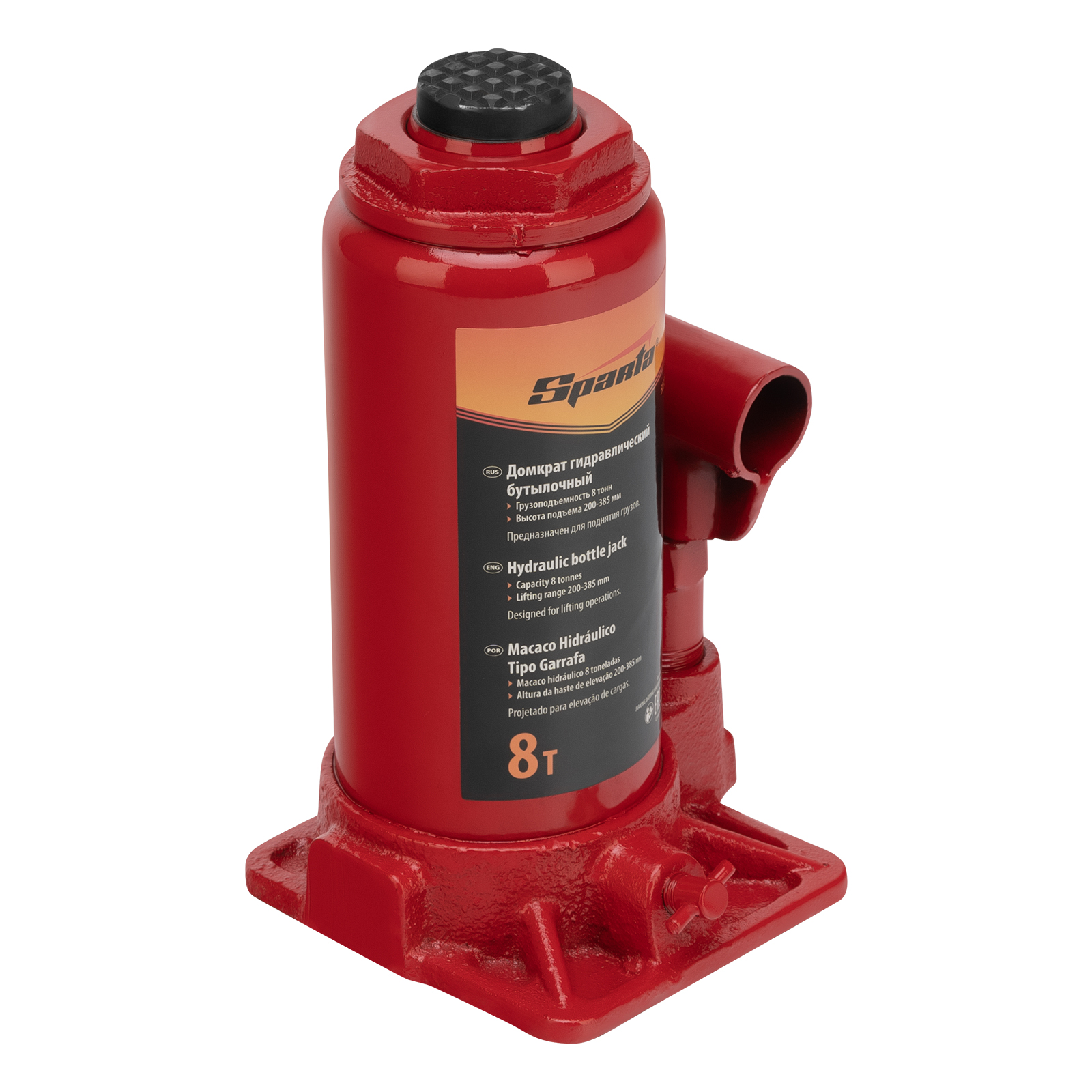 Домкрат гидравлический бутылочный, 8 т, h подъема 200-385 мм Sparta