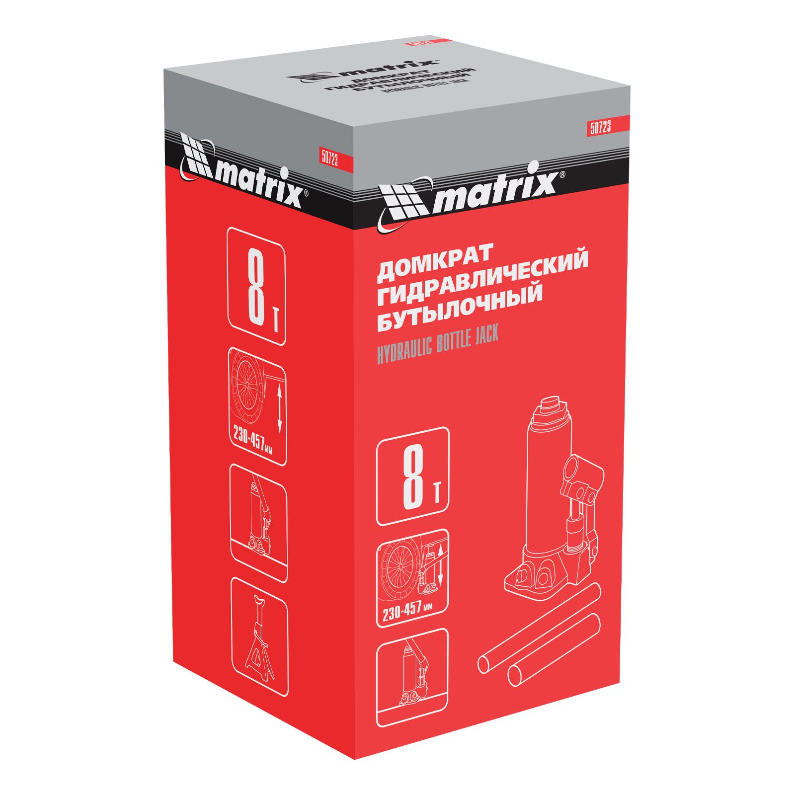 Домкрат гидравлический бутылочный, 8 т, высота подъема 230-457 мм Matrix