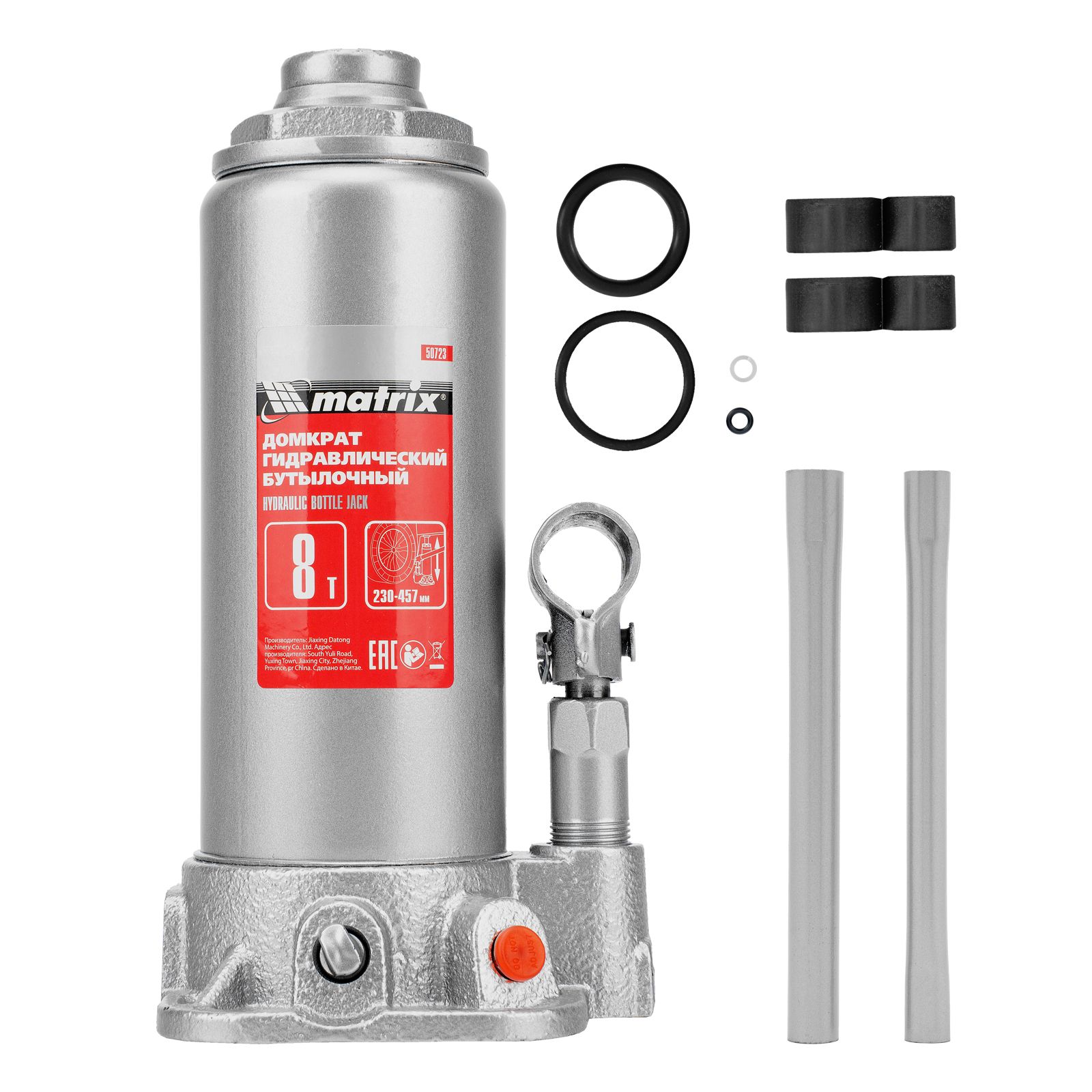 Домкрат гидравлический бутылочный Matrix 50723 используется для поднятия грузов массой до 8 т на высоту 230-457 мм. Подходит для автомобилей с высоким клиренсом. Домкрат будет полезен автолюбителям в гараже и дороге, а также сотрудникам СТО.