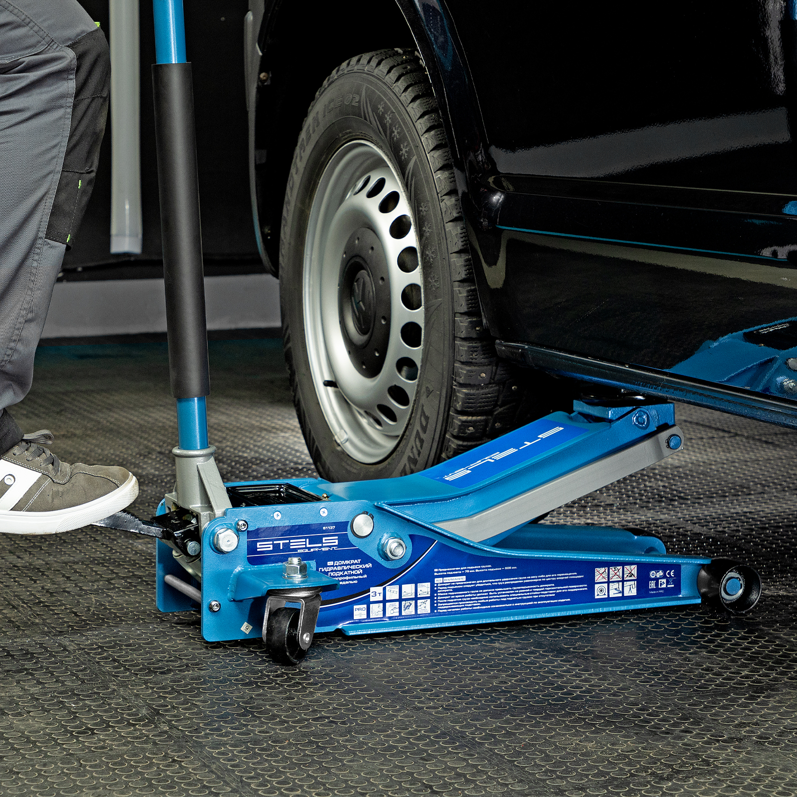 Домкрат гидравлический подкатной 3 т, быстрый подъем, Low profile quick lift, 75-505 мм, профессиональный STELS