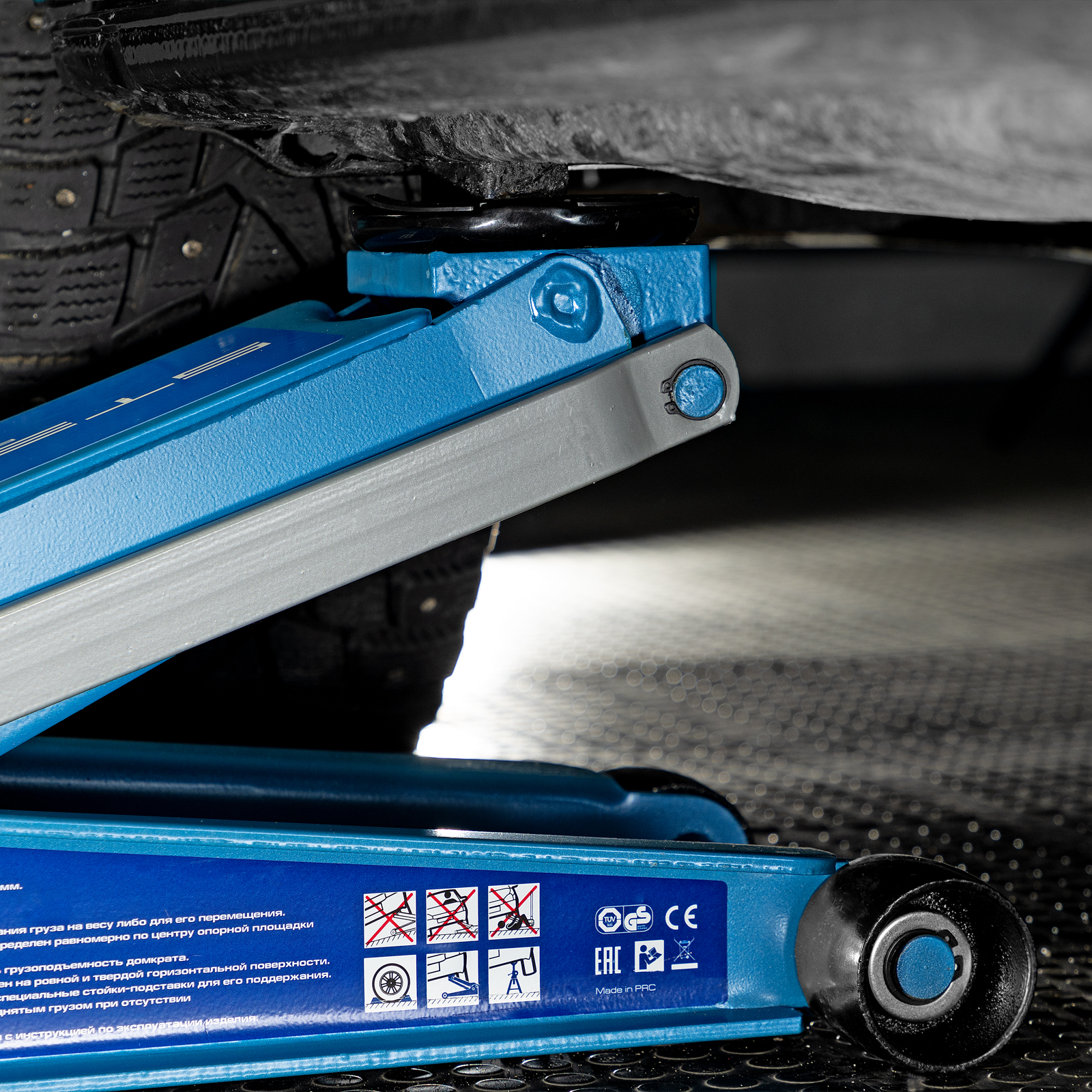 - Аккуратная работа — резиновая накладка на опорной основе исключает повреждение кузова автомобиля и корпуса самого домкрата.