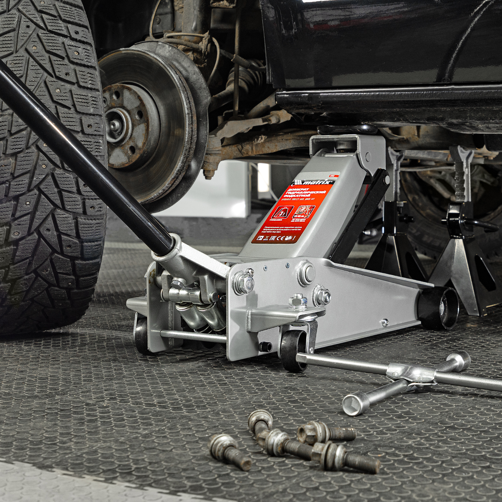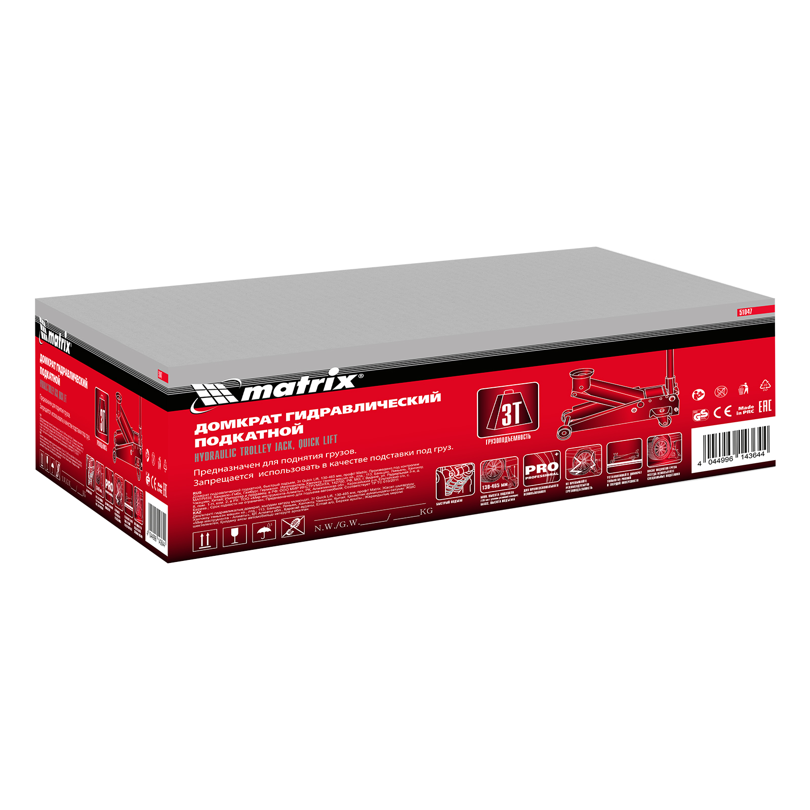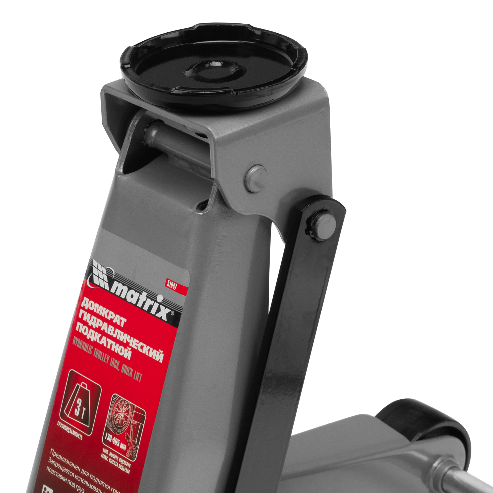 Подкатной гидравлический домкрат Matrix Quick Lift 51047 с системой быстрого подъема на высоту 130-465 мм — профессиональное гаражное оборудование, способное поднимать груз массой до 3 т. Высота подхвата 130 мм позволяет использовать домкрат для автомашин со стандартным клиренсом. Домкрат будет полезен в шиномонтажных центрах и автосервисах.