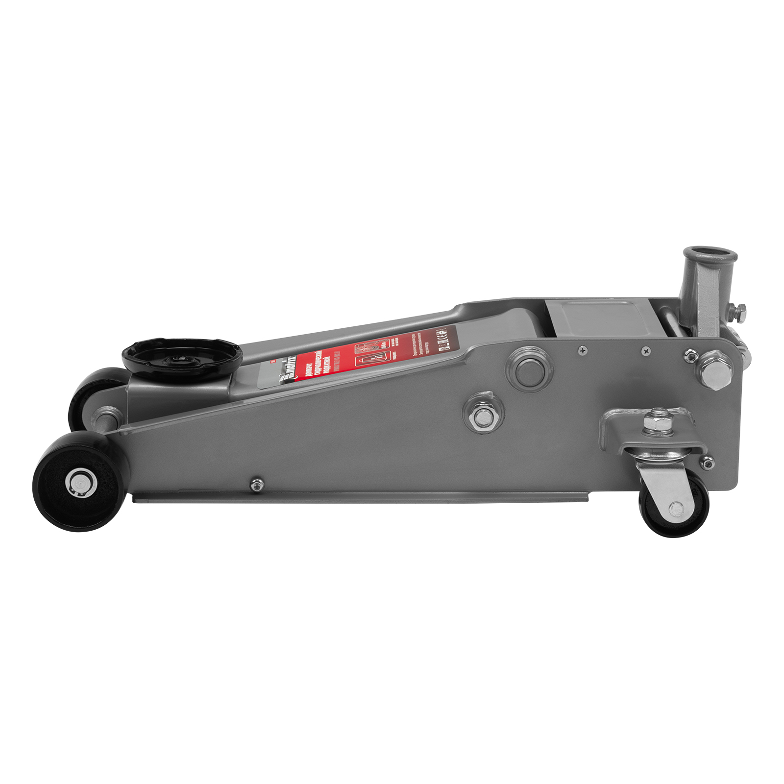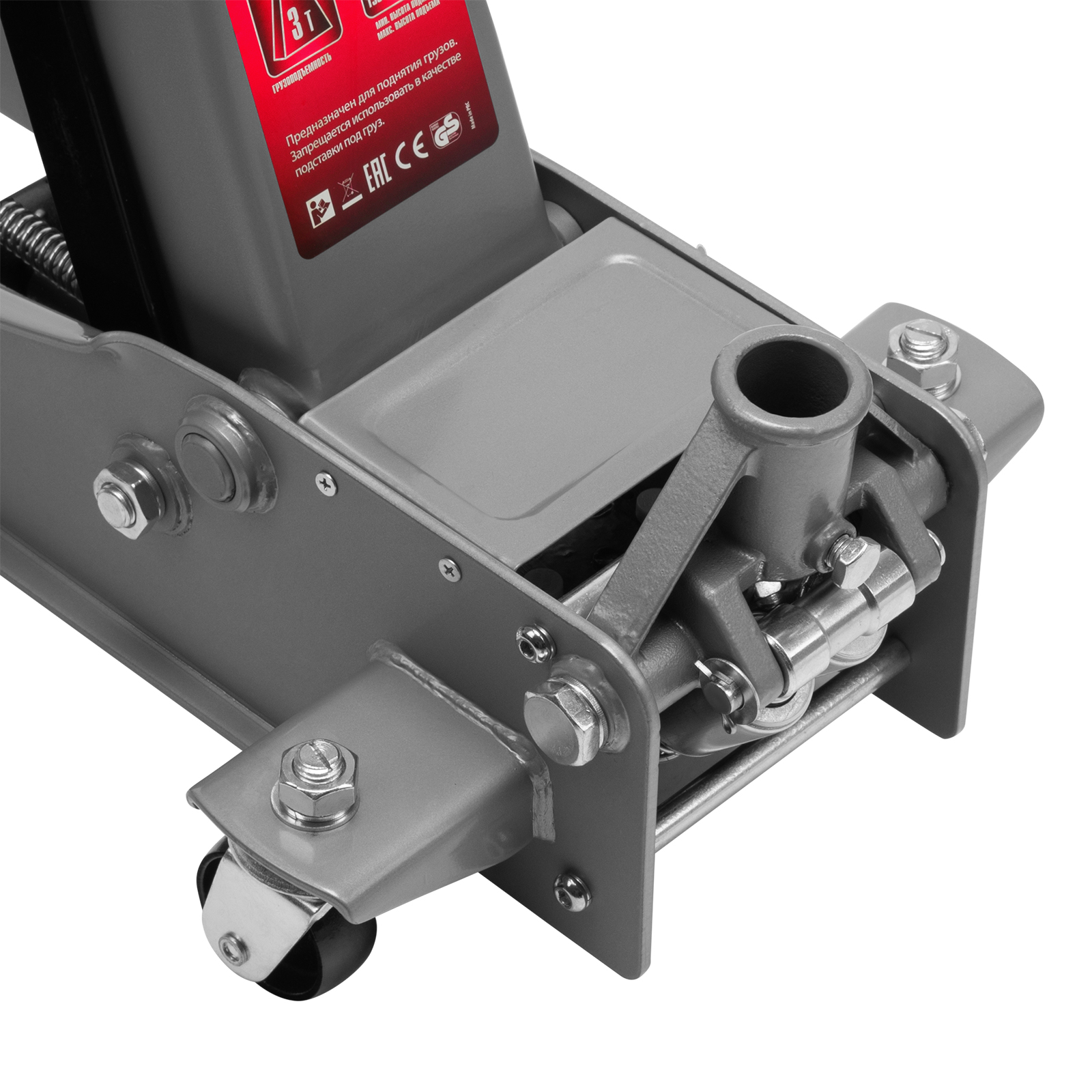 - Безопасная эксплуатация — предохранительный клапан препятствует подъему груза массой более 3 т, предотвращая поломку домкрата.