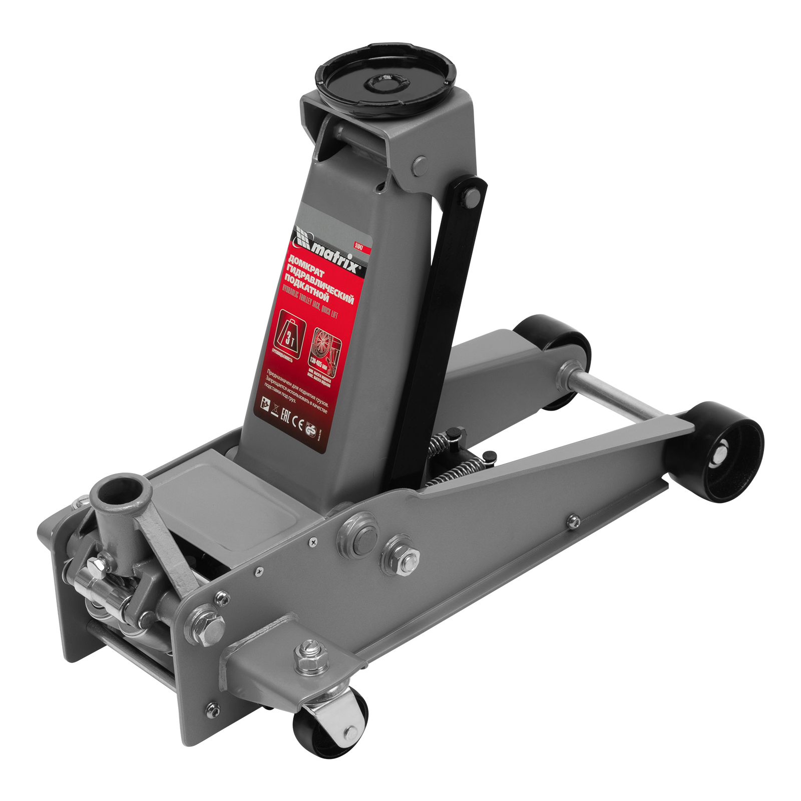 Домкрат гидравлический подкатной профессиональный, быстрый подъем, 3 т, 130-465 мм. Quick Matrix
