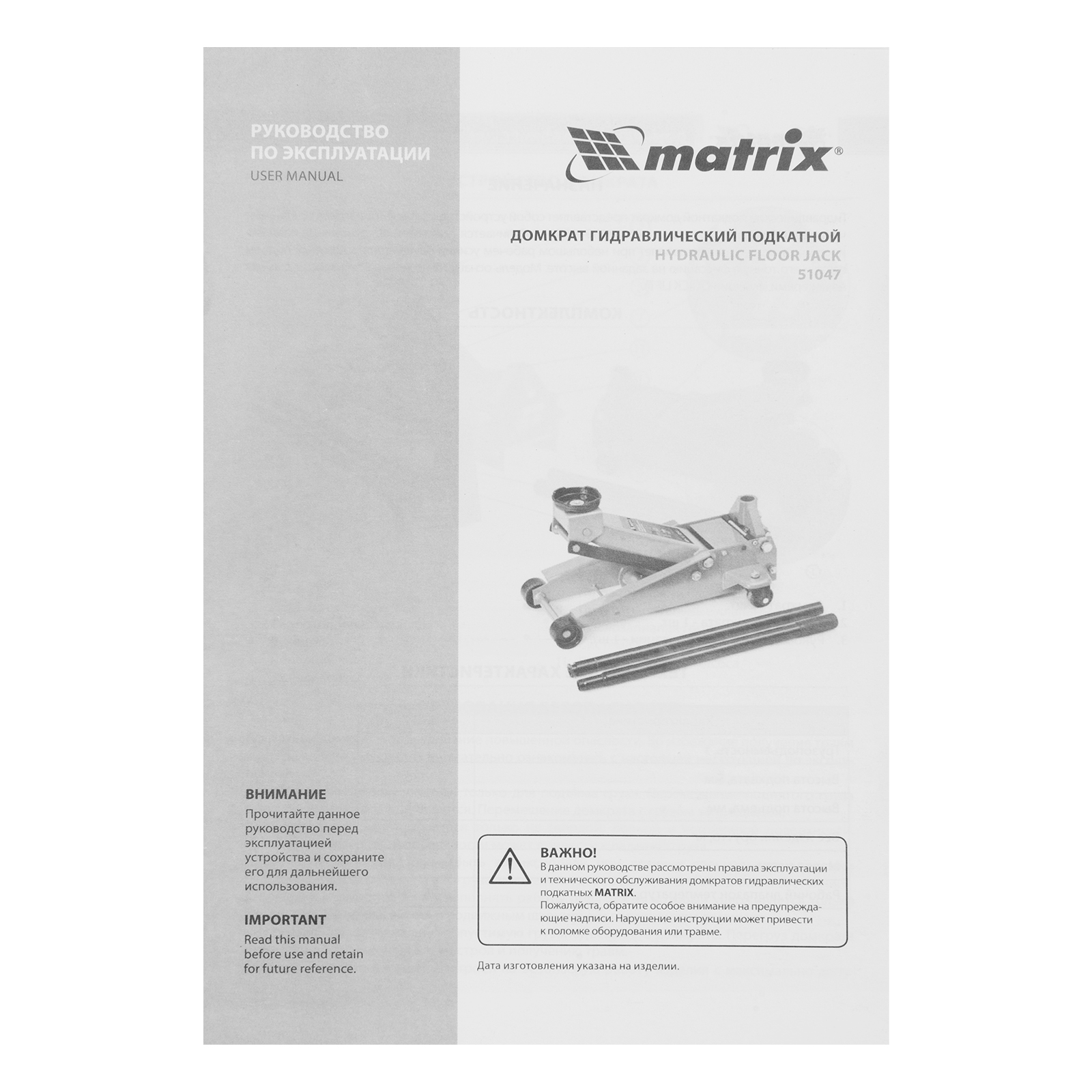 Домкрат - 1 штРукоятка домкрата - 1 штРуководство по эксплуатации - 1 шт |