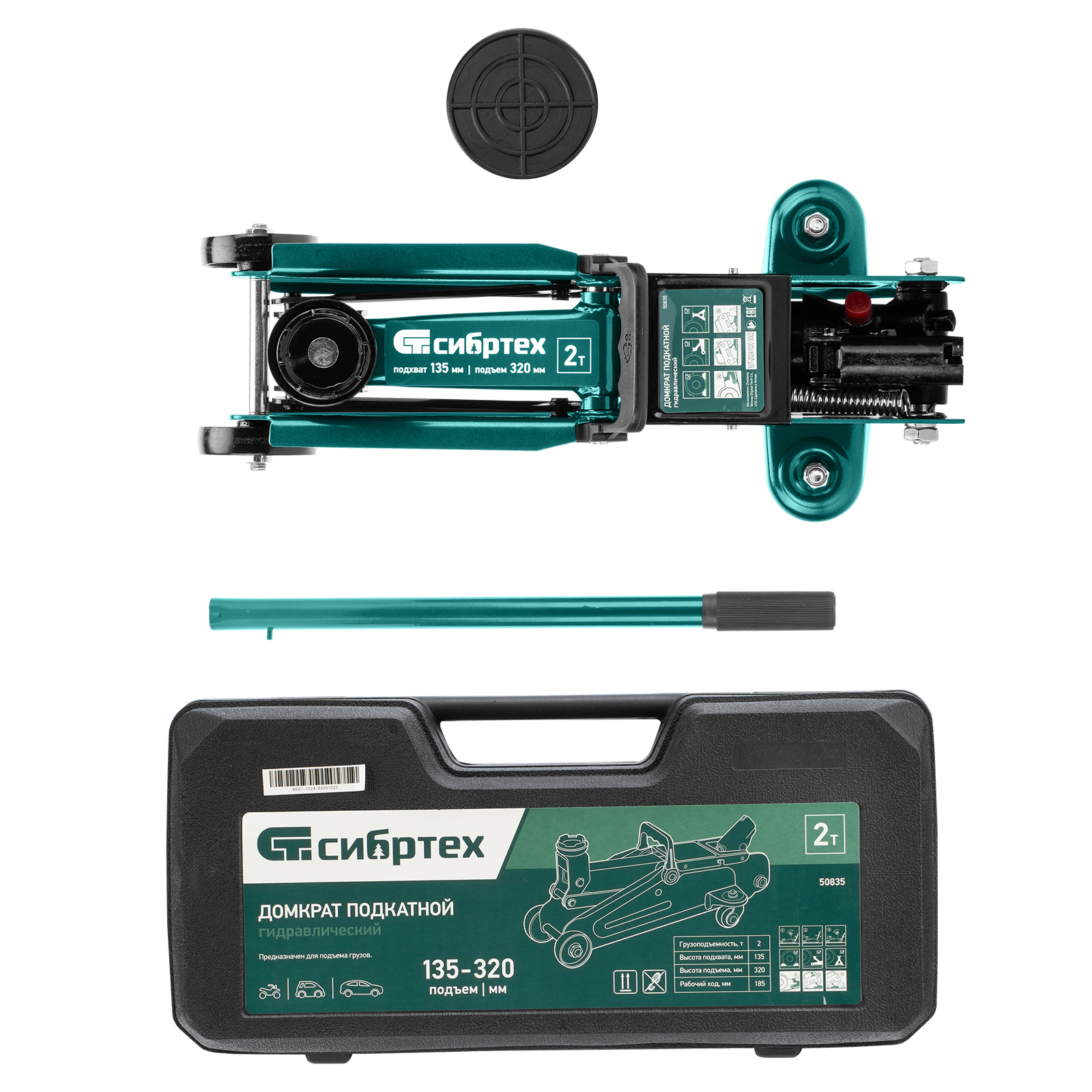 Домкрат - 1 штРукоятка домкрата - 1 штРезиновая опора - 1 штРуководство по эксплуатации - 1 штПластиковый кейс - 1шт |
