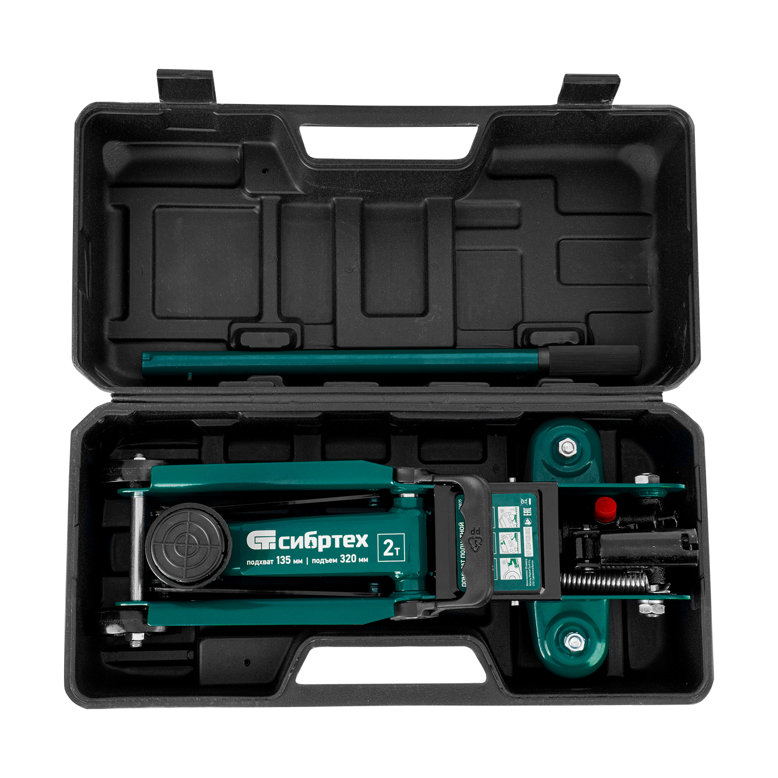 Домкрат гидравлический подкатной, 2 т, 135-320 мм, в пласт. кейсе Сибртех в Казани