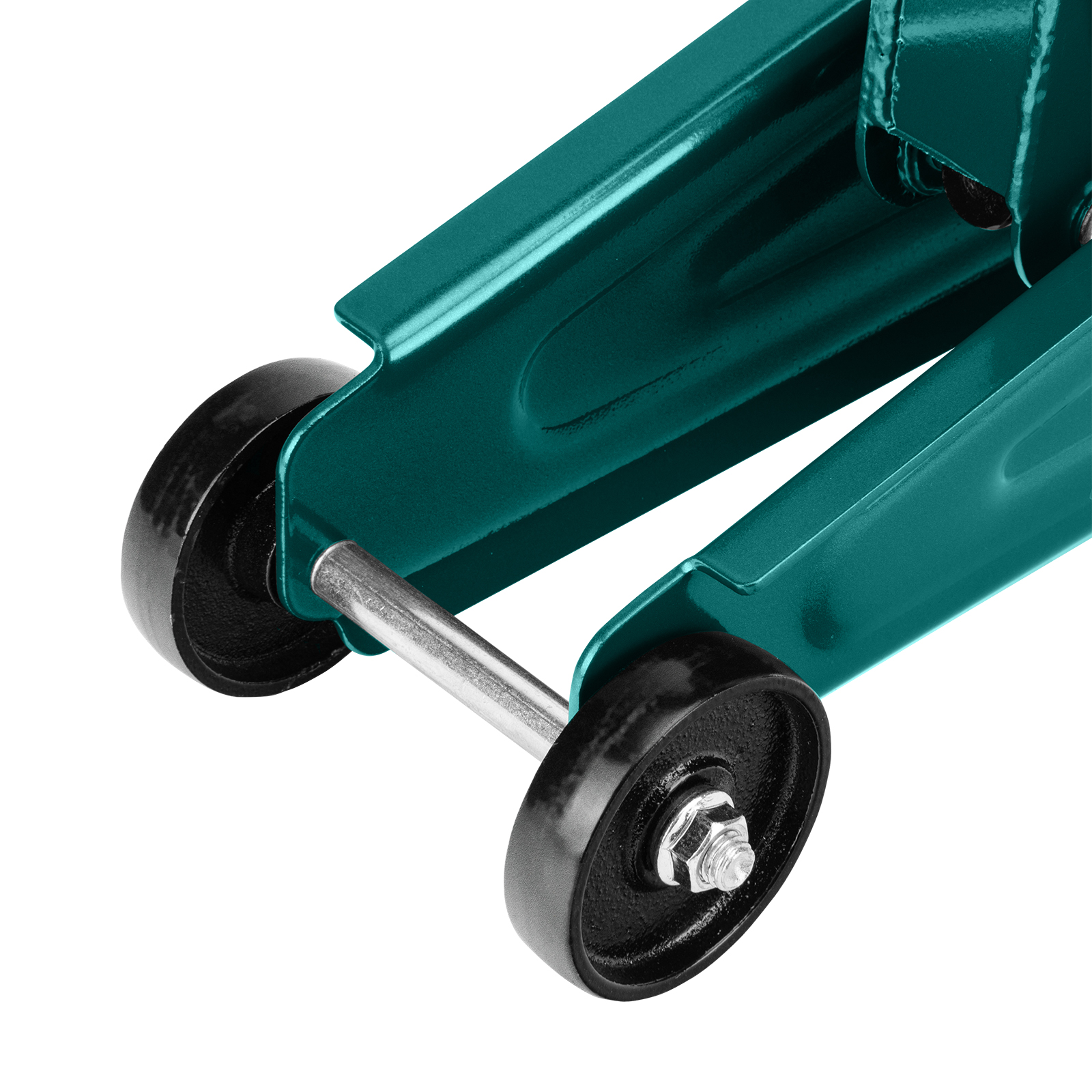 - Маневренность — благодаря поворотным колесам домкрат можно быстро подвести под груз.