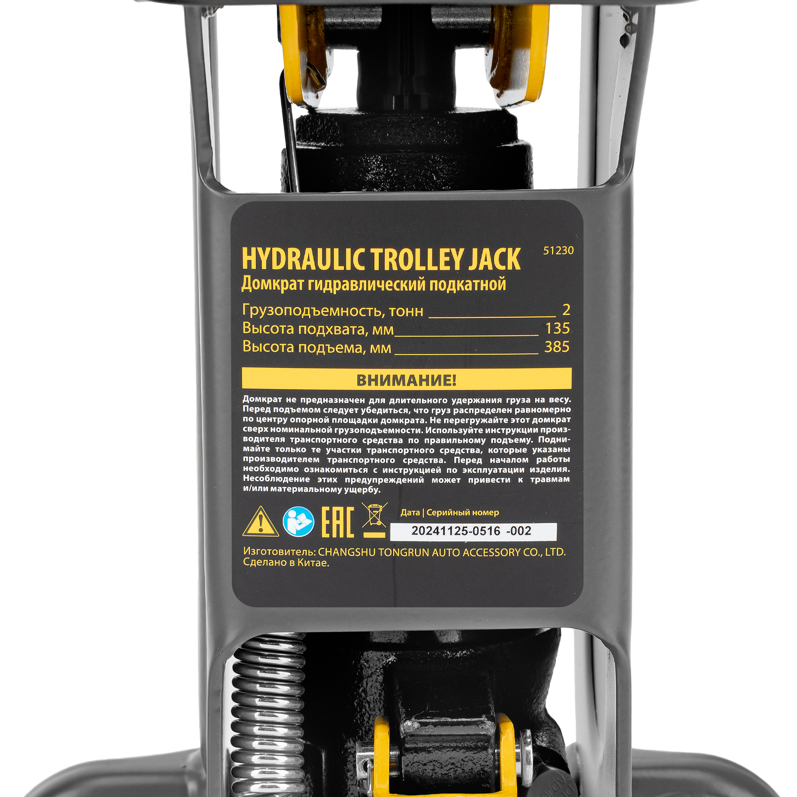 Домкрат гидравлический подкатной, 2 т, 135-385 мм Denzel в Казани