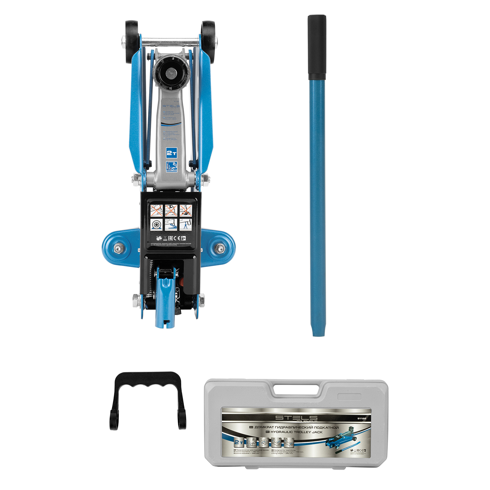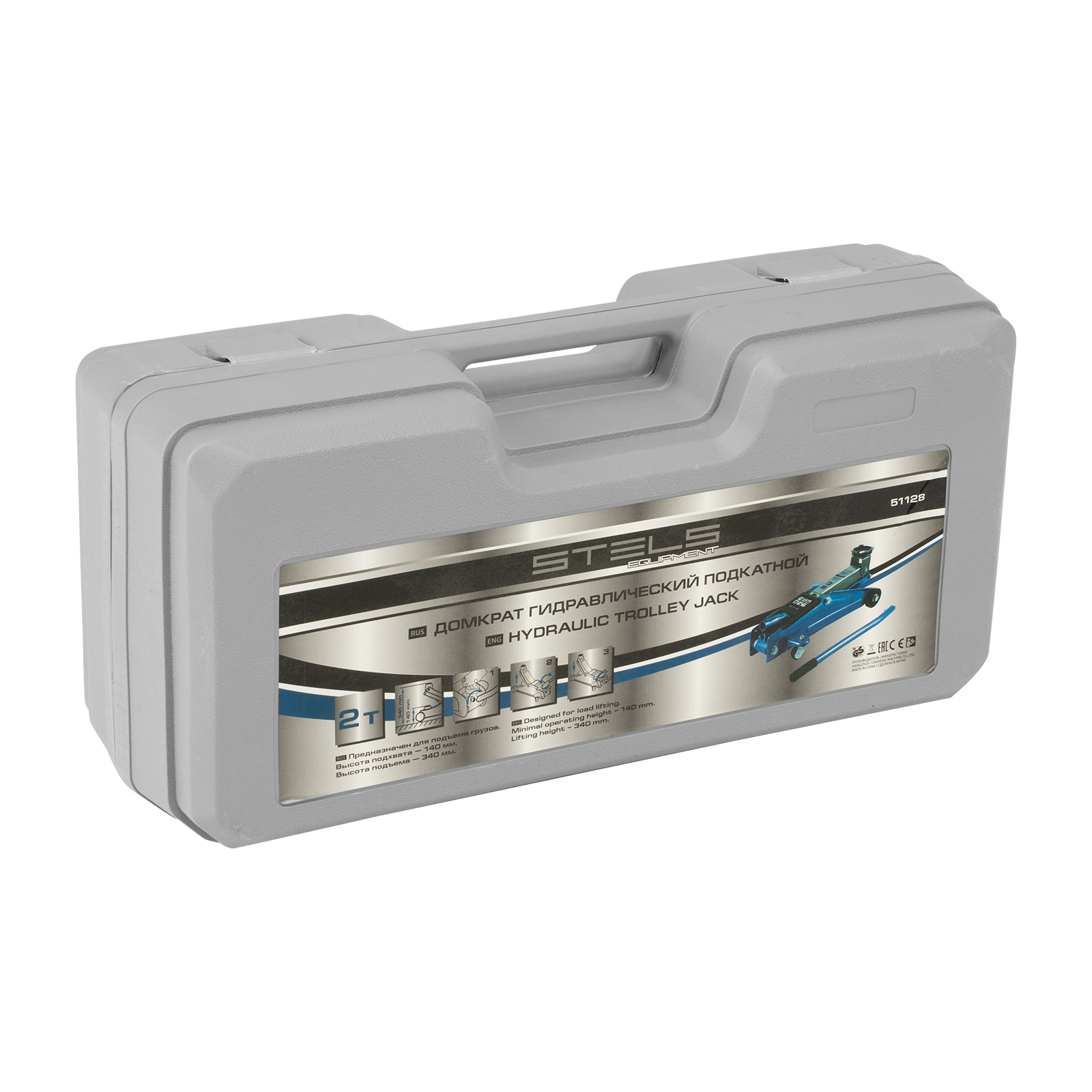 Подкатной гидравлический домкрат Stels 51128, поставляющийся в кейсе, способен поднимать груз массой до 2 т на высоту 140-340 мм. Подходит для легковых автомашин и кроссоверов со стандартным клиренсом. Усиленная конструкция выдерживает повышает надежность домкрата. Домкрат пригодится в частном гараже и на станции техобслуживания.