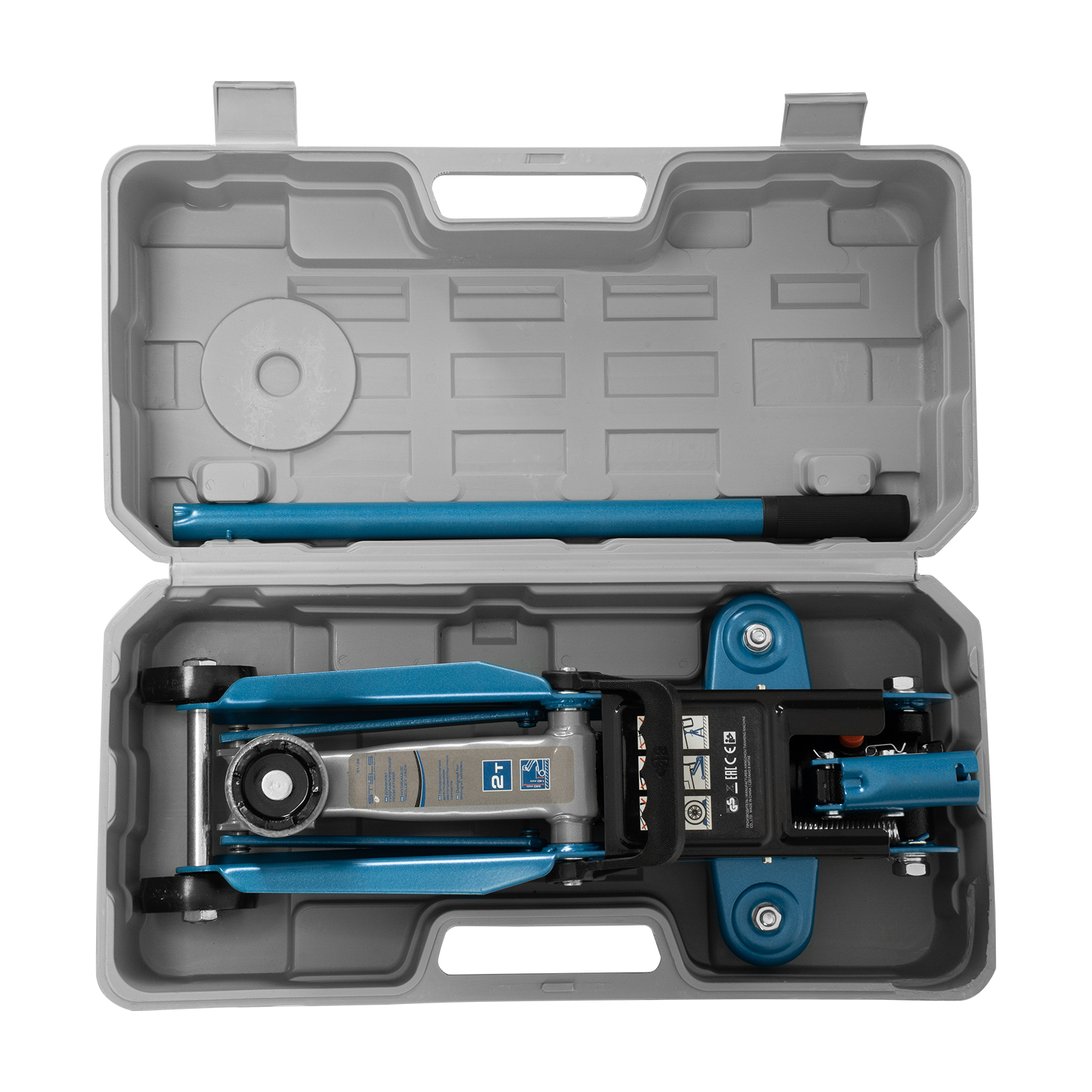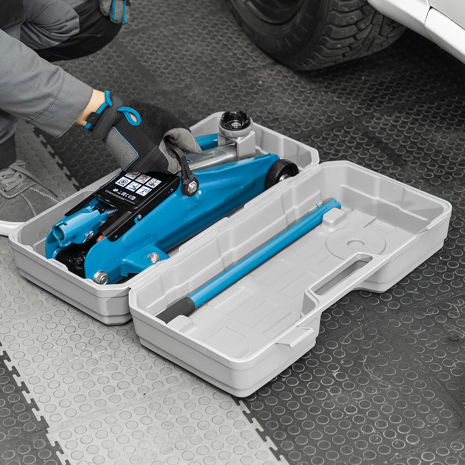 - Удобное хранение и транспортировка — домкрат поставляется в прочном кейсе.